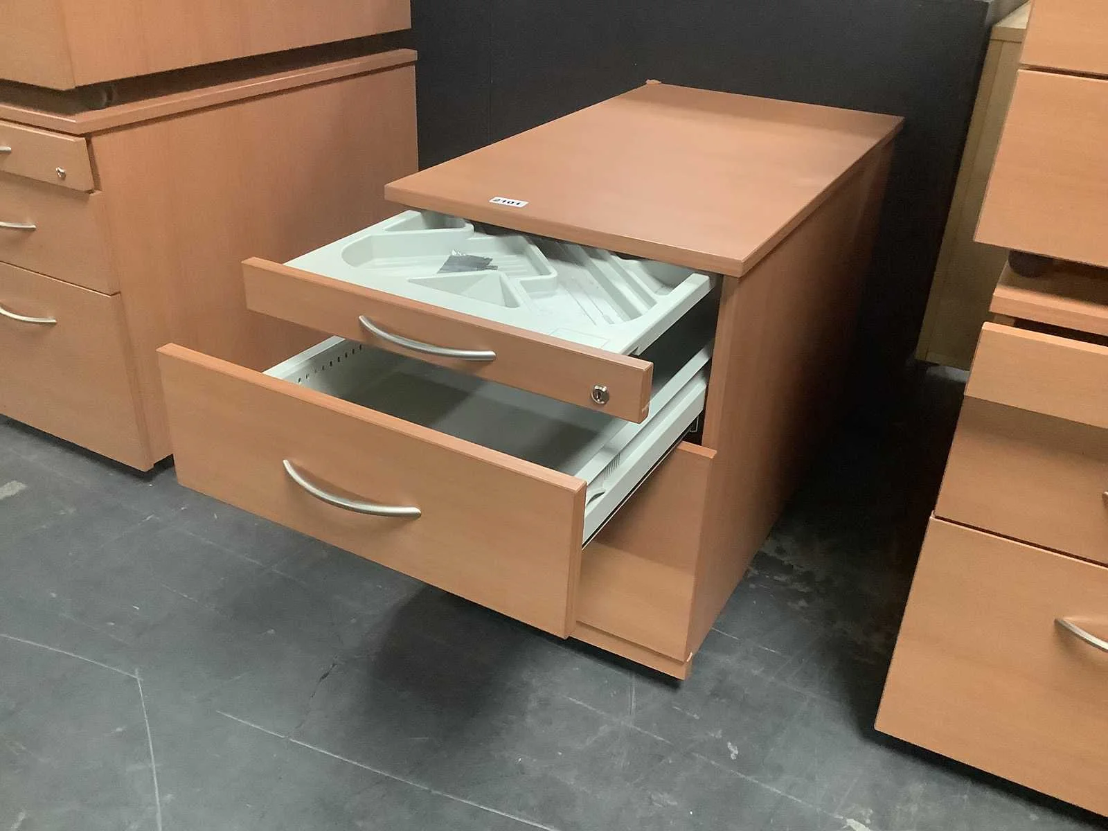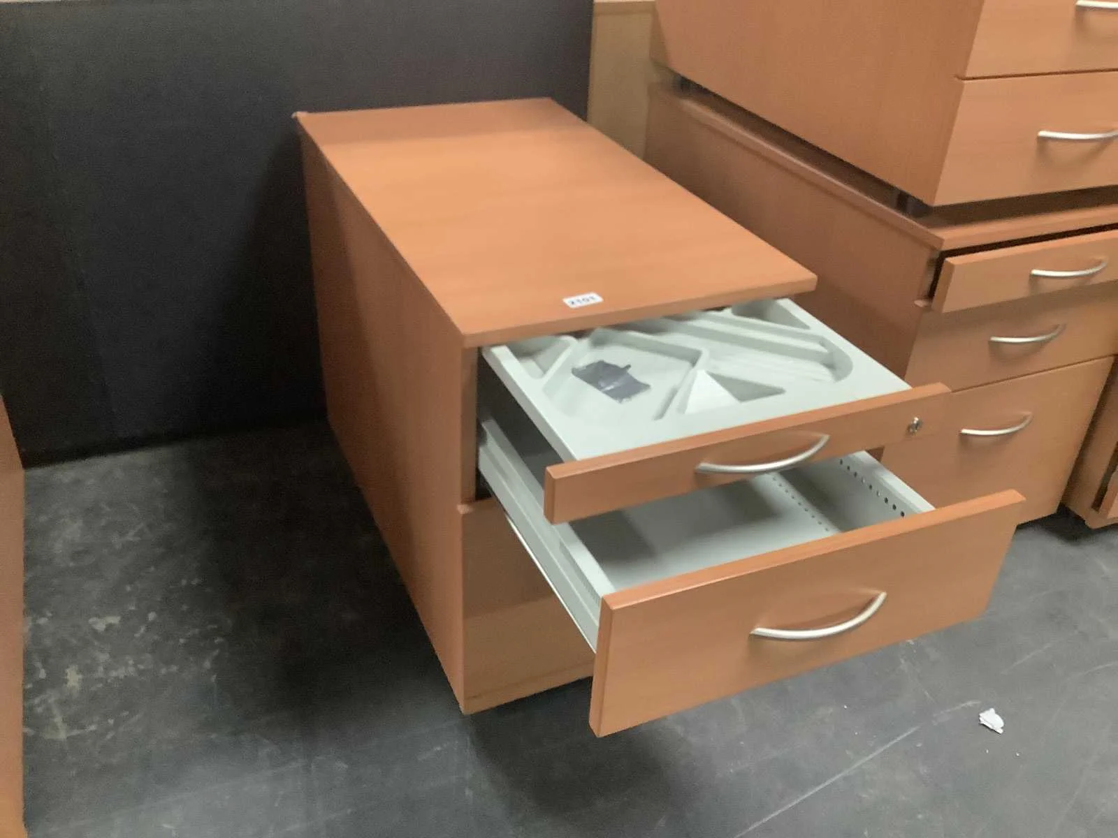 Met wieltjes 3 lades inclusief sleutel, beschadiging op achterzijde Lengte: 80cm Breedte: 43cm Hoogte: 60cm