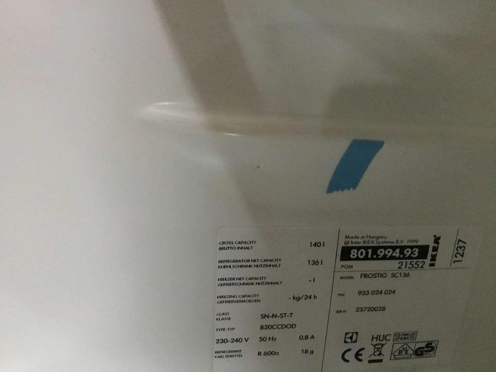 Inbouw tafelmobel koeling Merk: Ikea Model: 801.994.93 Product type: Inbouw Deur opent naar: Rechts Netto inhoud koelvakken: 136l Spanning: 230V Kleur: Wit Lengte: 60cm Breedte: 52cm Hoogte: 85cm