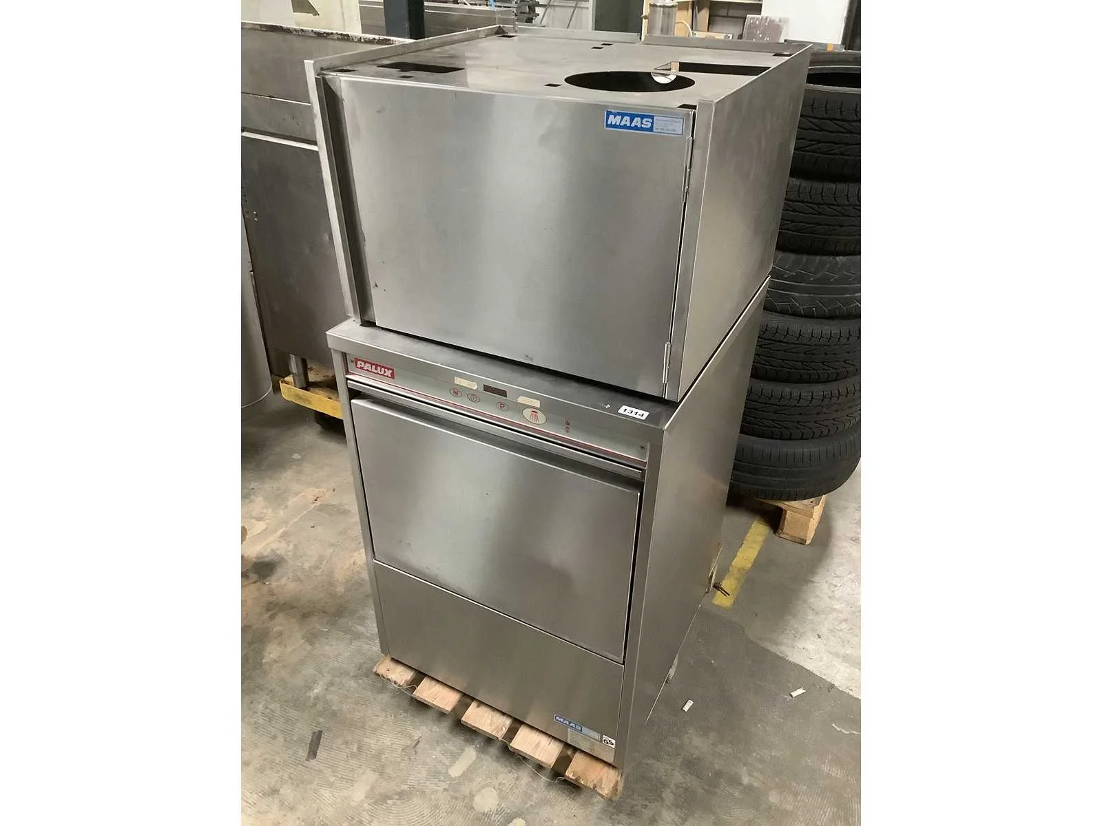 Werkend. Inclusief zeepdispenser en onderstel. Peralex stekker Merk: Palux Model: GSC 400 Spanning: 400V Lengte: 60cm Breedte: 60cm Hoogte: 84cm