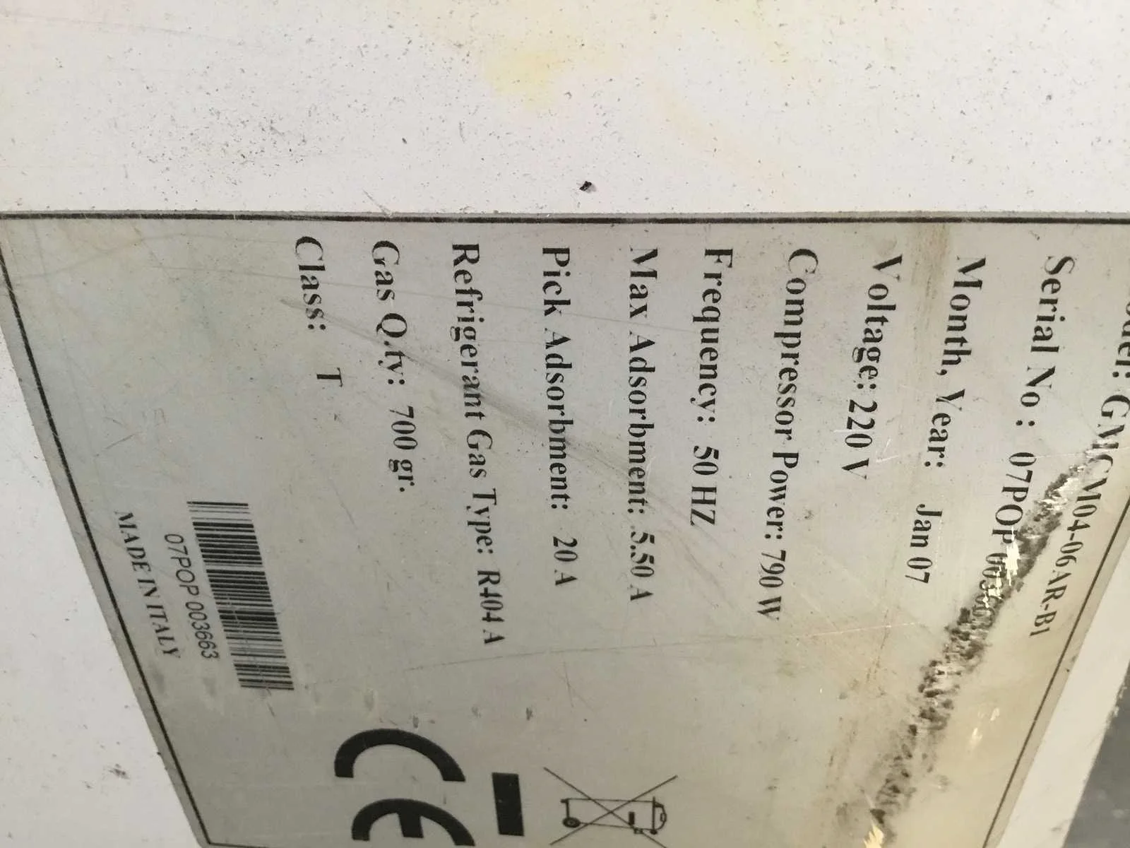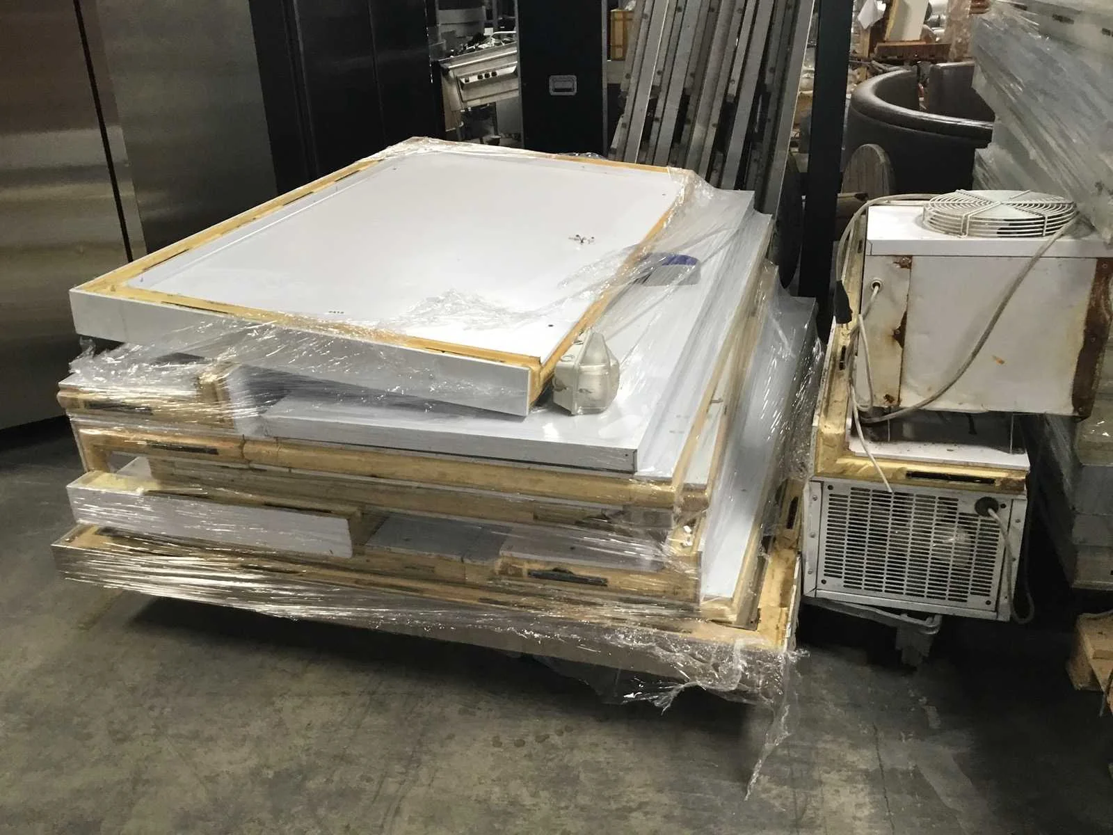 Gedemonteerd. Werking onbekend. Dikte paneel 8 cm Bestaande uit: Buitenmaat 176x 176x 216 cm 1e: Binnemaat 160x 160 x 200cm 3e: Koelmotor aanwezig