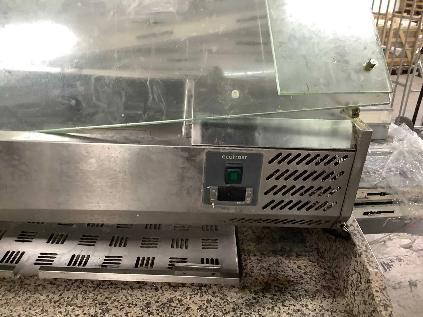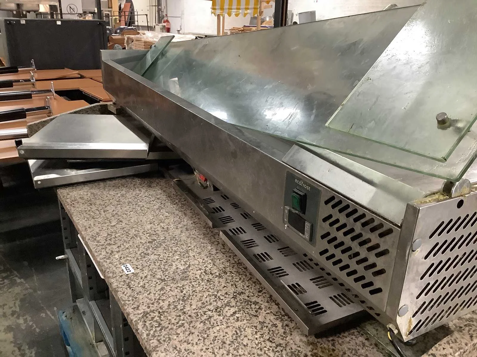 Inclusief saladiere van ecofrost. Werking onbekend, deuren defect Merk: Combisteel Model: 7450.0585 Lengte: 70cm Breedte: 190cm Hoogte: 100cm