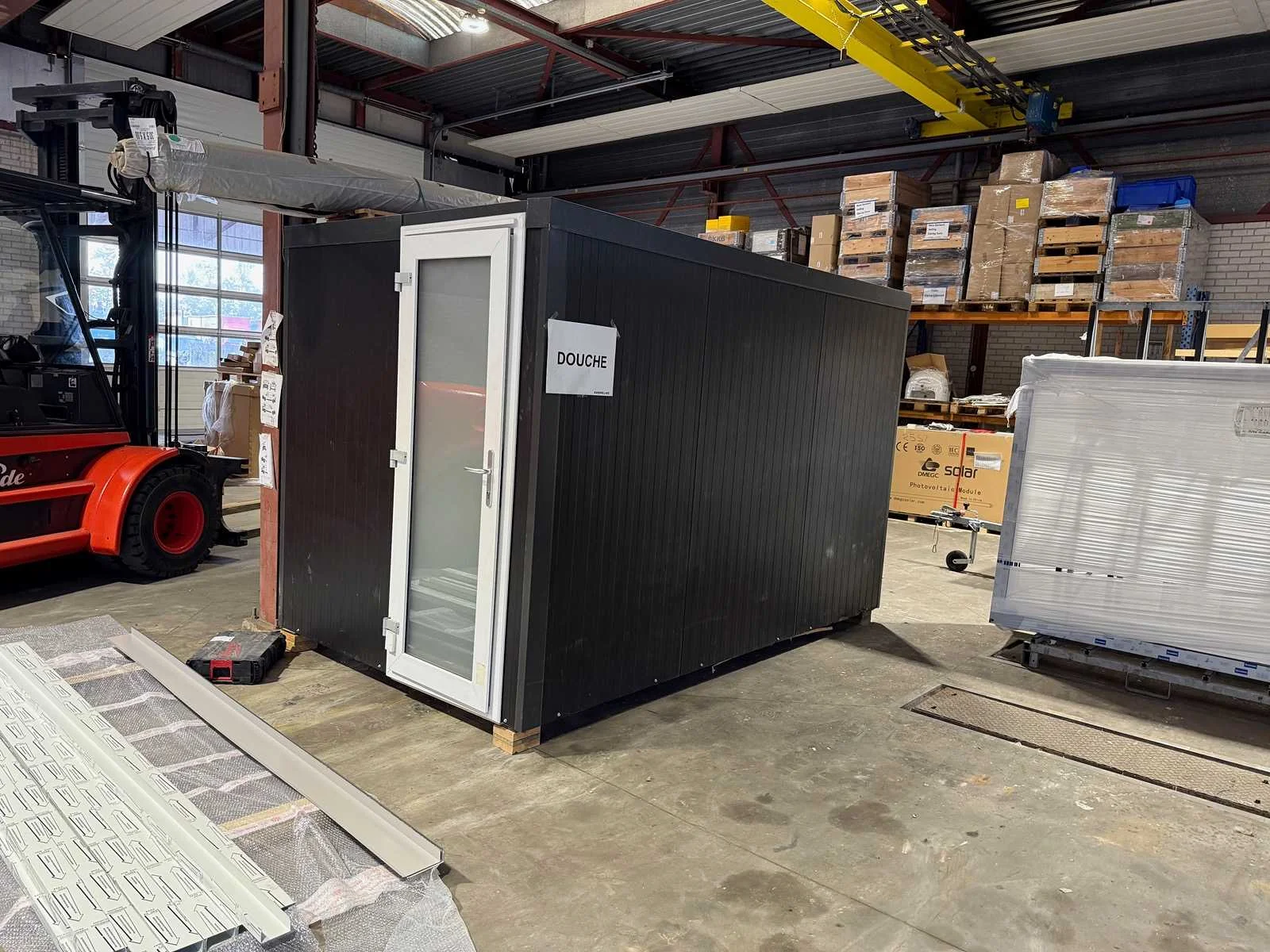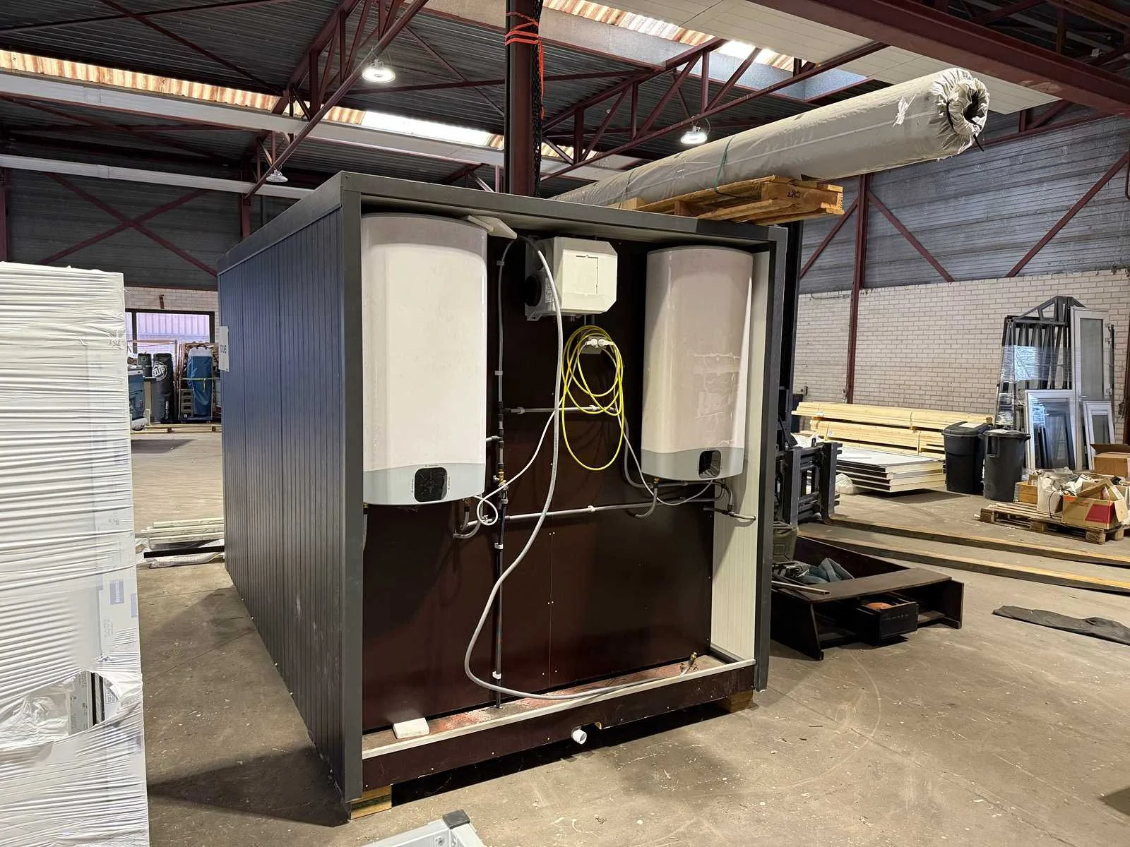 Is voorzien van een dubbele douchecabine met een wastafel. Douche voorzien van thermostatische mengkraan, glijstang en douchekop. Kunststof kozijn voorzien van privacy beglazing. Voorzien van 2x boiler 80 liter. Aansluitvermogen van 1500W per boiler De unit is gebouwd om binnen gebruikt te worden. Het betreft een gebruikte unit. Bouwjaar: 2022 Aantal toiletten: 0 Aantal wastafels: 1 Aantal douches: 2 Totale afmeting L: 3400mm Totale afmeting Breedte: 2050mm Totale afmeting Hoogte: 2200mm