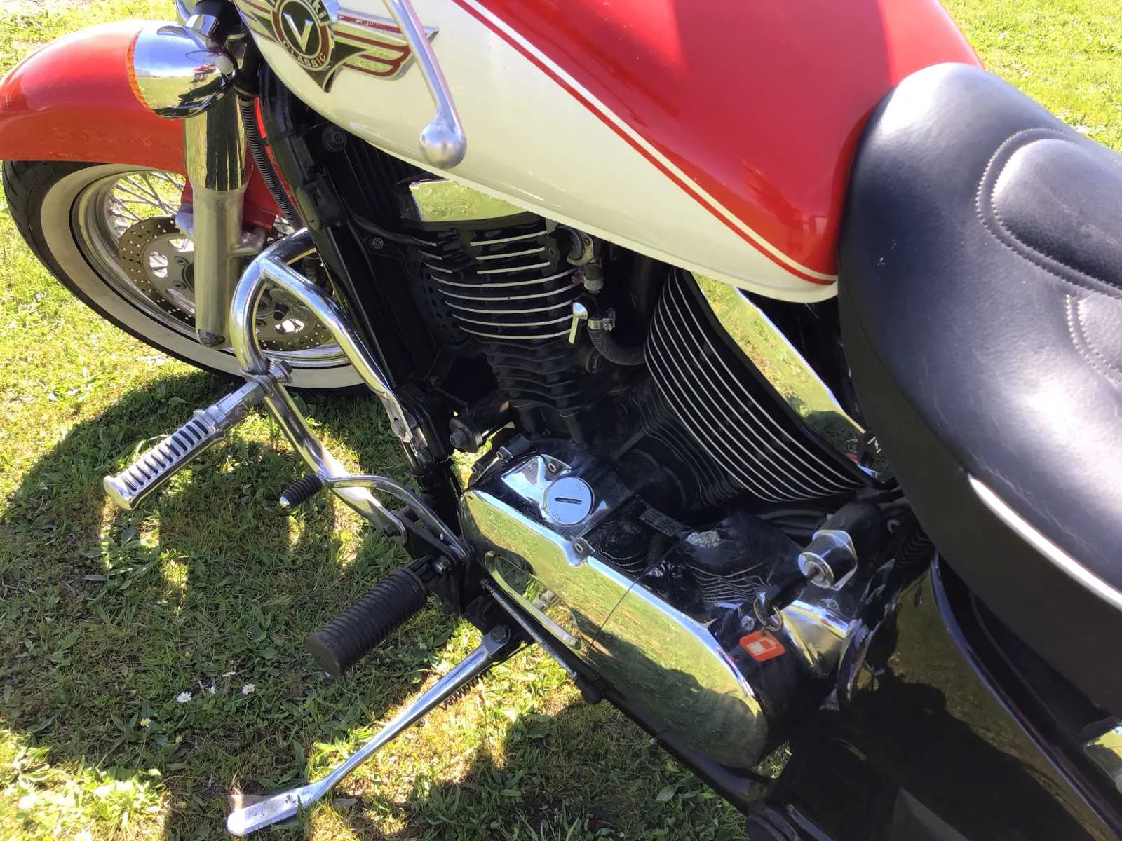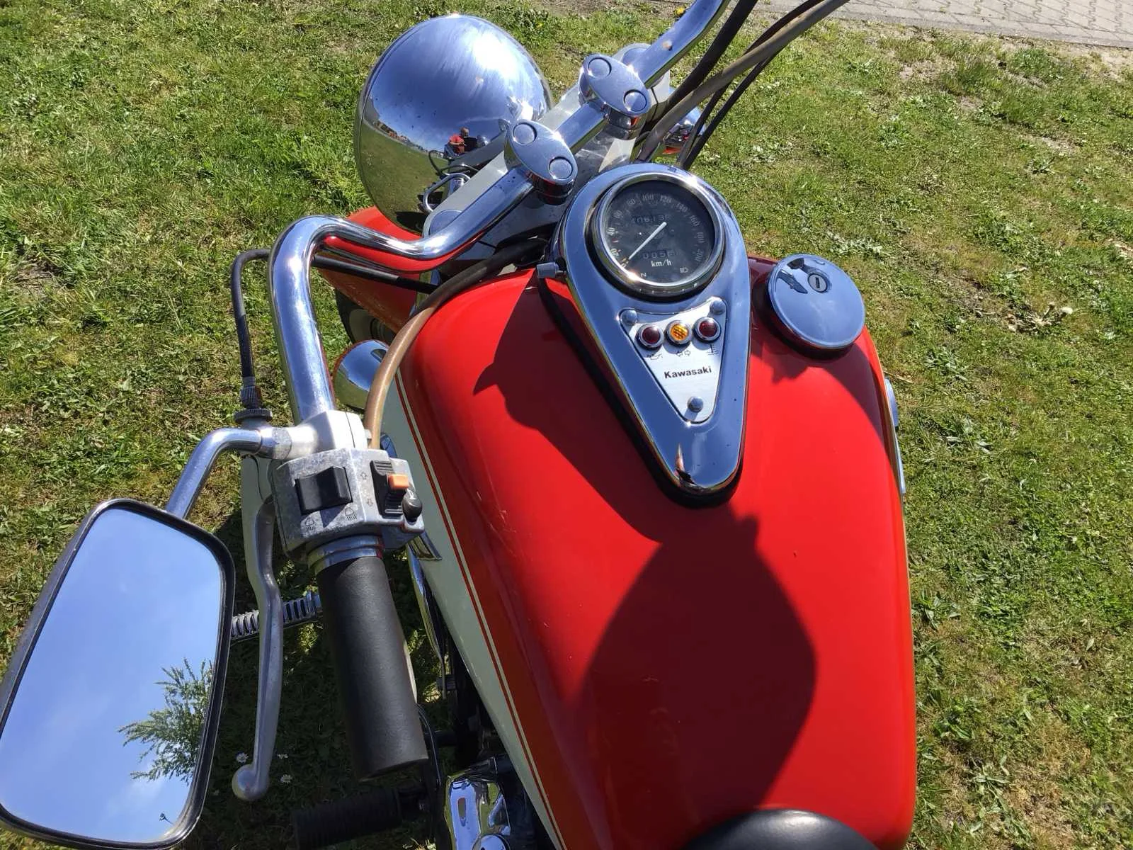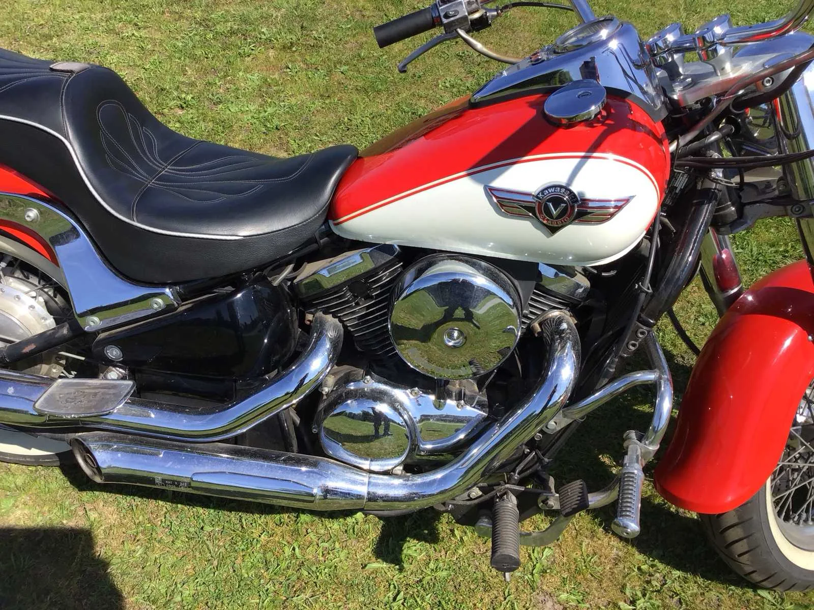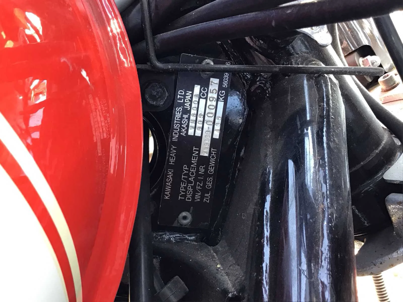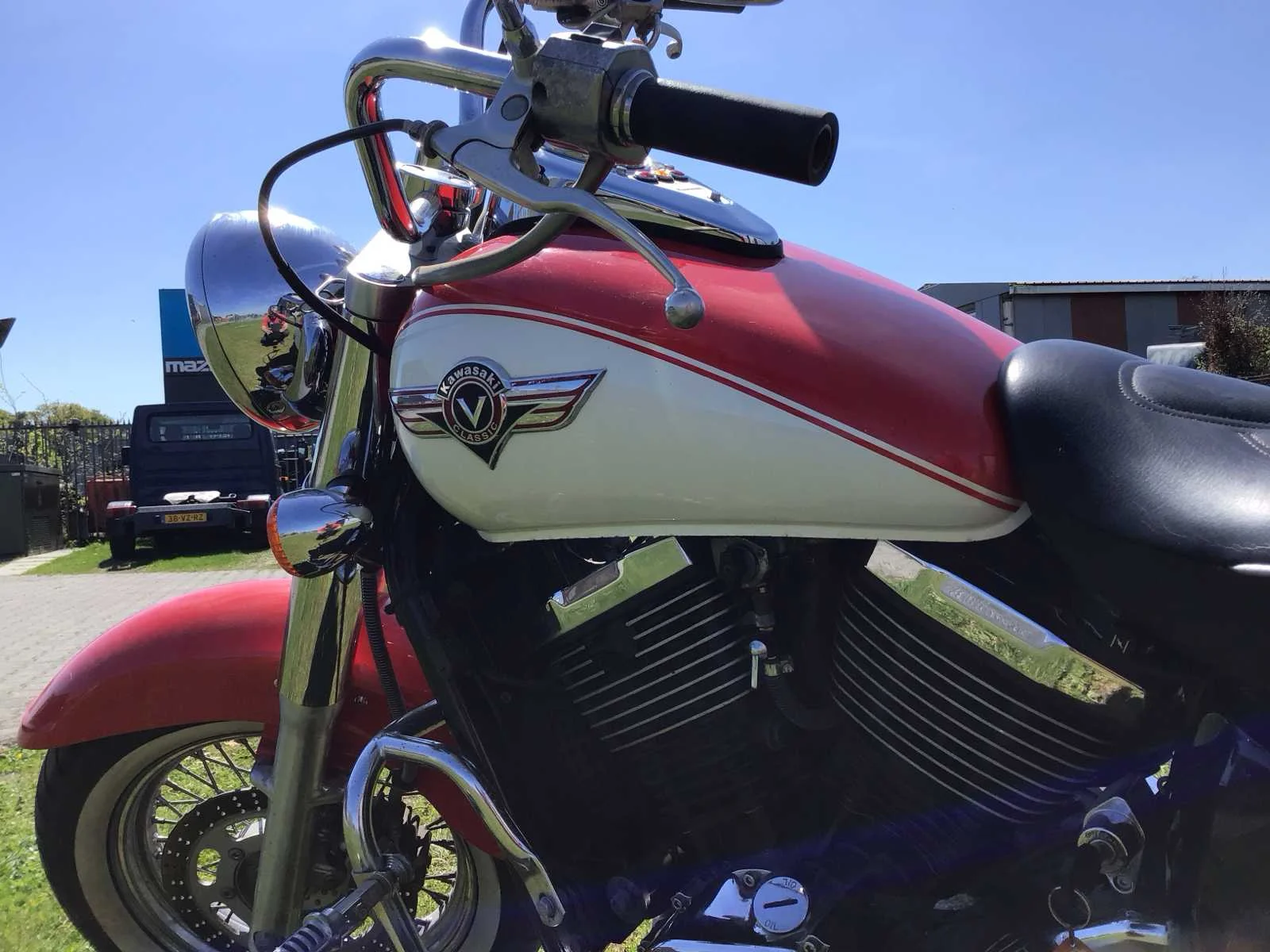White Wall banden. Accu defect, blijft daardoor niet lopen zonder externe spanning. Merk: Kawasaki Model: Chopper Type: VN 800 Vulcan Cl. Kenteken: MY-56-XR Brandstof: benzine Chassisnummer: VN800B000957 Cilinderinhoud: 805cc Datum eerste toelating: 1996-04-03 Gewicht: 261kg Vermogen (kW): 41kW Kleur: Rood Wit Afgelezen kilometerstand: 40613km Transmissie: Voetgeschakeld Datum eerste toelating (NL): 1998-05-20 Nationaliteit documenten: Nederlands Bruto BPM (NL): 1100€ Rest BPM: 0€ Handelsbenaming: VN800 CLASSIC Aantal sleutels: 1 Boorddocumenten aanwezig?: true Startinformatie: start en rijd Bouwjaar: 1996 No self drive export!: true