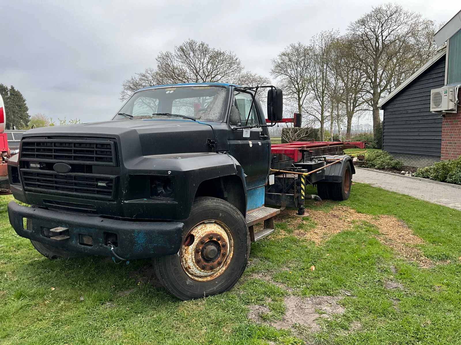 Voorzien van schaarlift, hydraulische stempels, werking onbekend. Let op: geen kenteken wel KLM registratie. Rechterspiegel is afgebroken. Merk: Ford Type: F700 Bouwjaar: 1992 Chassisnummer VIN: 1FDRK74P7NVA14122 Cilinderinhoud: 6600cc Kilometerstand bij opname: 125699km Aantal assen: 2 Asconfiguratie: 6x2 Laadvermogen: 3277kg Startinformatie: Start Aantal zitplaatsen: 2 Automaat: true Diesel: true No self drive export!: true