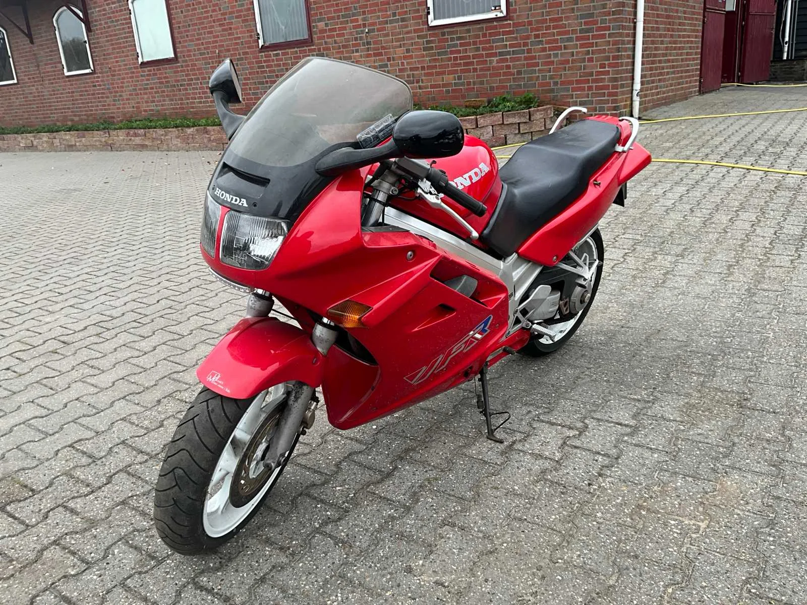 Merk: Honda Model: VFR750F Kenteken: MJ-28-YK Brandstof: benzine Chassisnummer: HMRC36-2008102 Cilinderinhoud: 748cc Datum eerste toelating: 1990-10-05 Gewicht: 223kg Vermogen (kW): 74kW Afgelezen kilometerstand: 65837km Transmissie: Voetgeschakeld Datum eerste toelating (NL): 1990-10-05 Bruto BPM (NL): 0€ Aantal sleutels: 2 Startinformatie: Start en loopt Self drive export possible : true