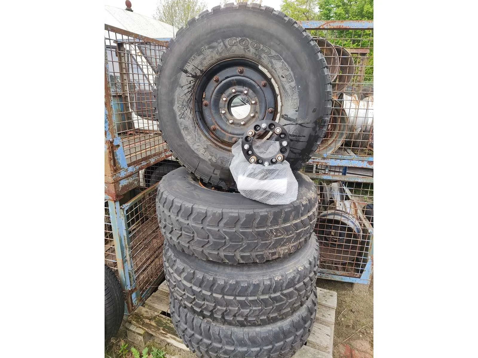 Originele Hummer 8-bolt 2 delige velgen met 37" banden en nieuwe 2" spoorverbreders spacers. Bandenmaat: 37/12,5R16,5 Spacers: 2" dik Boutmaat: 9/16 Merk: Hummer 8-bolt + spacers Model: 37" 8x165,1 Velgmaat: 16,5 Velgsoort: staal Steekmaat: 8x165,1 Kleur: zwart