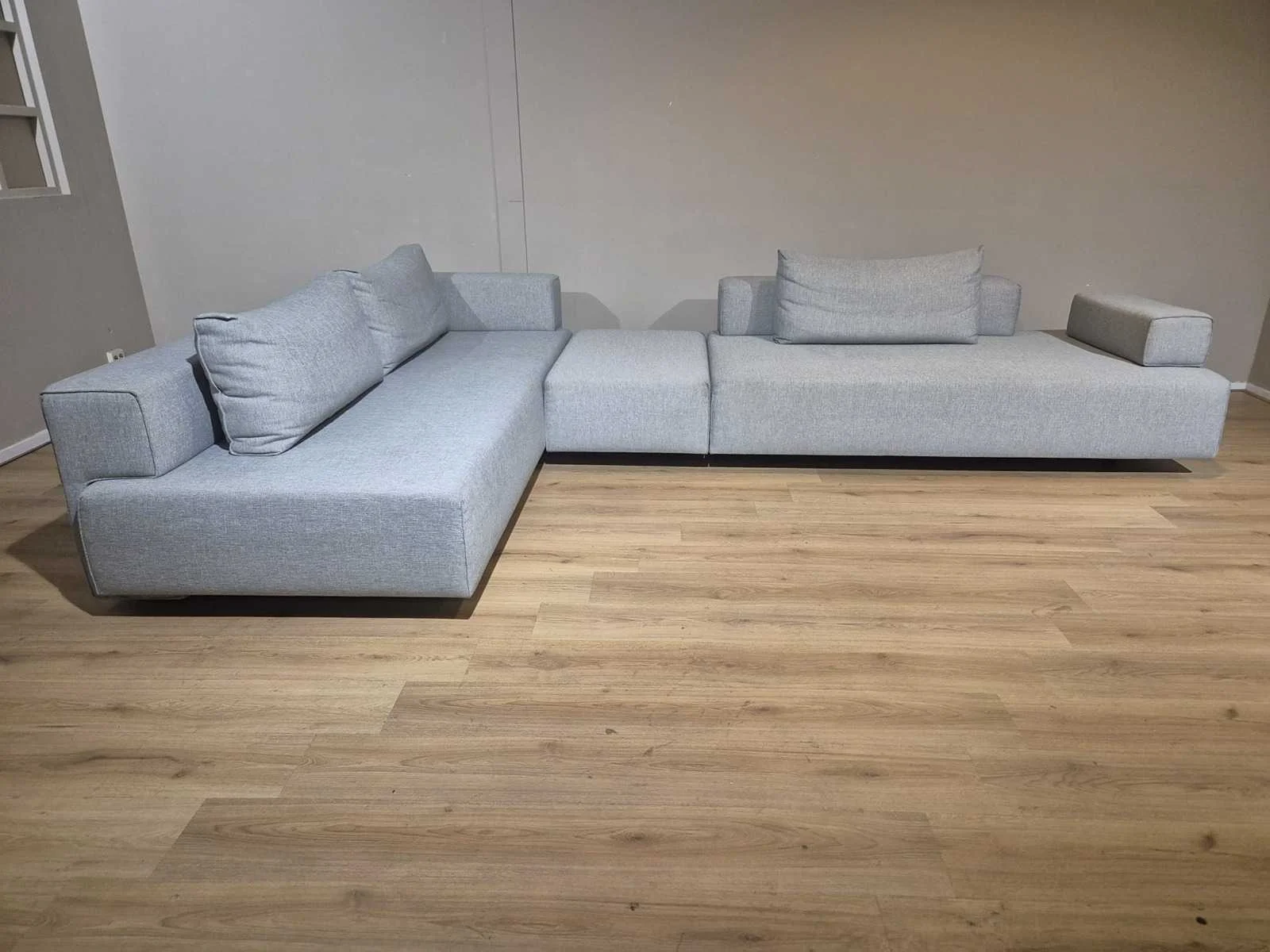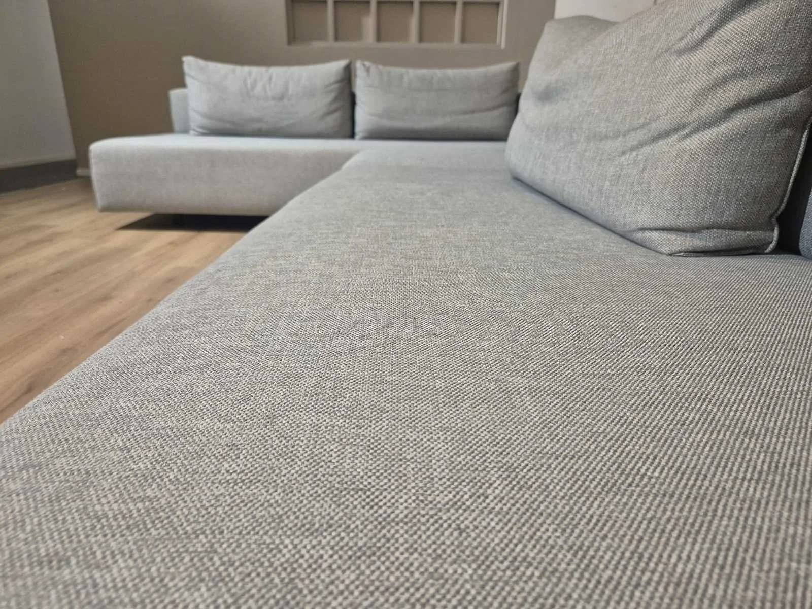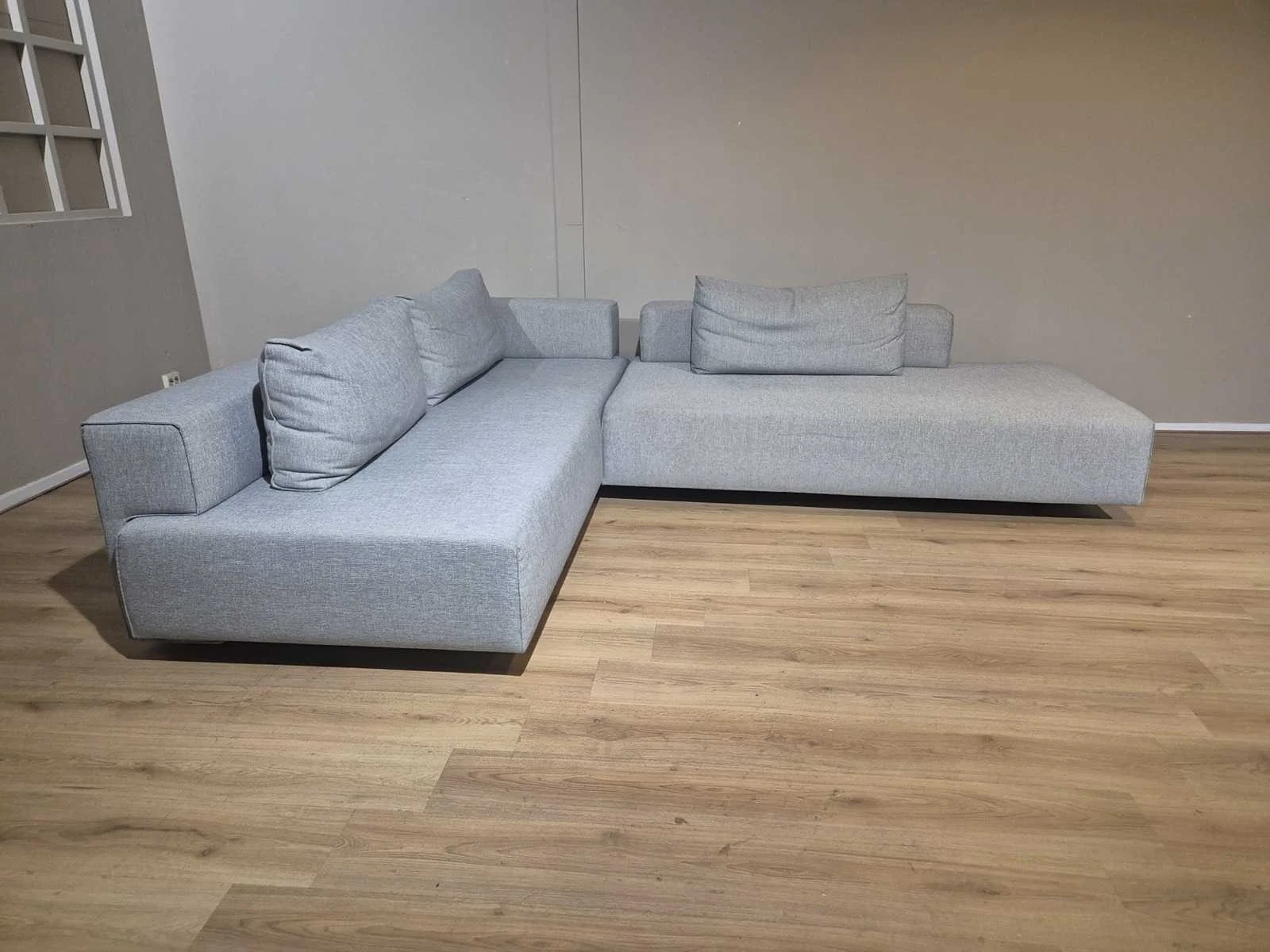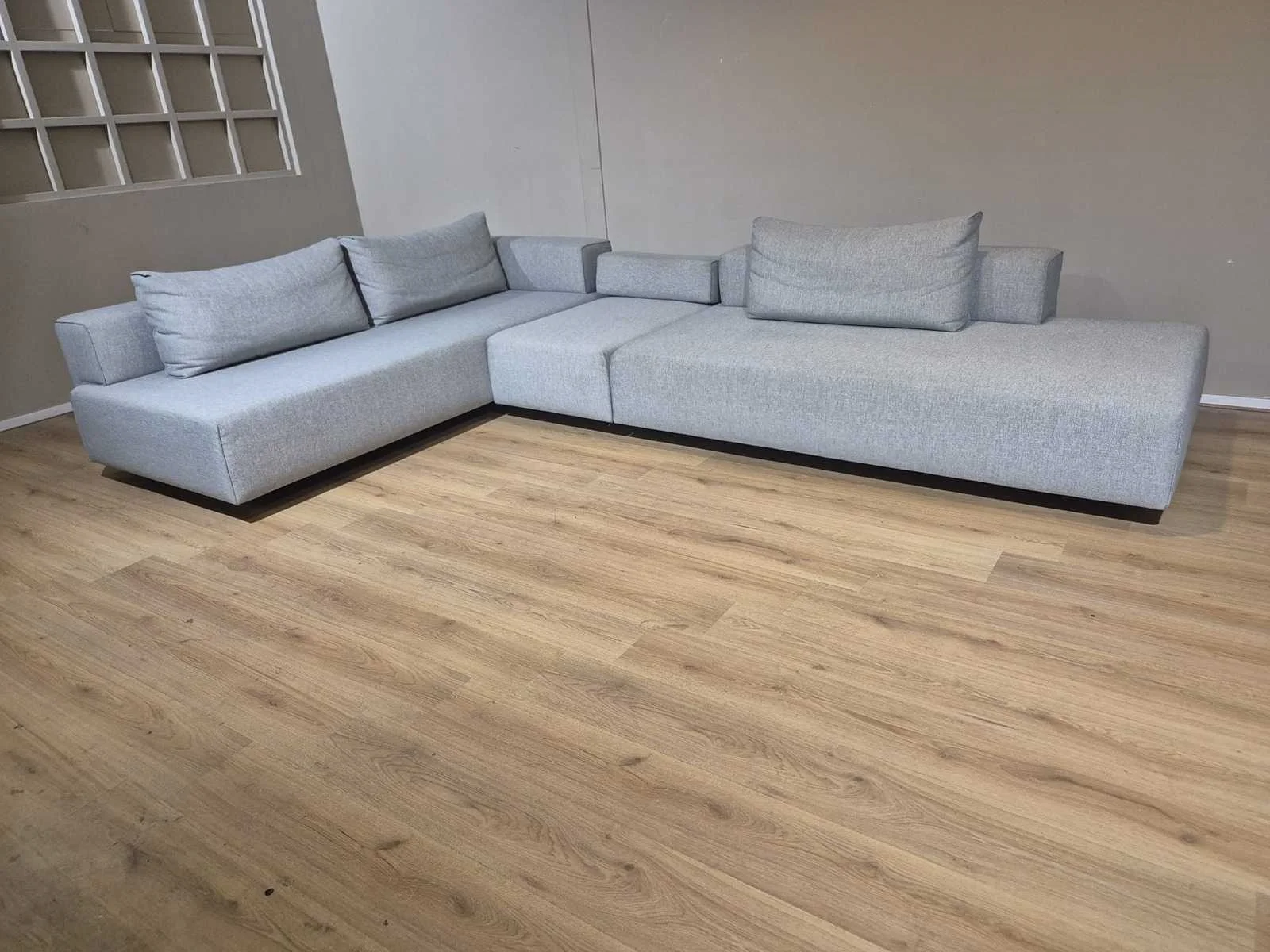Nieuwstaat Nieuwprijs: €7729,- Merk: Eyye Model: Cella Product type: Hoekbank Kleur: Grijs Lengte: 340cm Breedte: 220cm Hoogte: 90cm Zithoogte: 47cm Materiaal: Textiel