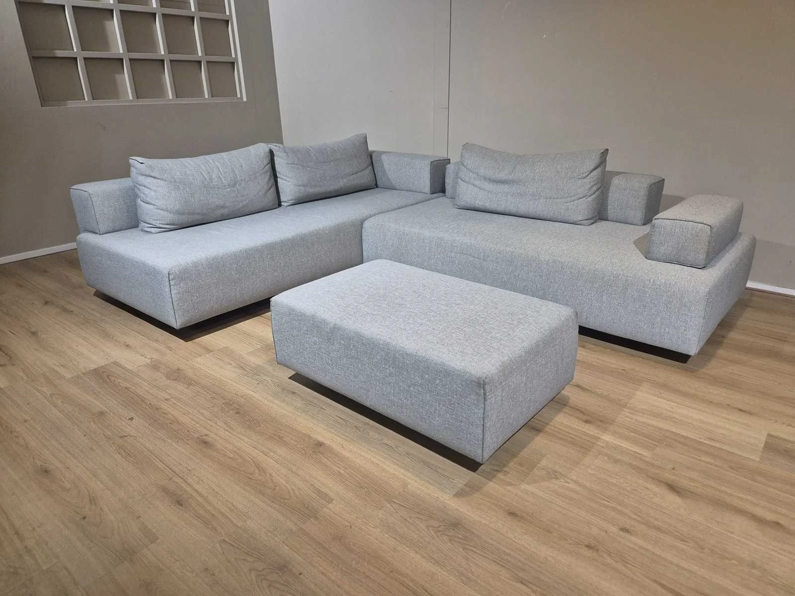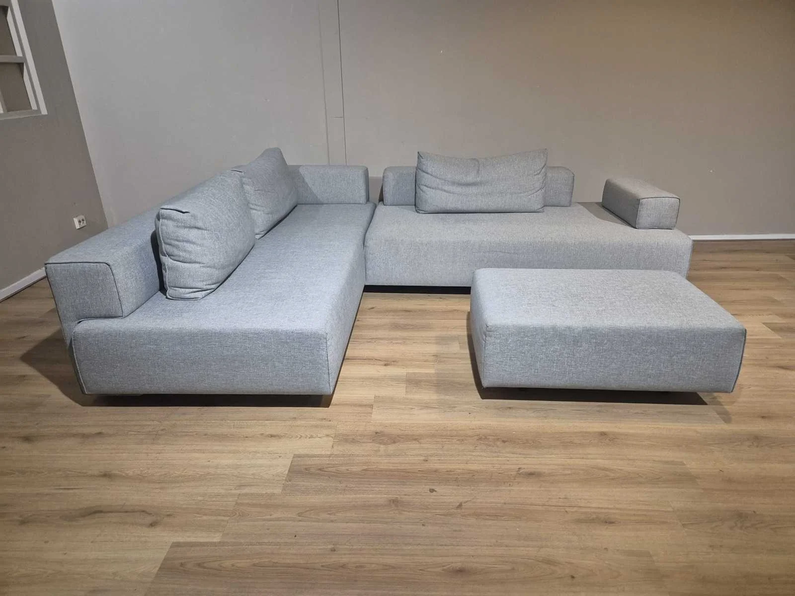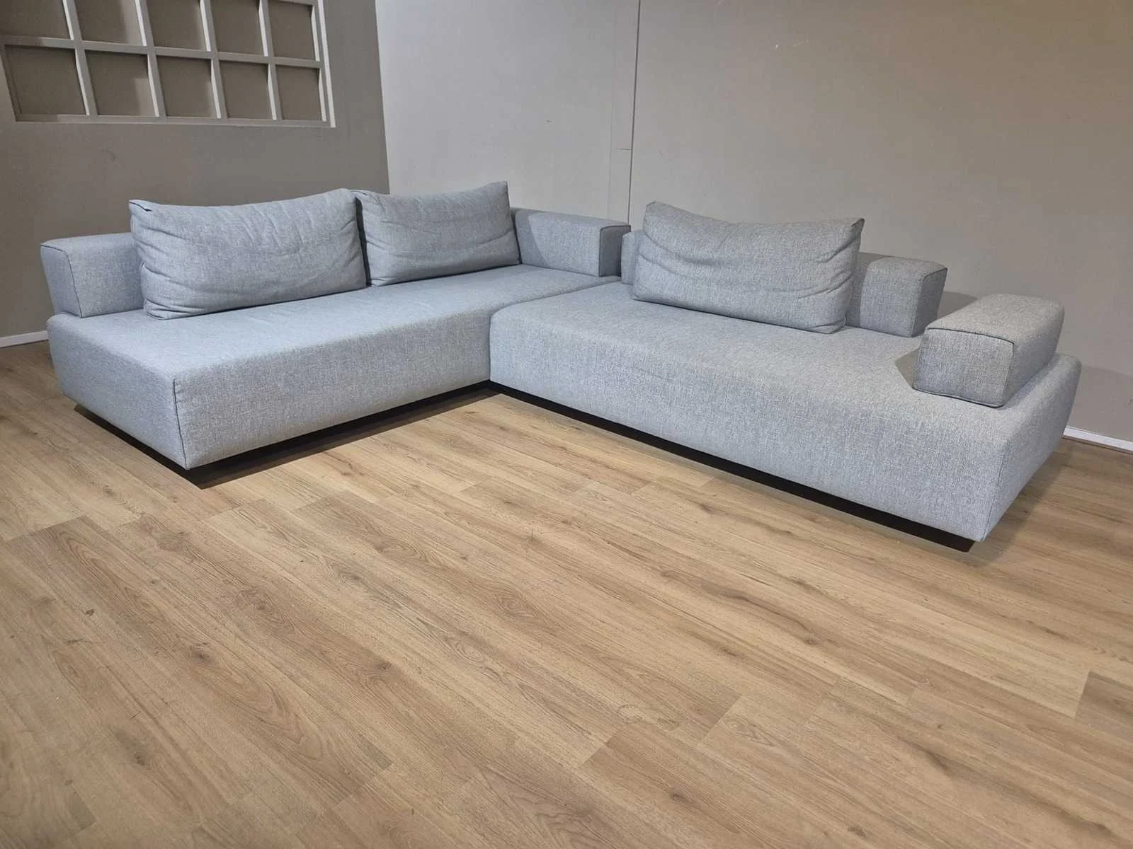 Nieuwstaat Nieuwprijs: €7729,- Merk: Eyye Model: Cella Product type: Hoekbank Kleur: Grijs Lengte: 340cm Breedte: 220cm Hoogte: 90cm Zithoogte: 47cm Materiaal: Textiel