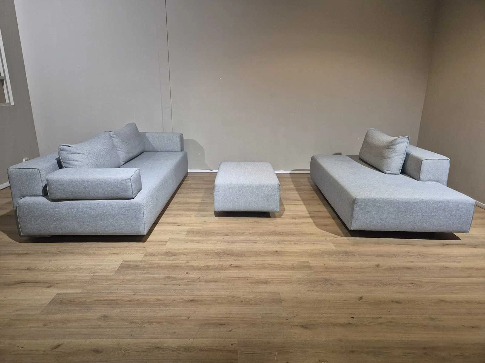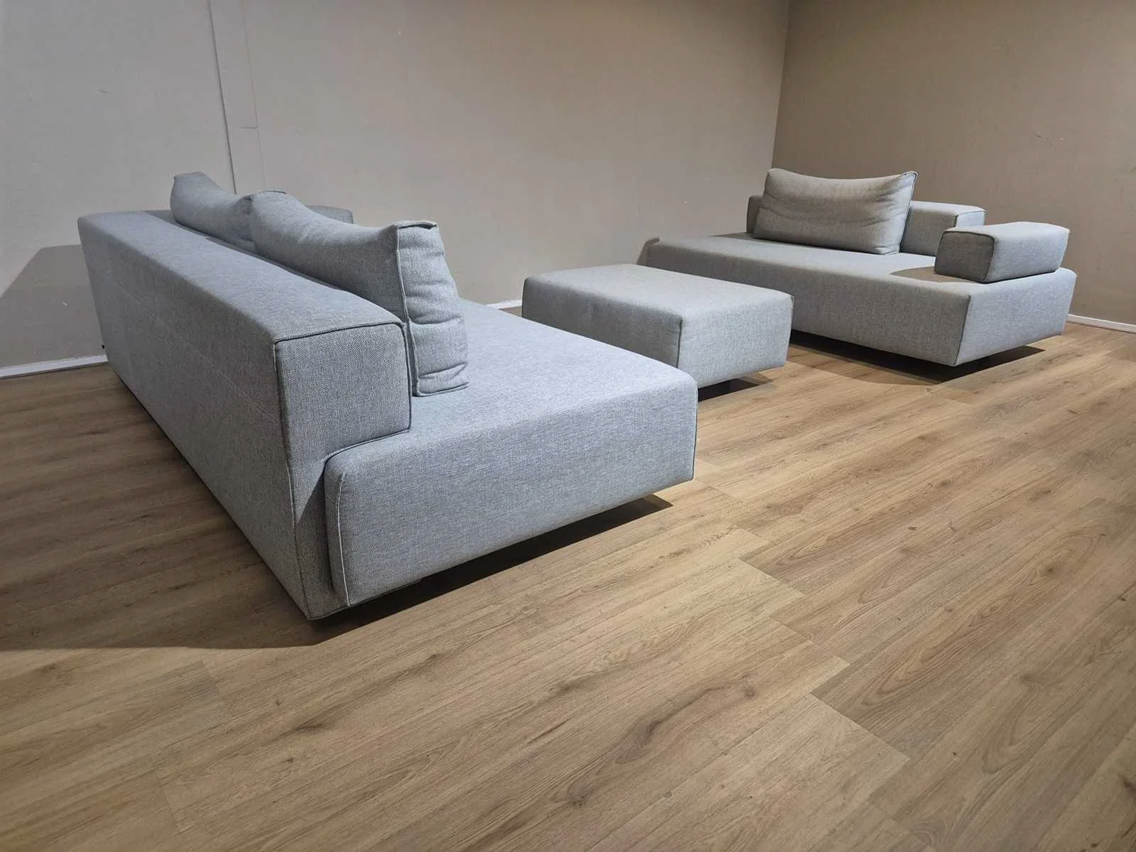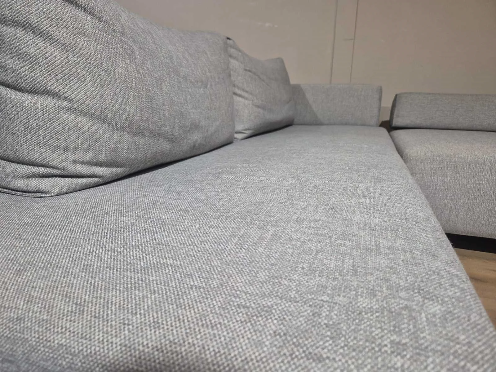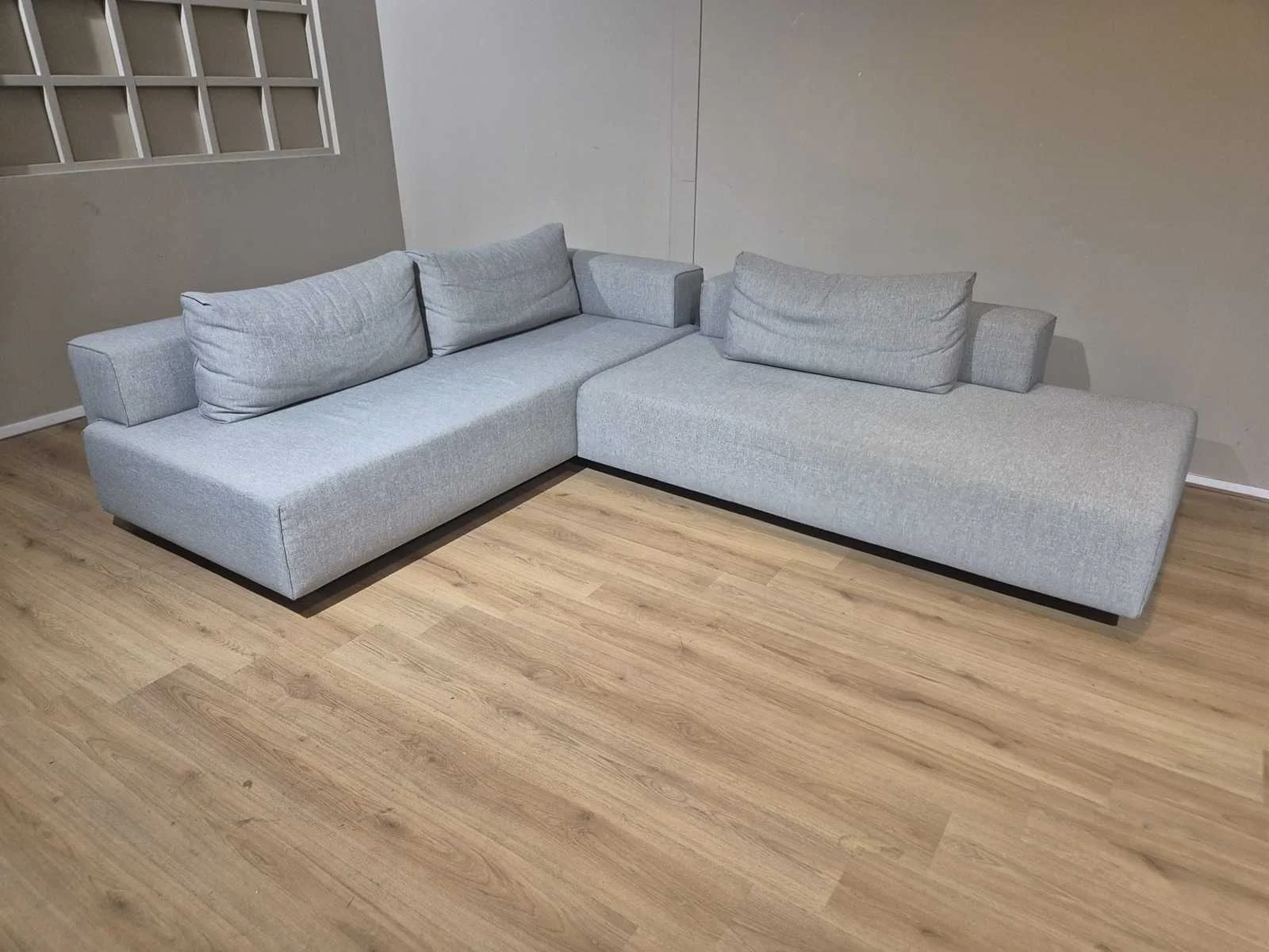Nieuwstaat Nieuwprijs: €7729,- Merk: Eyye Model: Cella Product type: Hoekbank Kleur: Grijs Lengte: 340cm Breedte: 220cm Hoogte: 90cm Zithoogte: 47cm Materiaal: Textiel