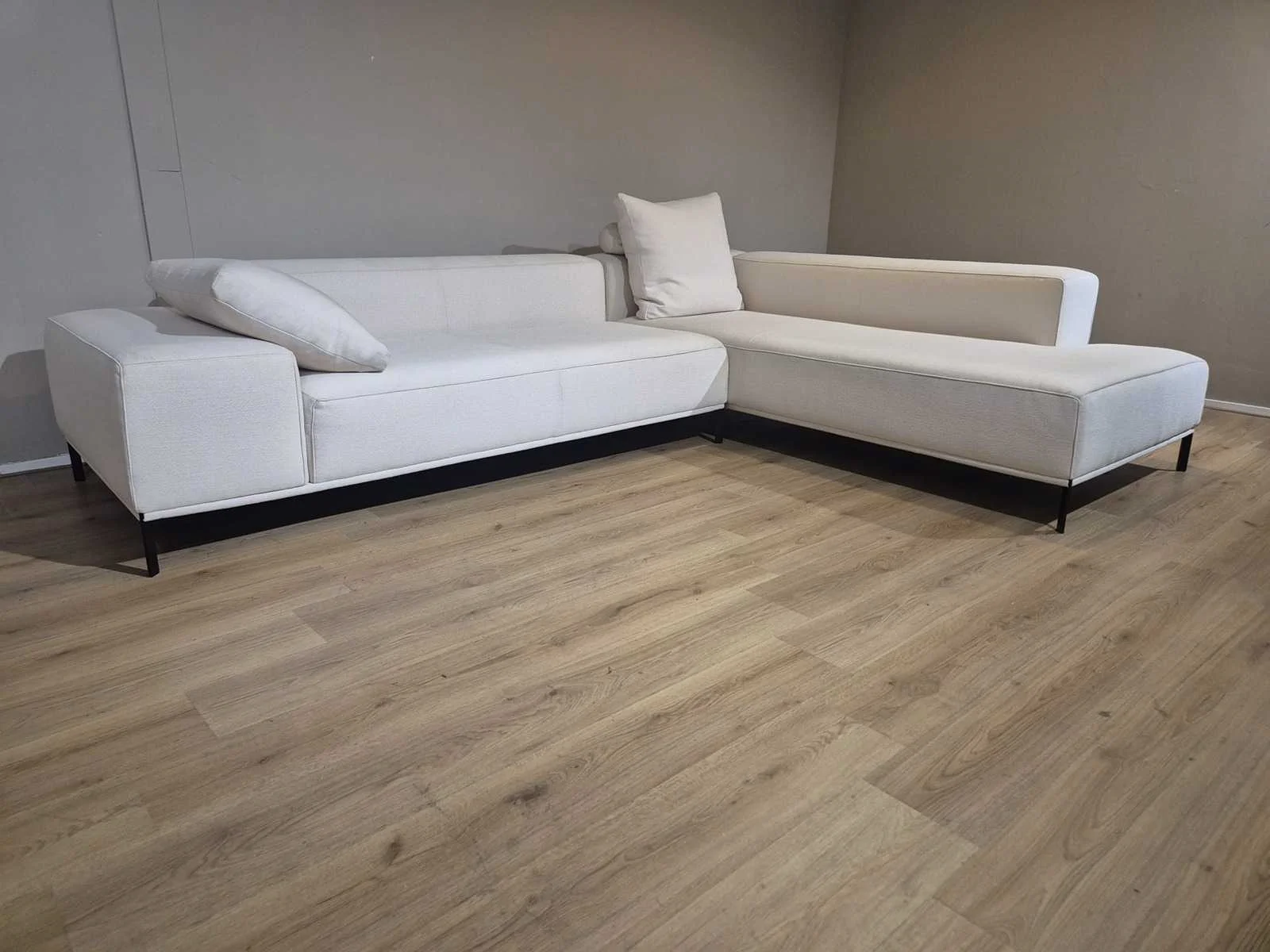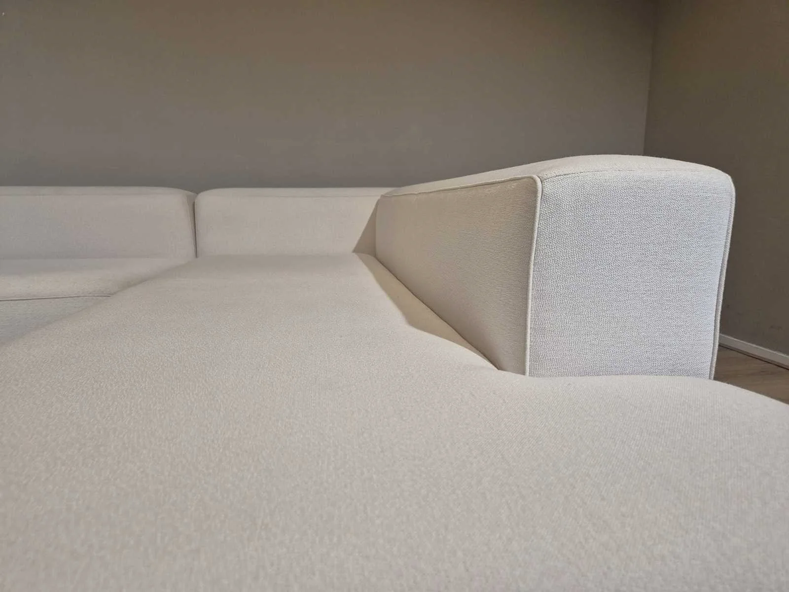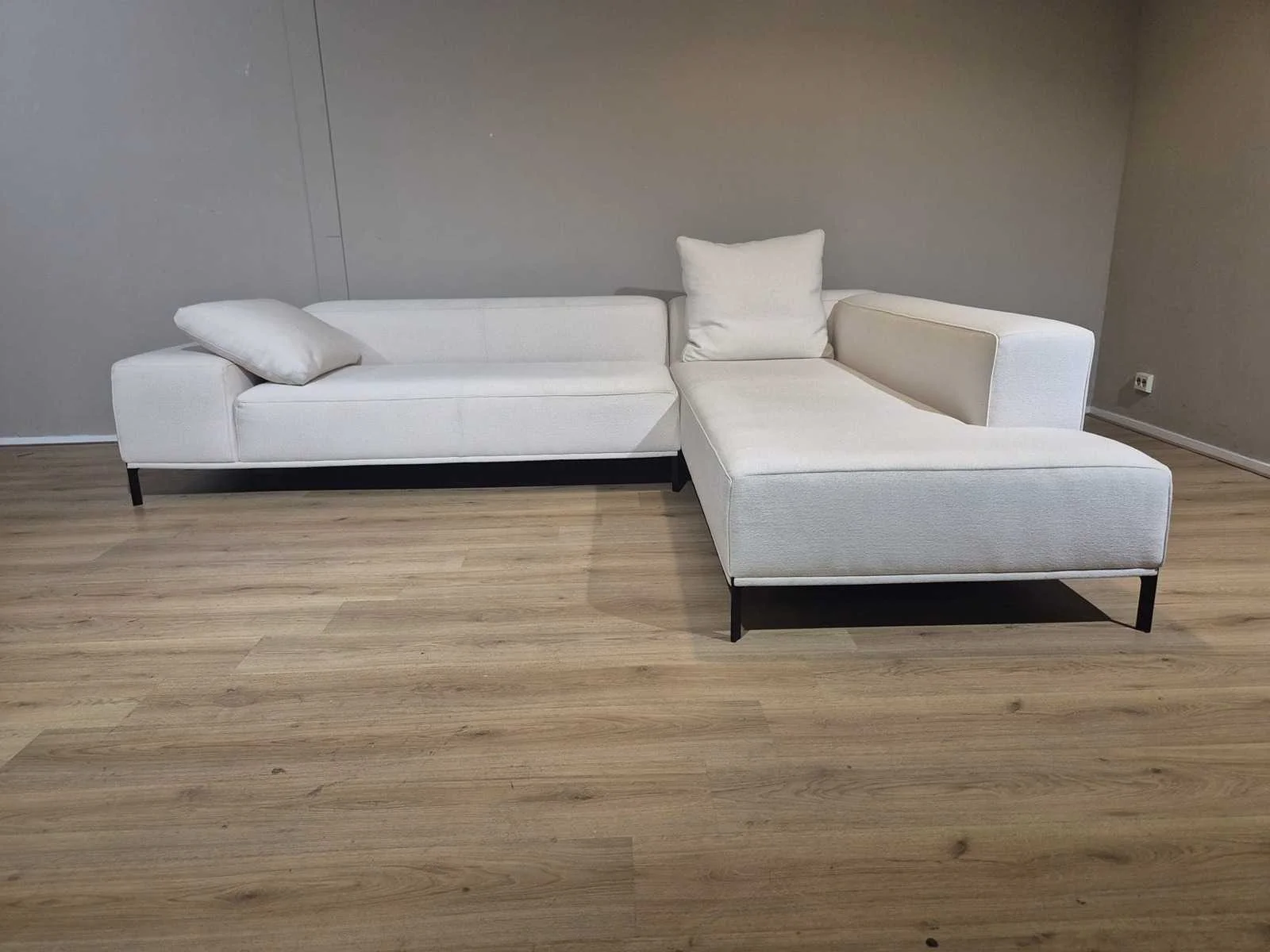 Nieuwstaat Nieuwprijs: €14.256,- Merk: Durlet Model: Buenavista Product type: Hoekbank Kleur: Ivoor Lengte: 300cm Breedte: 225cm Hoogte: 67cm Zithoogte: 43cm Materiaal: Textiel