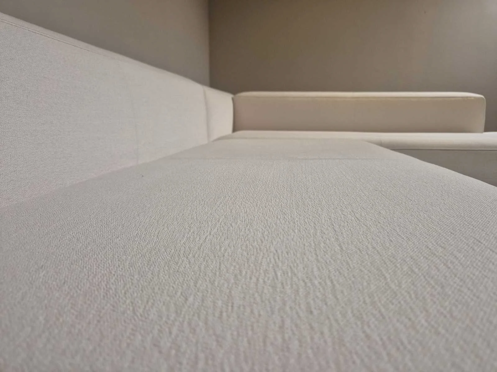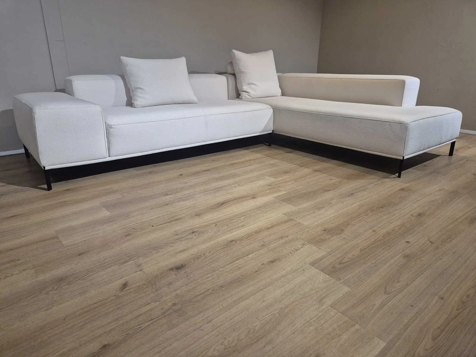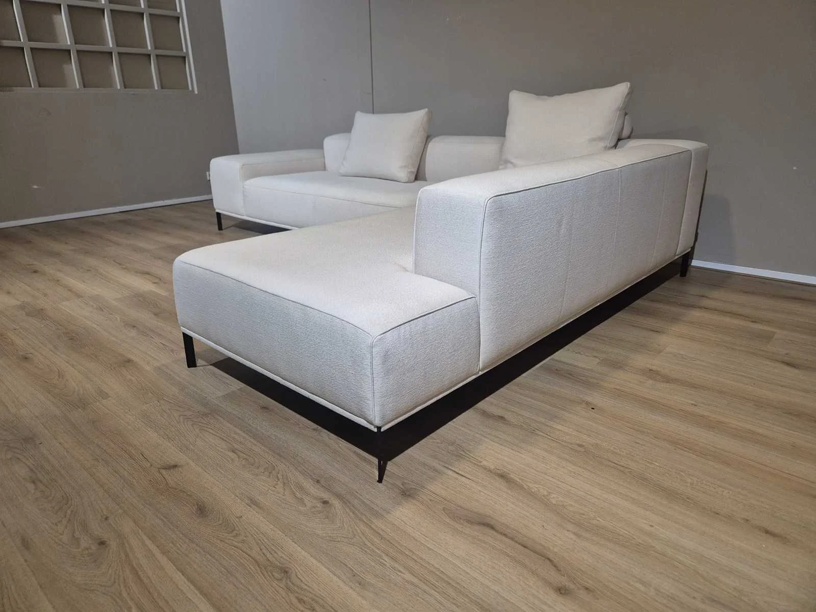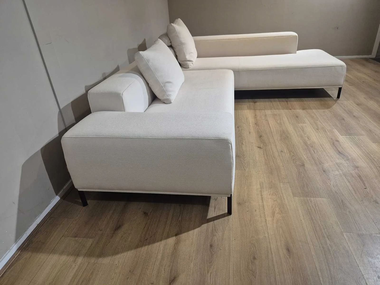 Nieuwstaat Nieuwprijs: €14.256,- Merk: Durlet Model: Buenavista Product type: Hoekbank Kleur: Ivoor Lengte: 300cm Breedte: 225cm Hoogte: 67cm Zithoogte: 43cm Materiaal: Textiel