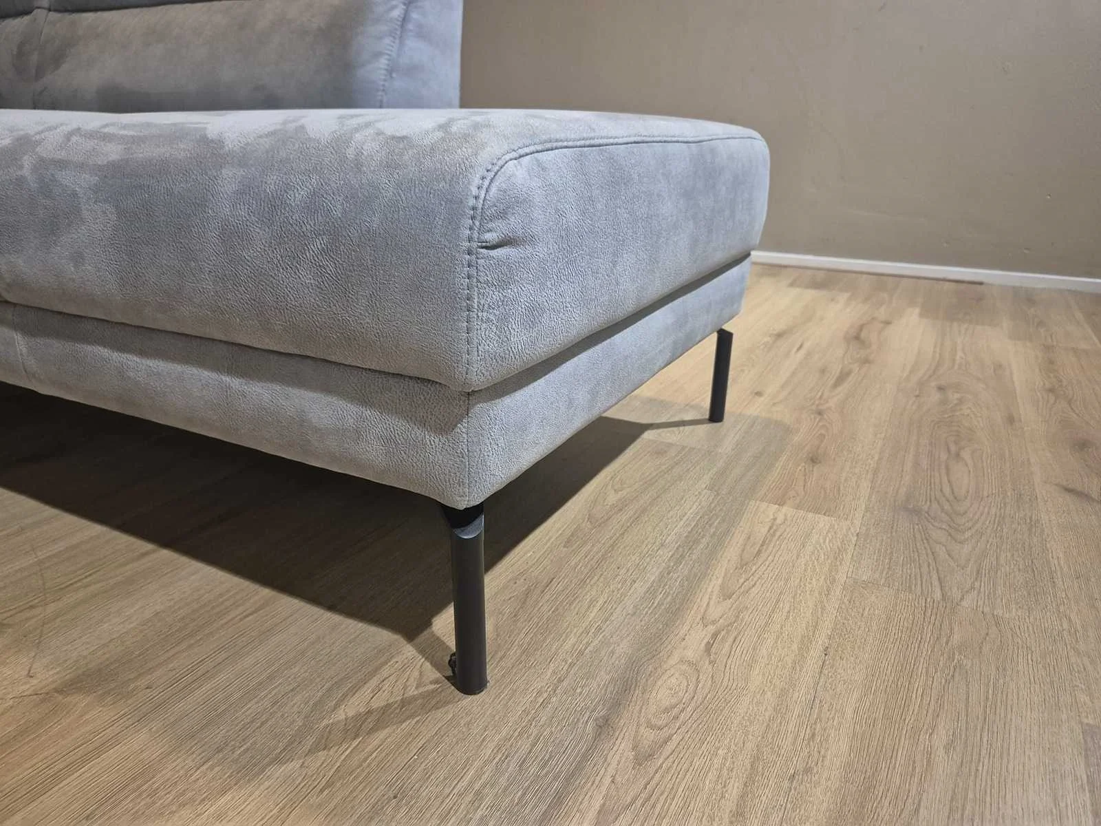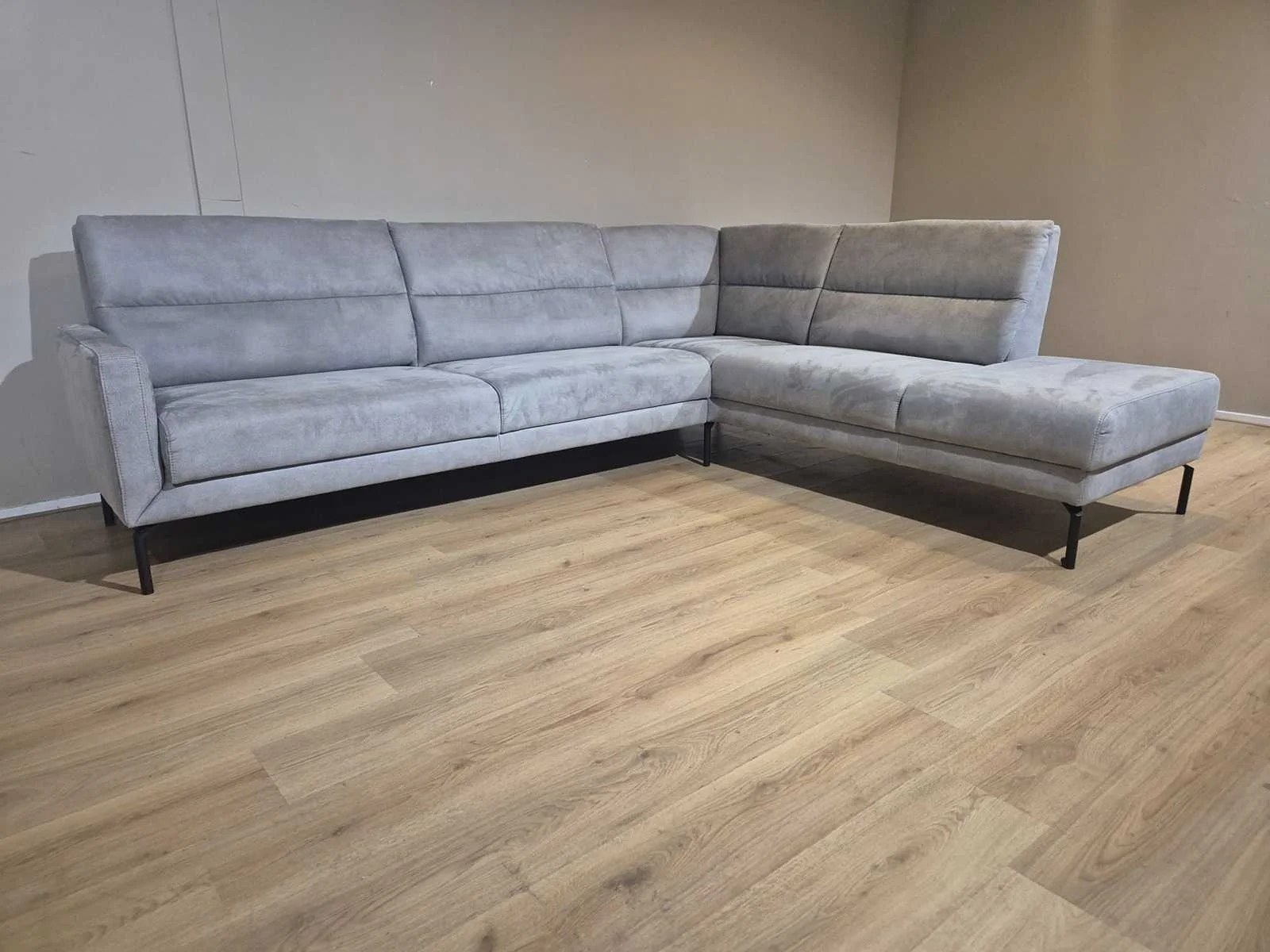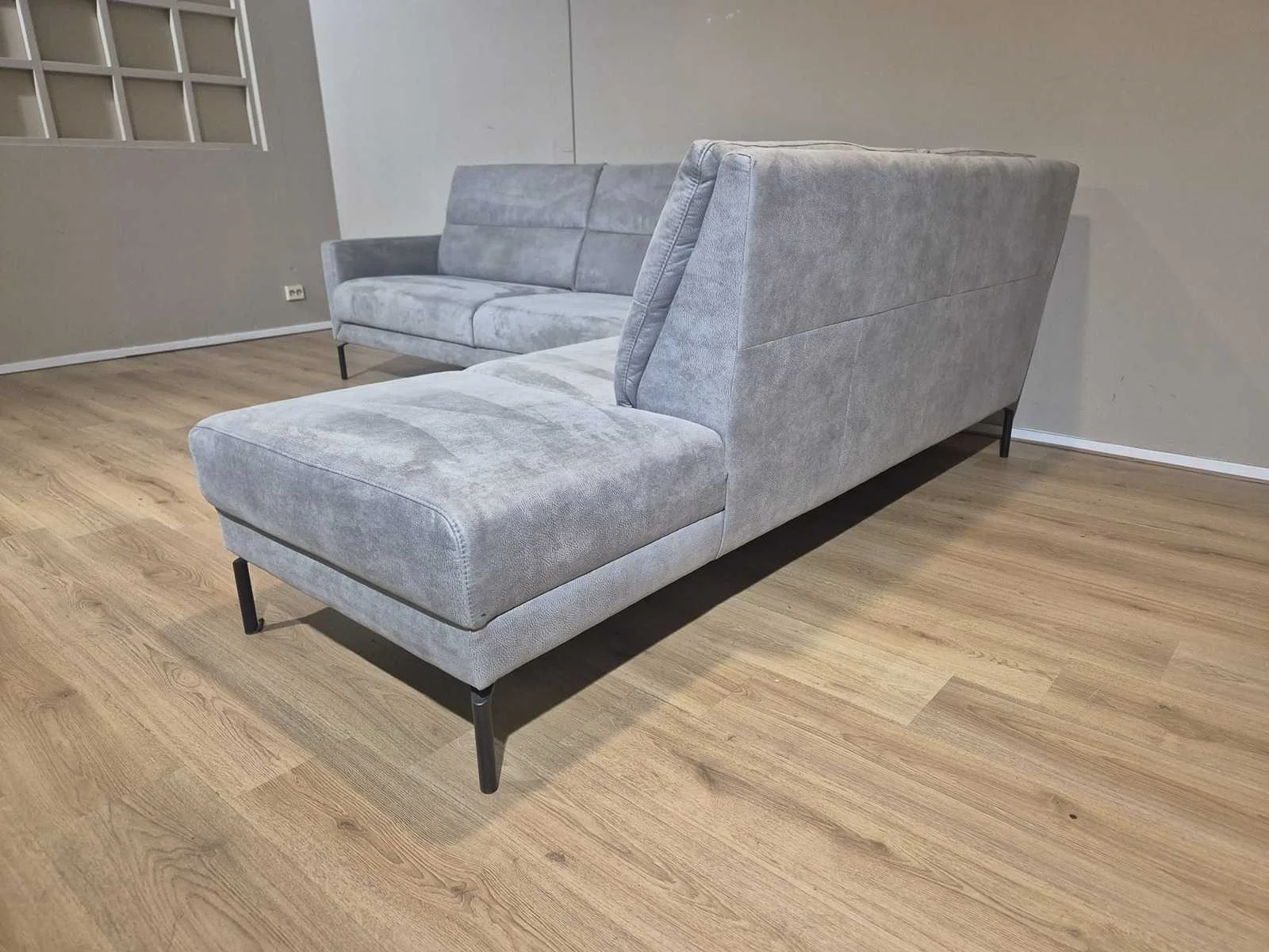 Nieuwstaat Nieuwprijs: €2890,- Merk: Prominent Model: T500 Product type: Hoekbank Kleur: Grijs Lengte: 275cm Breedte: 220cm Hoogte: 88cm Zithoogte: 44cm Materiaal: Micro leder