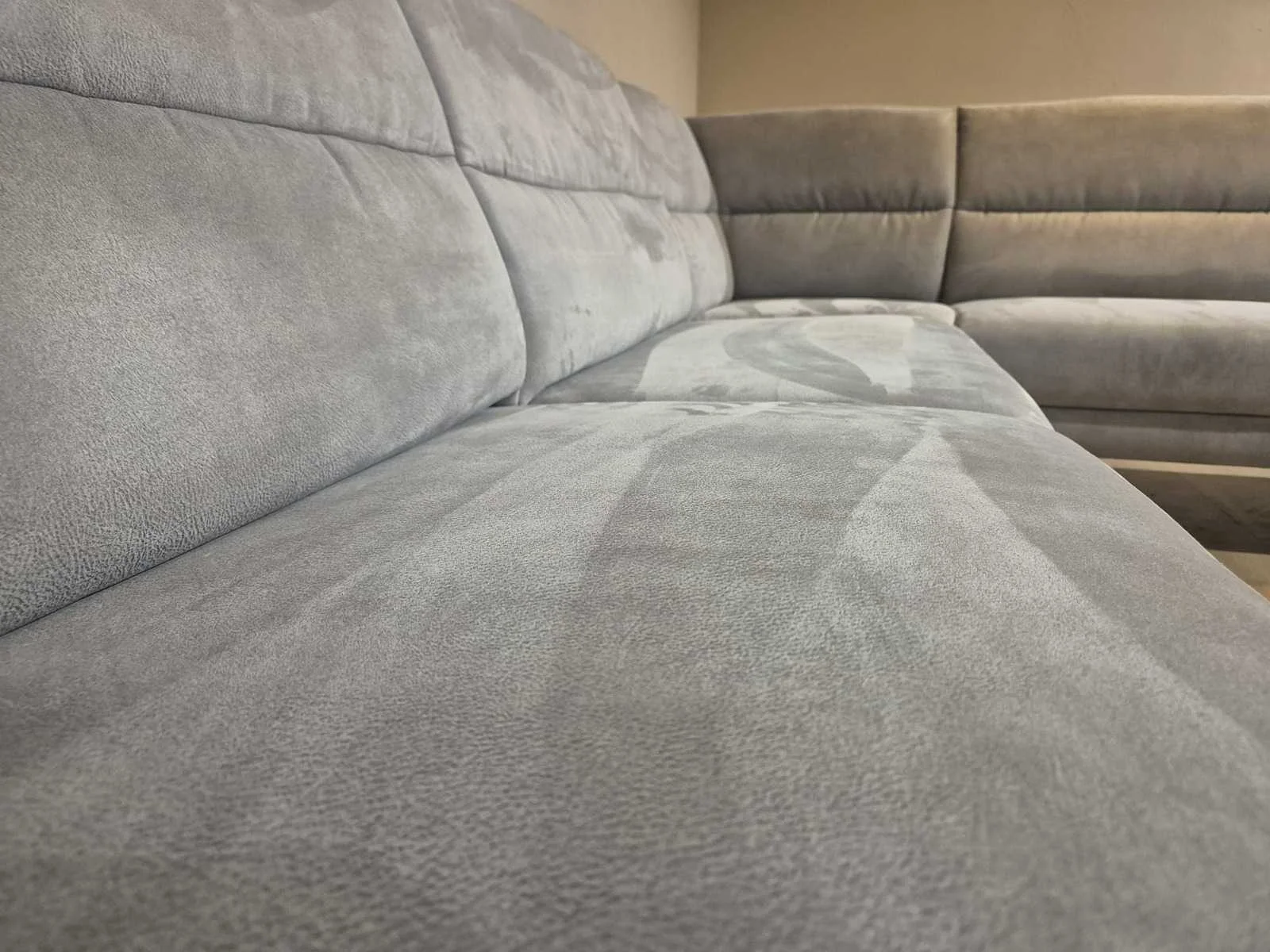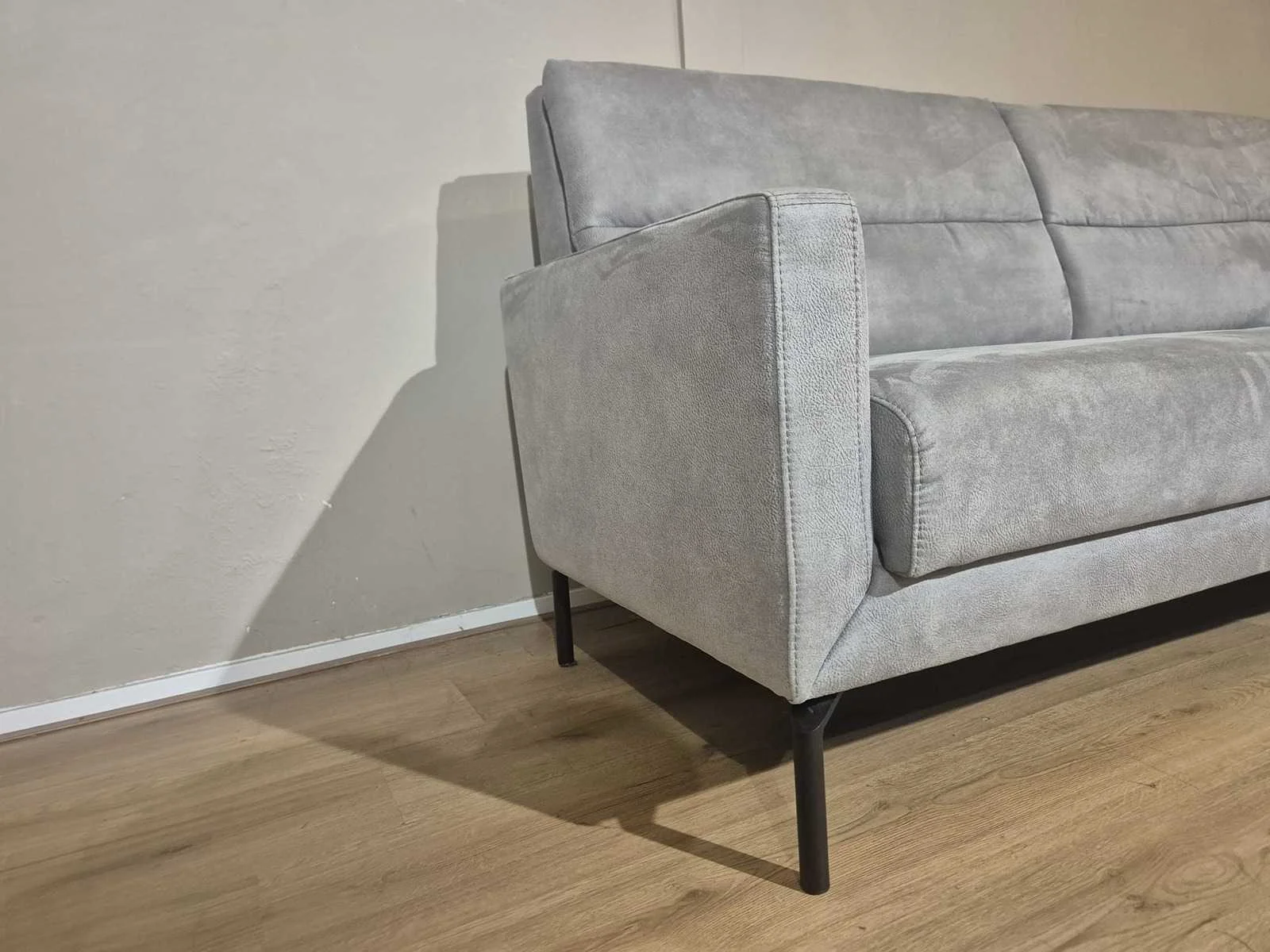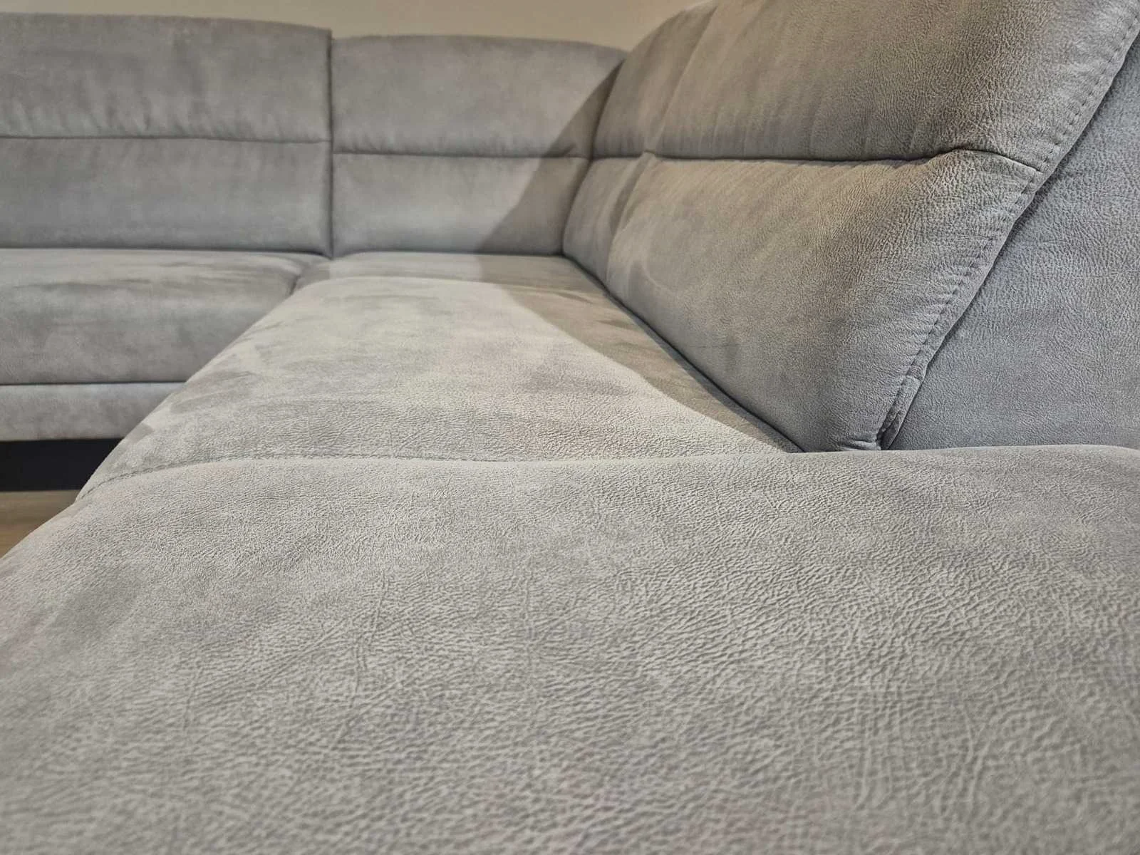 Nieuwstaat Nieuwprijs: €2890,- Merk: Prominent Model: T500 Product type: Hoekbank Kleur: Grijs Lengte: 275cm Breedte: 220cm Hoogte: 88cm Zithoogte: 44cm Materiaal: Micro leder