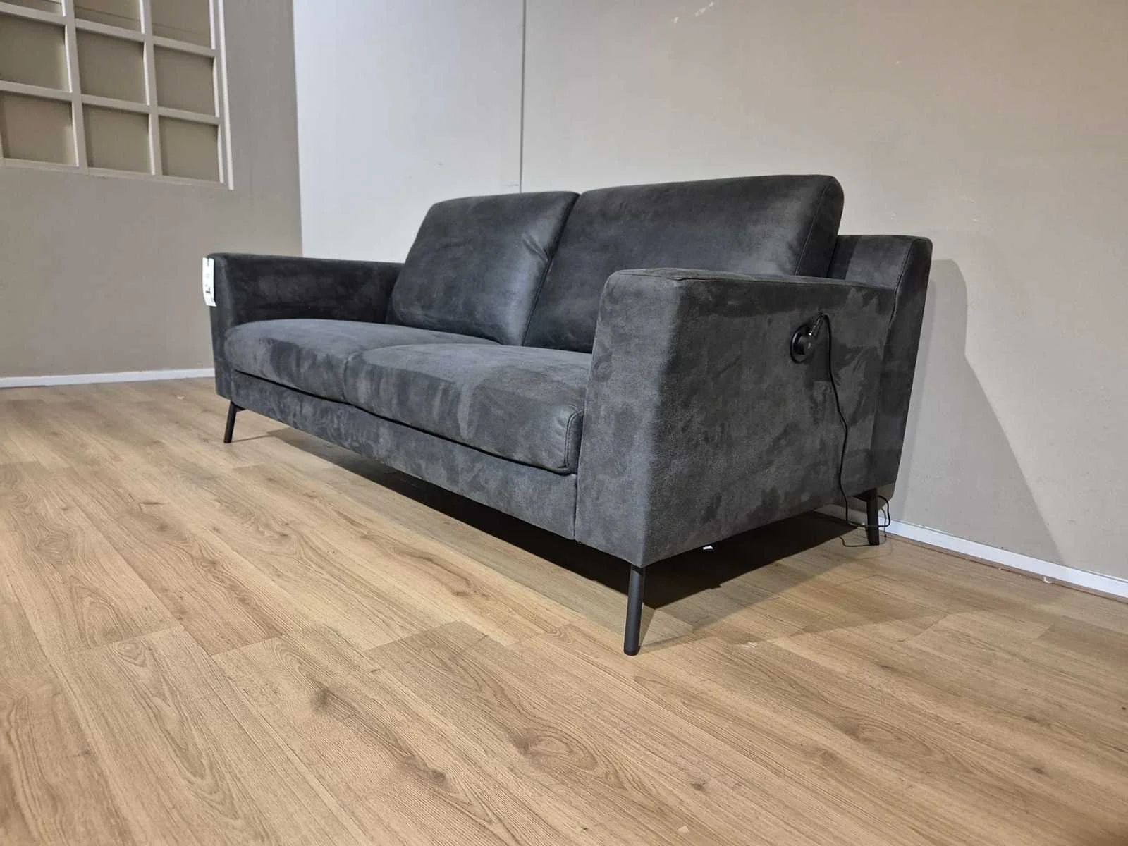 Showroommodel Nieuwprijs: €2449,- Merk: Montel Model: Montelex Remini Product type: Showroommodel 3 zits Kleur: Antraciet Lengte: 195cm Breedte: 97cm Hoogte: 85cm Zithoogte: 43cm Materiaal: Micro leer