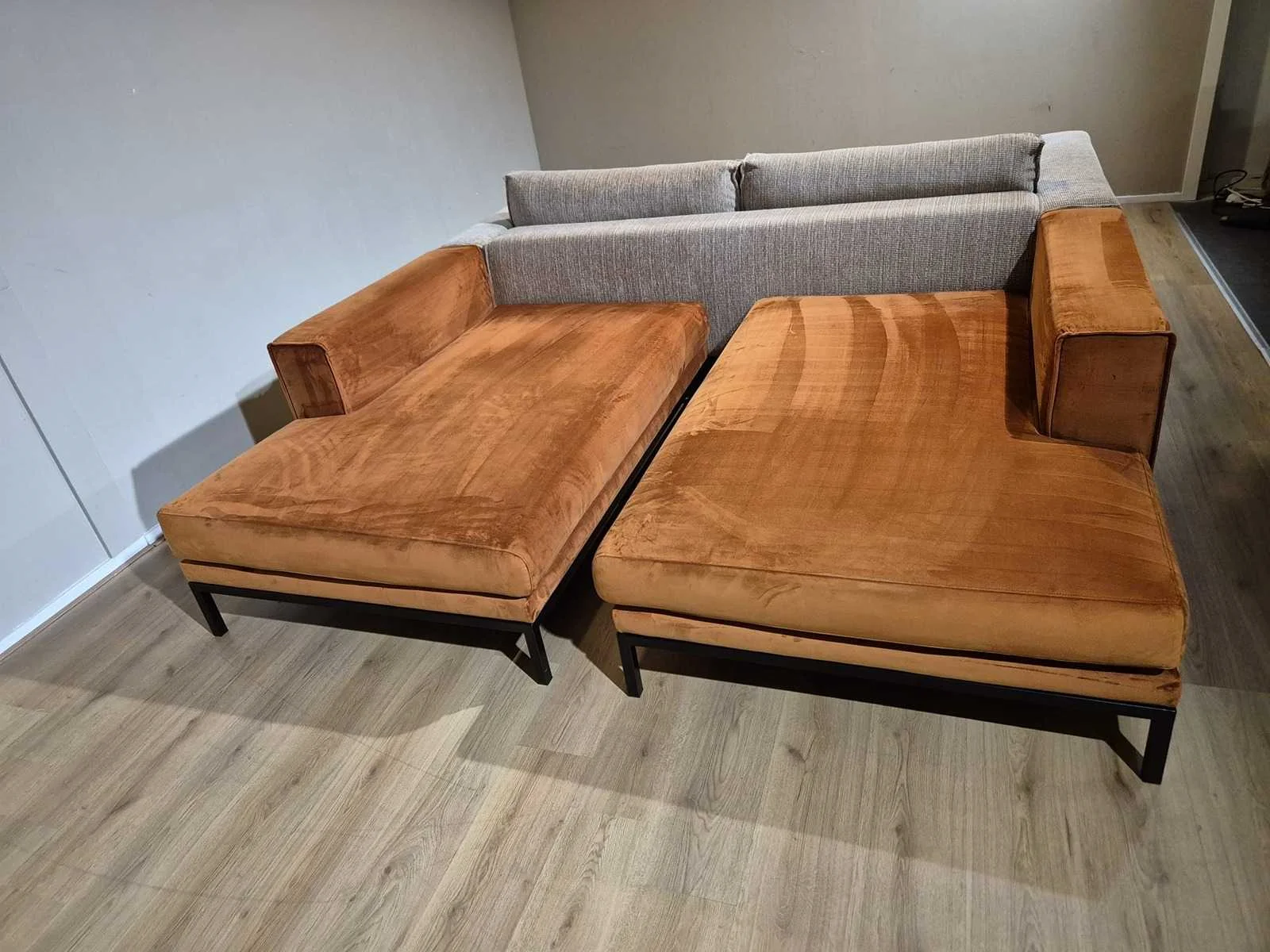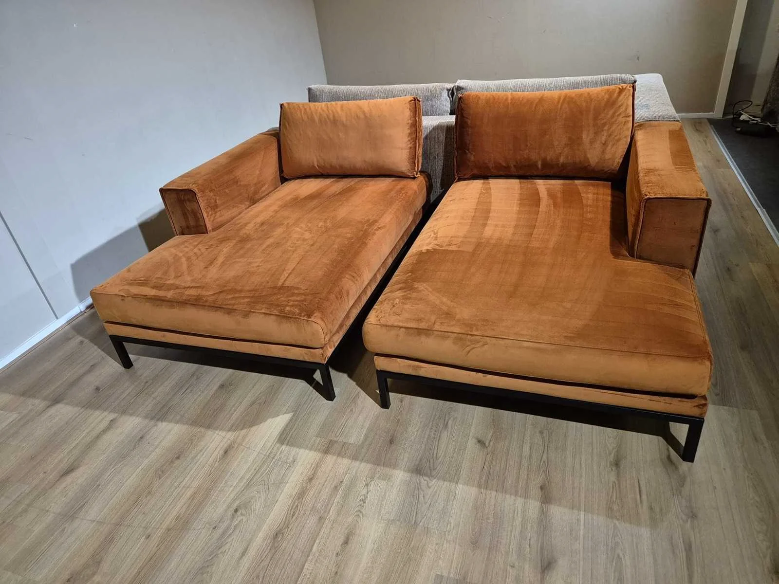 Nieuwstaat Dit betreft de 2 oranje/cognac kleurige Ottomanes. Nieuwprijs: €5500,- Merk: DMF Model: Rembrandt Product type: Ottomane Kleur: Oranje Lengte: 160cm Breedte: 110cm Hoogte: 68cm Zithoogte: 43cm Materiaal: Velours