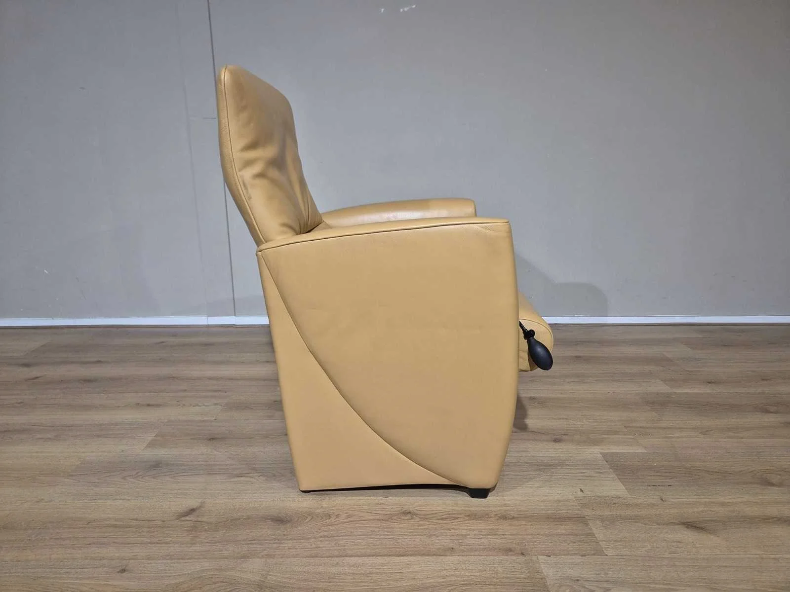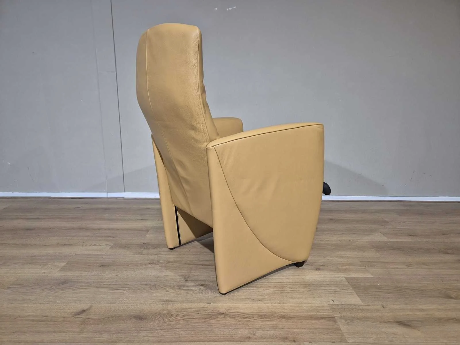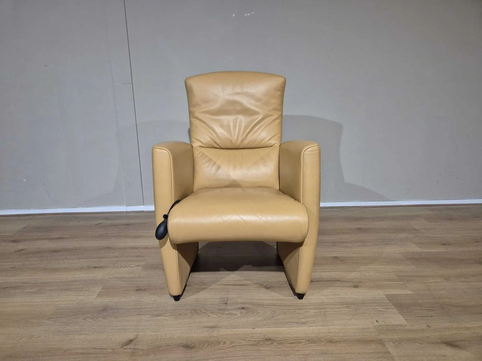 Nieuwstaat Nieuwprijs: €2745,- Merk: Jori Model: Vinci Product type: Fauteuil Kleur: Geel Lengte: 65cm Breedte: 75cm Hoogte: 98cm Zithoogte: 45cm Materiaal: Leer