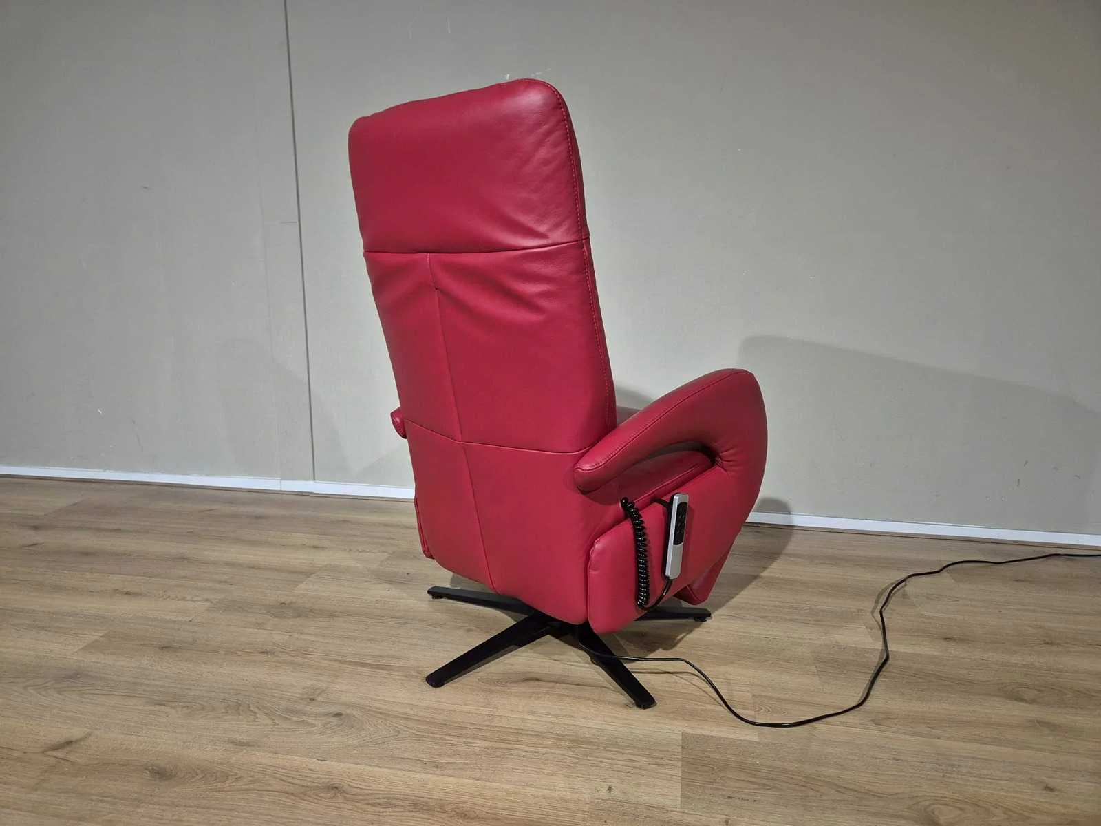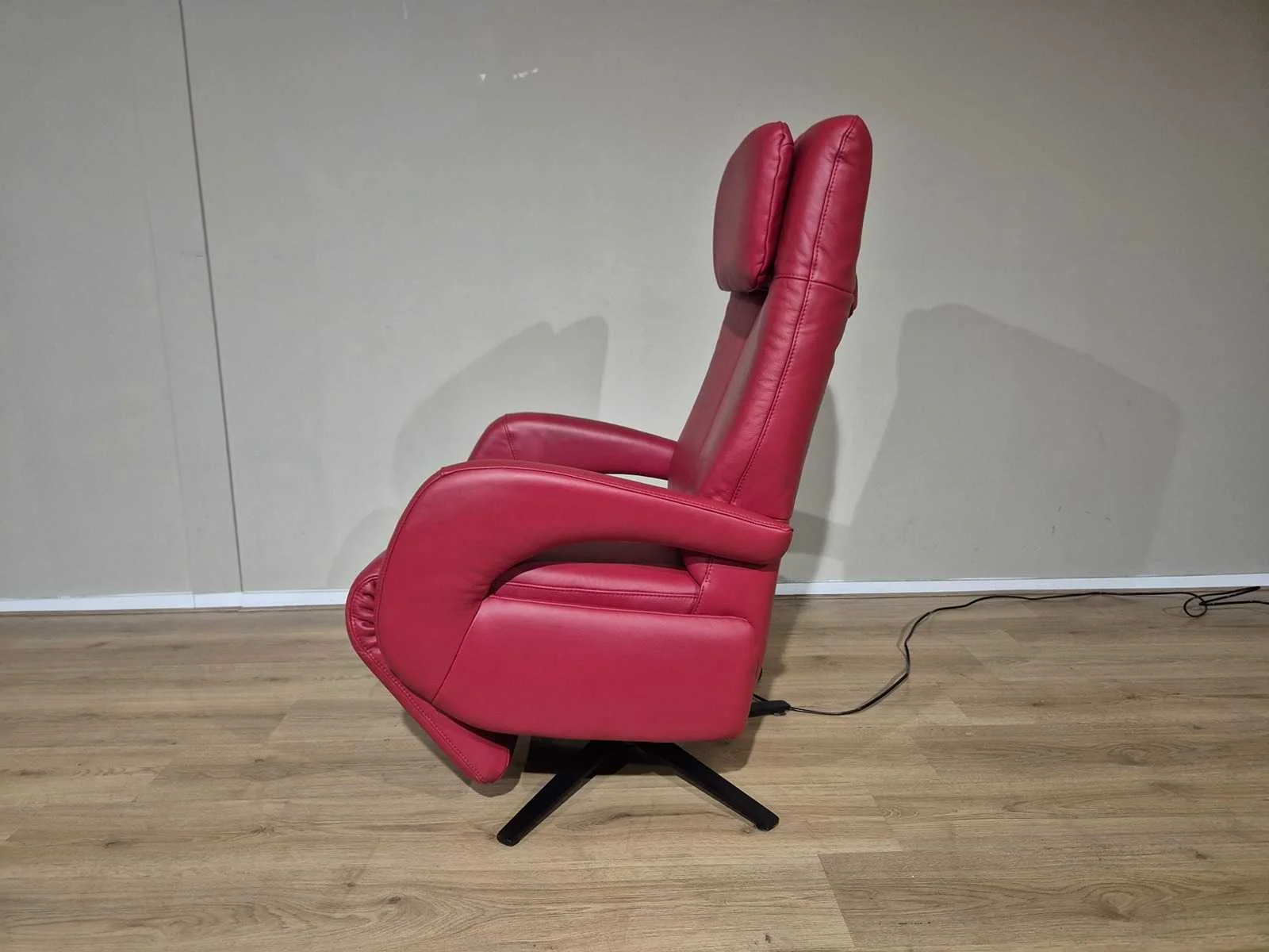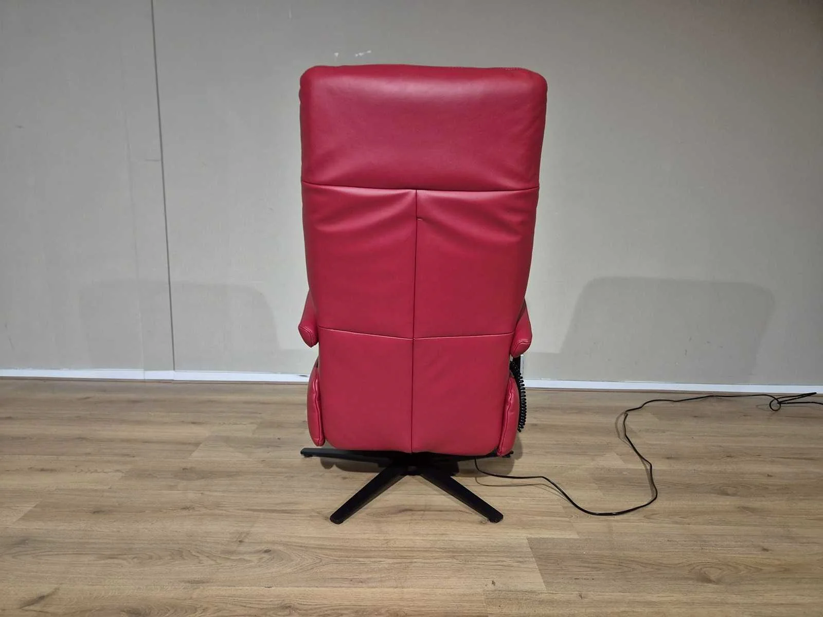 Nieuwstaat. Nieuwprijs: €4095,- Merk: Polsteria Model: Sta op Product type: Stoel Kleur: Rood Lengte: 65cm Breedte: 80cm Hoogte: 107cm Zithoogte: 45cm Materiaal: Leer