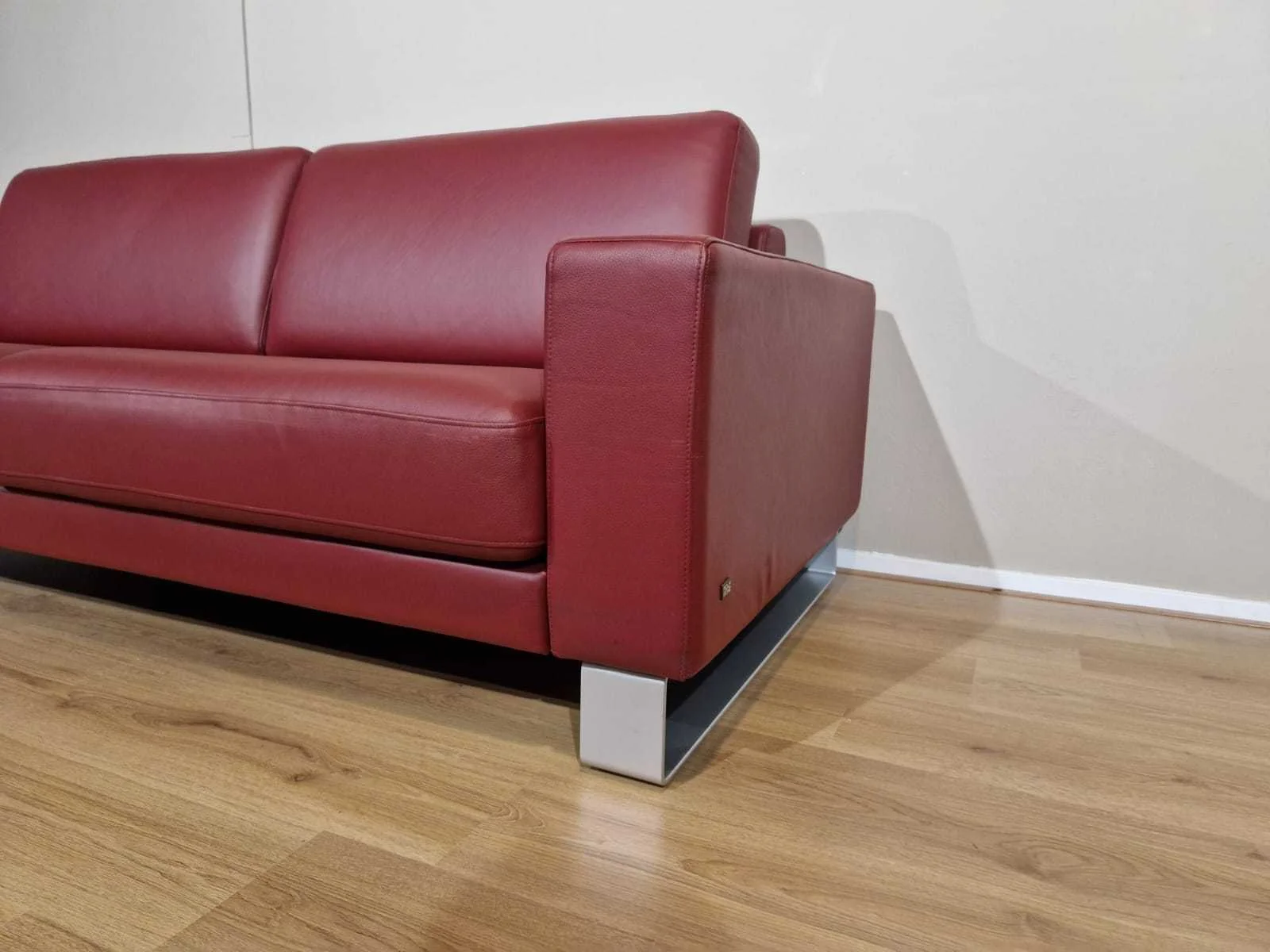Showroommodel Nieuwprijs: €9995,- Merk: Rolf Benz Model: Ego Product type: 3 Zits Bank Kleur: Rood Lengte: 220cm Breedte: 95cm Hoogte: 85cm Zithoogte: 43cm Materiaal: leer