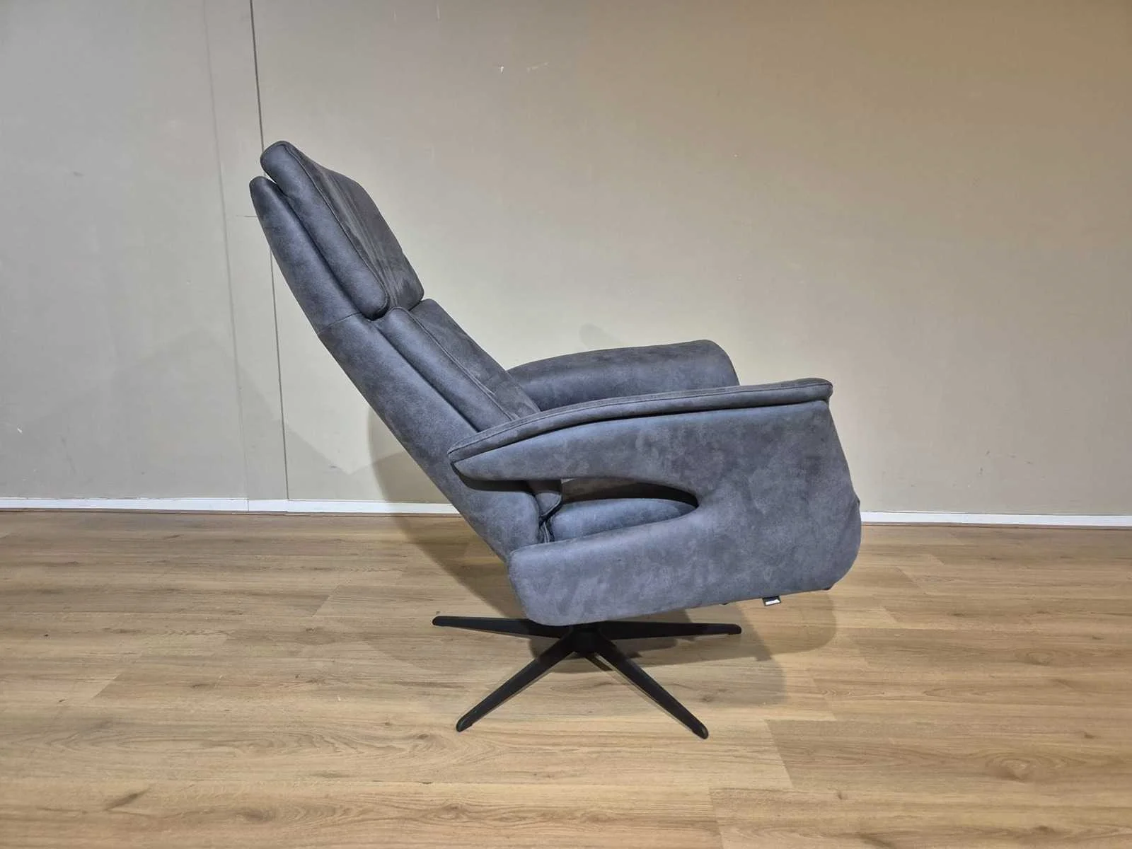 Showroommodel Nieuwprijs: €1399,- Merk: Montel Model: Victor Product type: Relaxfauteuil Kleur: Blauw-Grijs Gewicht: 30kg Lengte: 75cm Breedte: 80cm Hoogte: 108cm Zithoogte: 48cm Materiaal: Suede