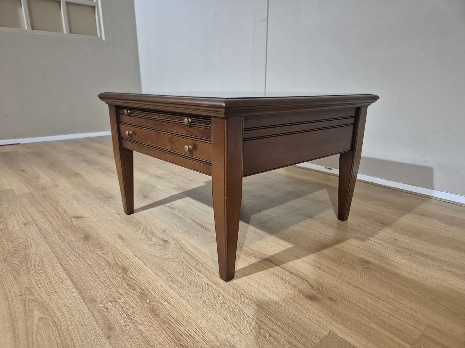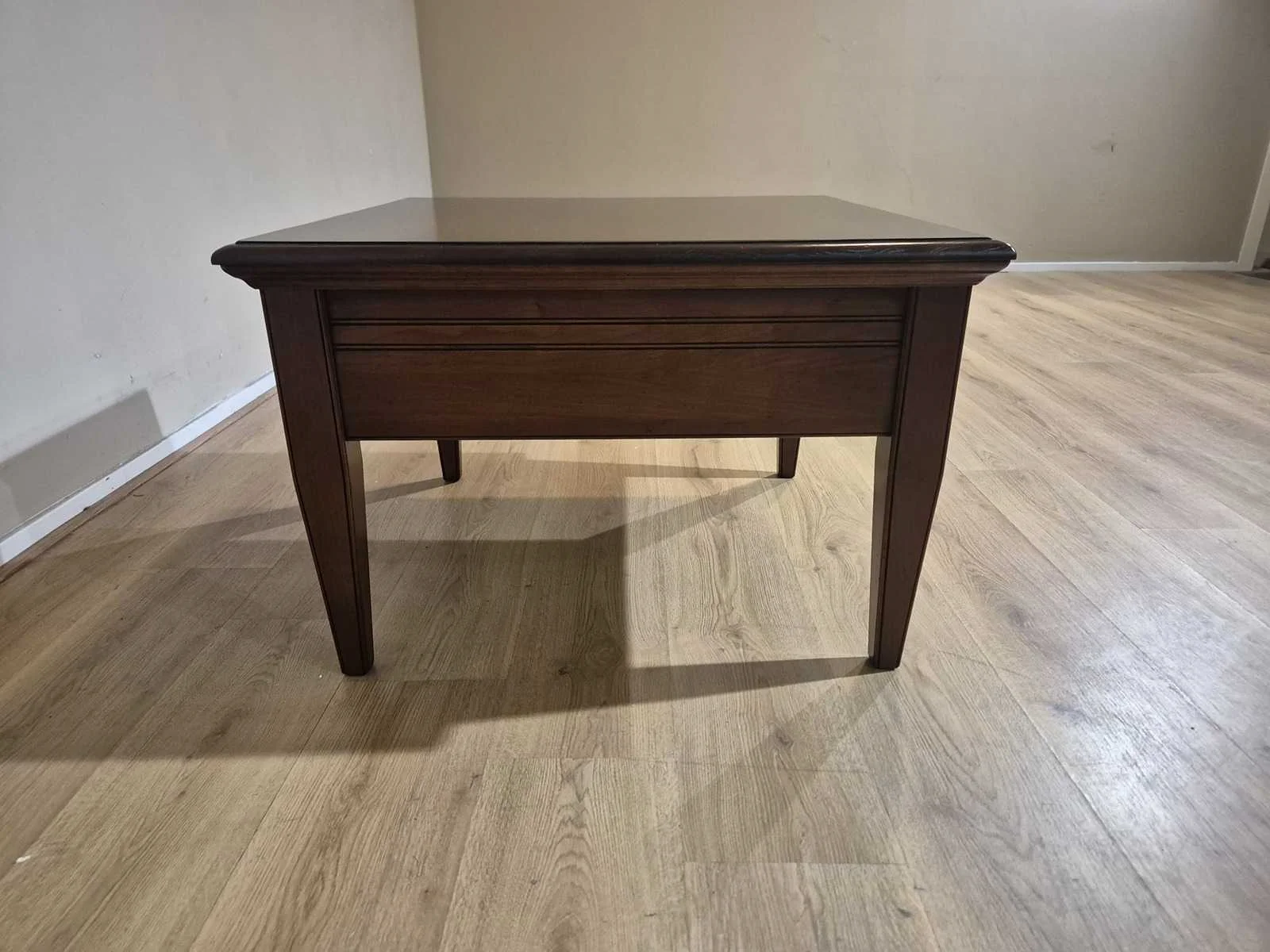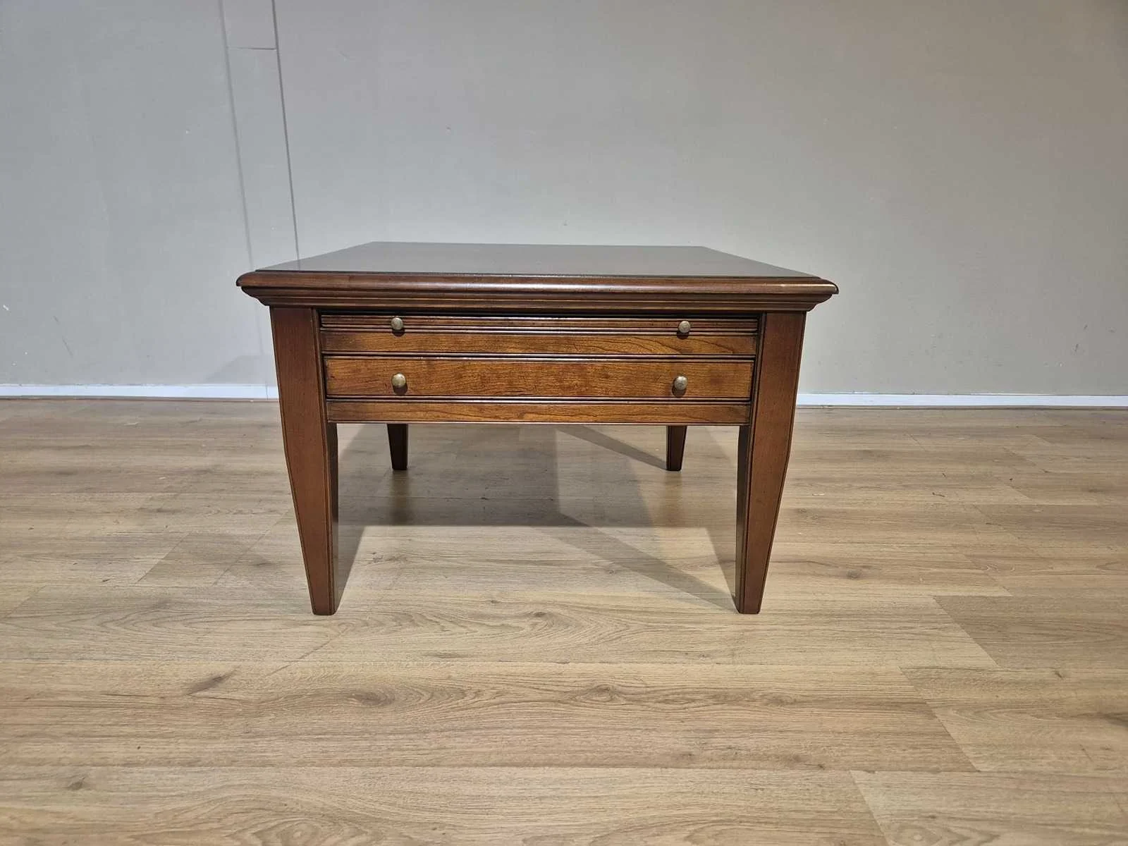 Showroommodel Nieuwprijs: €1595,- Merk: Lotus Model: Pluto 69 Product type: Bijzettafel Vorm: Vierkant Kleur: Bruin Gewicht: 20kg Lengte: 75cm Breedte: 75cm Hoogte: 50cm Materiaal: Hout
