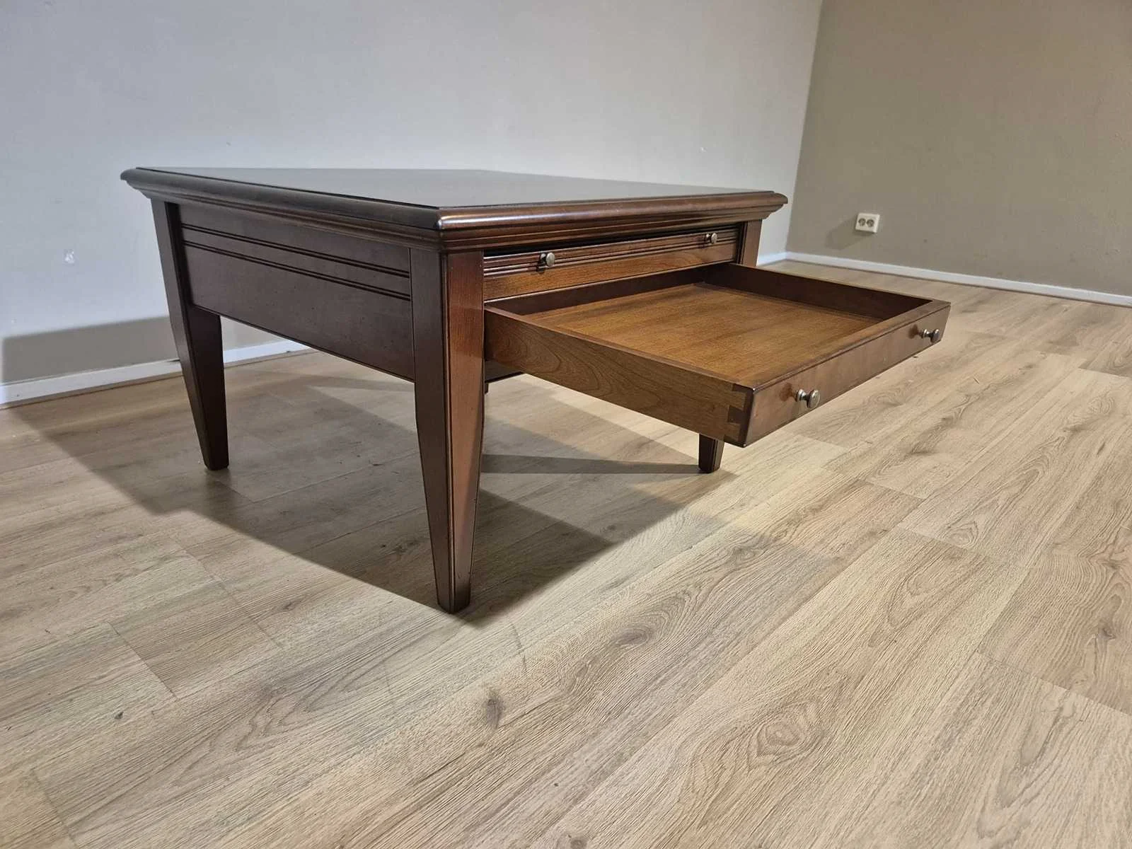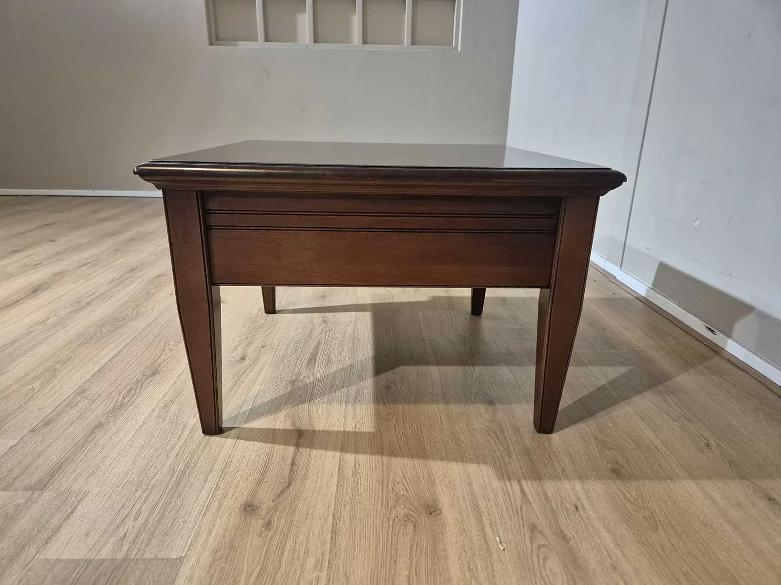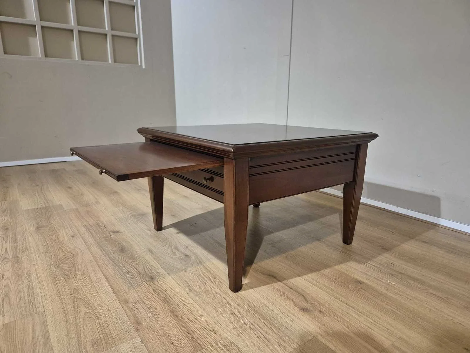 Showroommodel Nieuwprijs: €1595,- Merk: Lotus Model: Pluto 69 Product type: Bijzettafel Vorm: Vierkant Kleur: Bruin Gewicht: 20kg Lengte: 75cm Breedte: 75cm Hoogte: 50cm Materiaal: Hout
