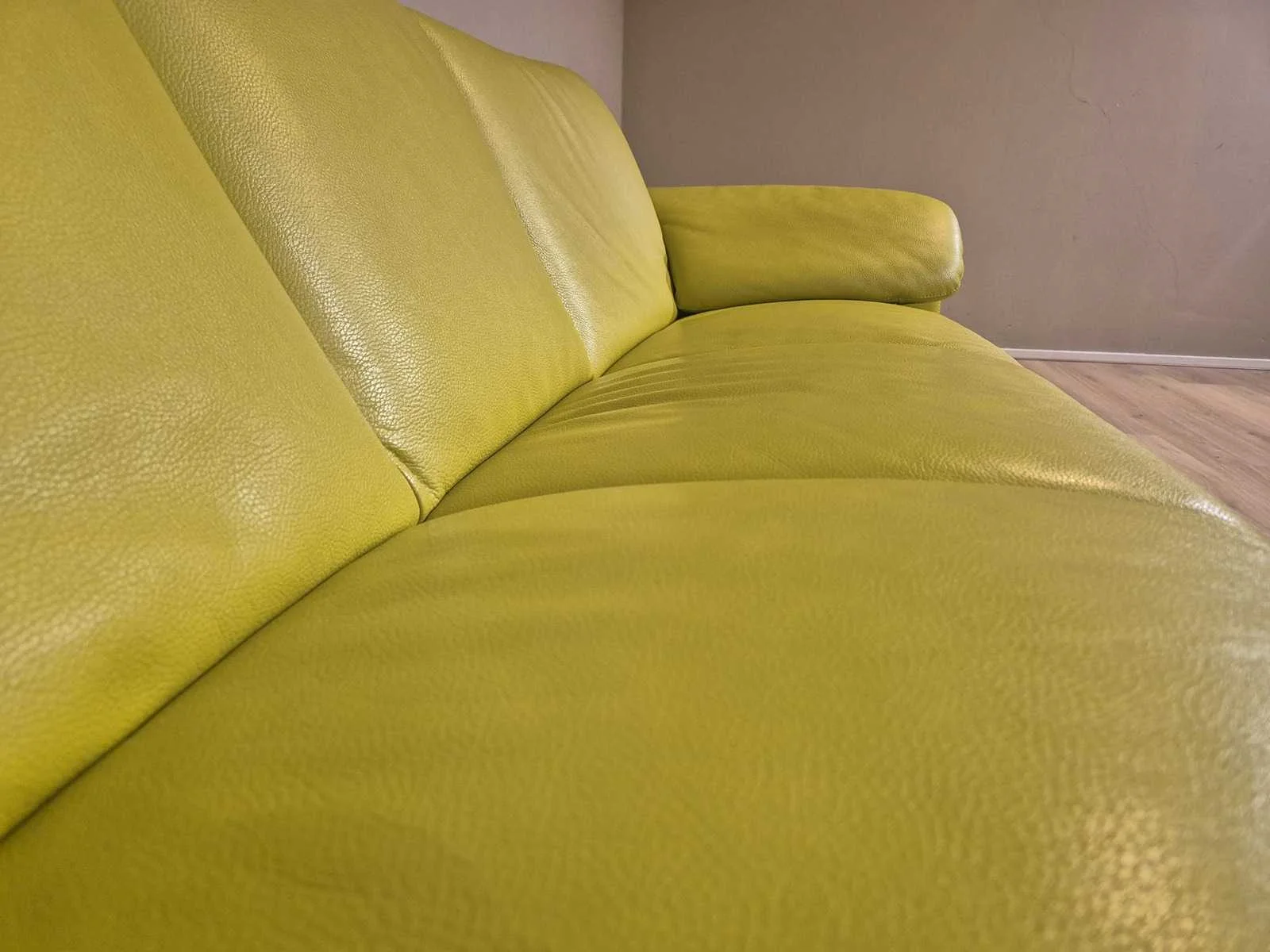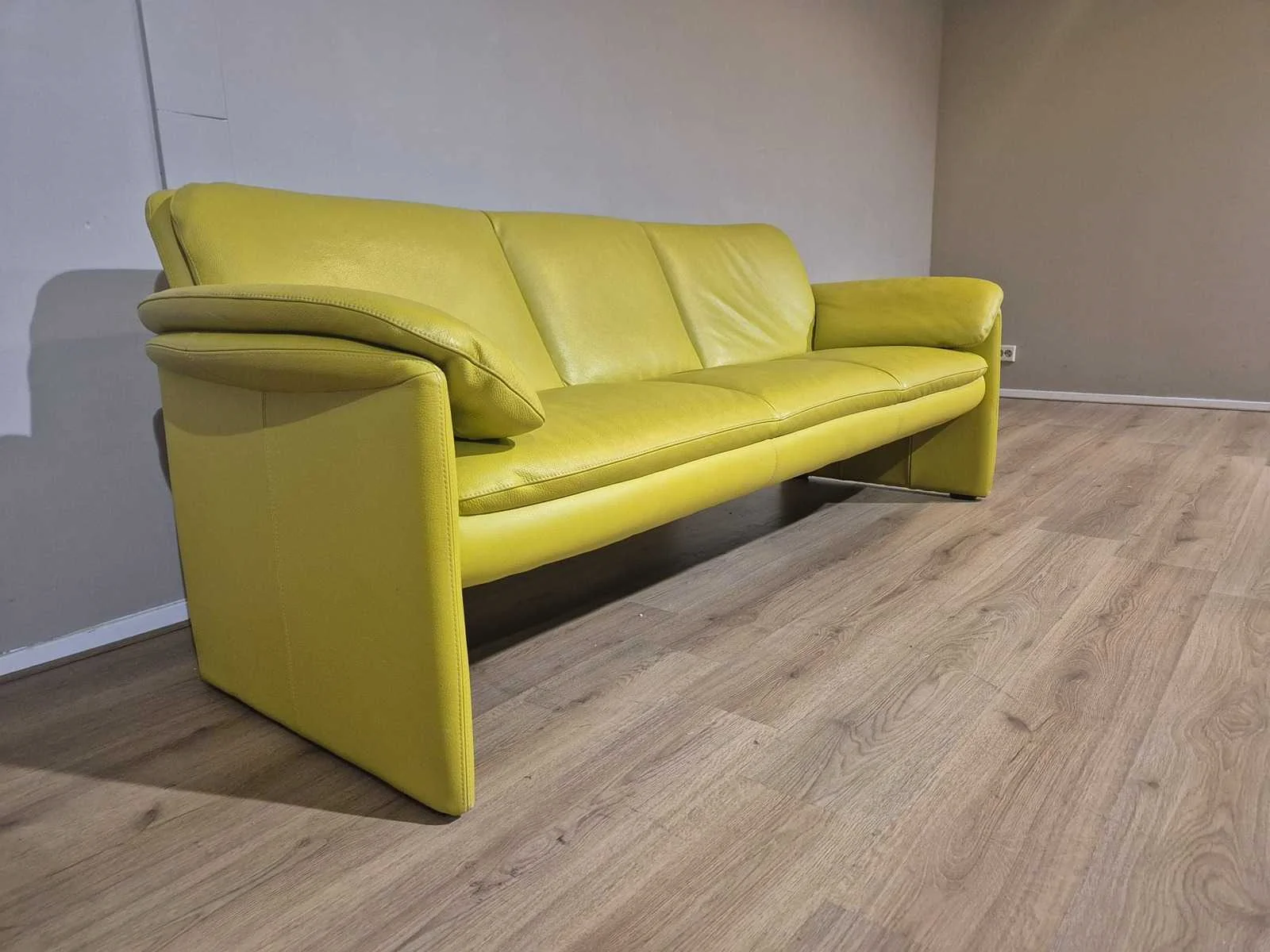 Nieuwstaat Nieuwprijs: €5500 Merk: Leolux Model: Catalpa Product type: 3 zits Bank Kleur: Lime-Geel Gewicht: 40kg Lengte: 210cm Breedte: 80cm Hoogte: 77cm Zithoogte: 43cm Materiaal: Leer