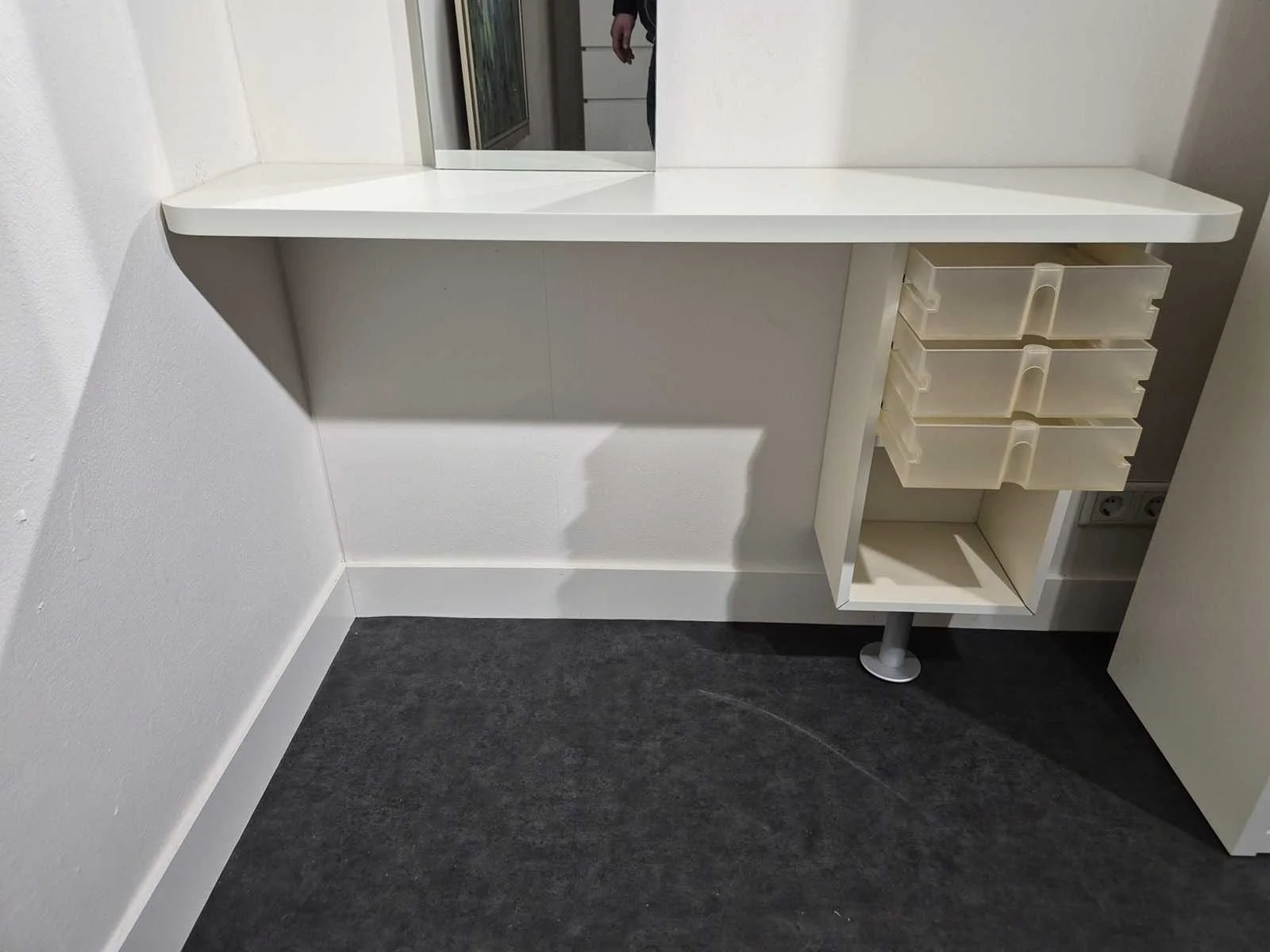 Uitstekende staat Nieuwprijs: €2340,- Merk: Interlubke Model: Kaptafel Product type: Meubel + Spiegel Kleur: Wit Gewicht: 20kg Lengte: 120cm Breedte: 30cm Hoogte: 78cm Materiaal: Hout - Glas