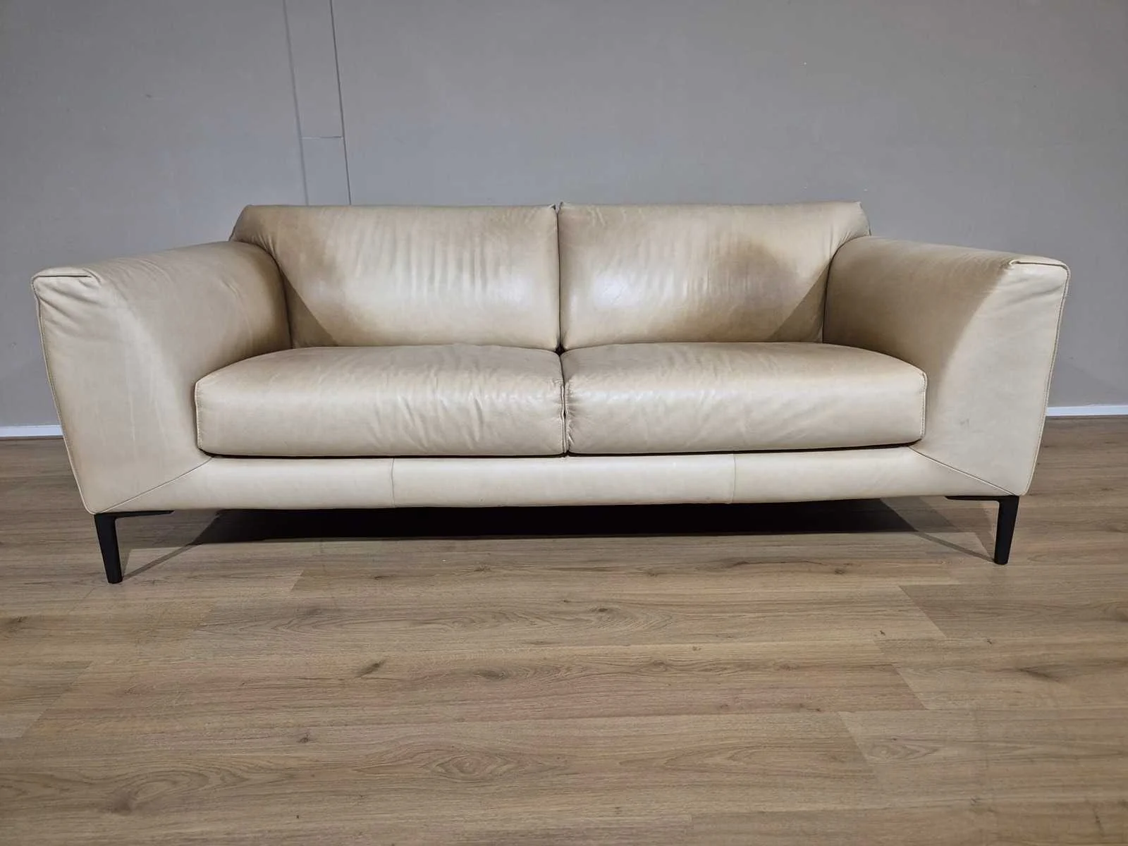 Nieuwstaat (enkel verkleurd) Nieuwprijs: €4800,- Merk: Pode Model: Fold Product type: 2,5 Zits Bank Kleur: Crème - Bruin Gewicht: 50kg Lengte: 198cm Breedte: 95cm Hoogte: 73cm Zithoogte: 44cm Materiaal: Leer