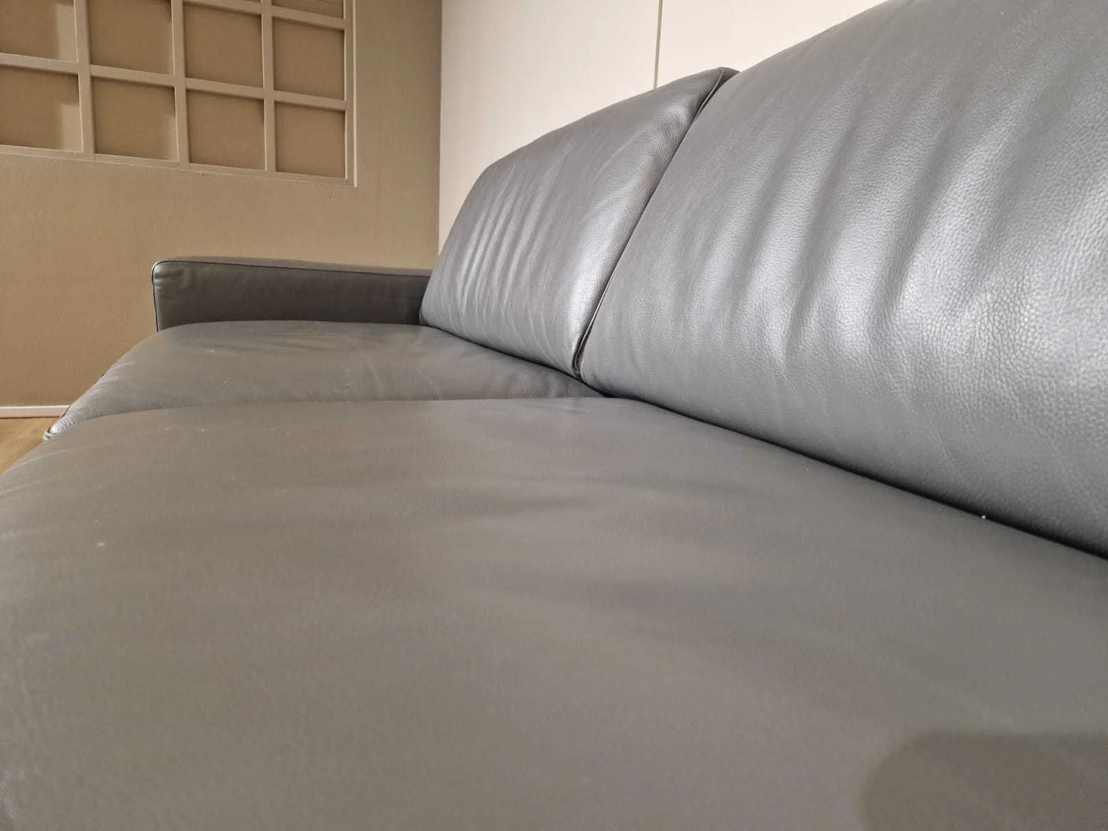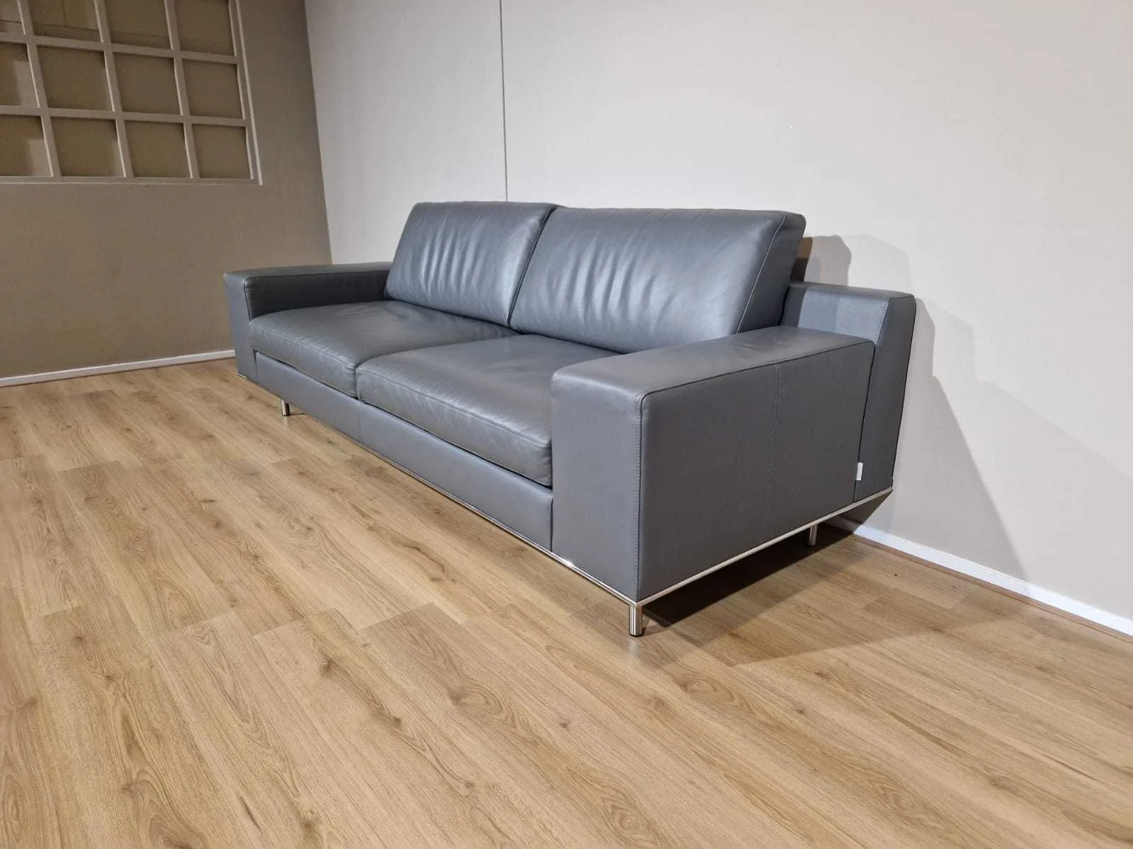Nieuwstaat Nieuwprijs: €5500,- Merk: Musa Model: Italia Product type: 3 zits Bank Kleur: Grijs Gewicht: 40kg Lengte: 255cm Breedte: 100cm Hoogte: 92cm Zithoogte: 48cm Materiaal: Leer