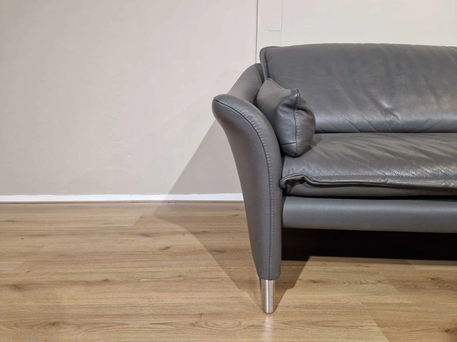 Nieuwstaat Nieuwprijs: €5000,- Merk: Leolux Model: Enora Product type: 3 zits Bank Kleur: Grijs Lengte: 225cm Breedte: 95cm Hoogte: 80cm Zithoogte: 45cm Materiaal: Leer