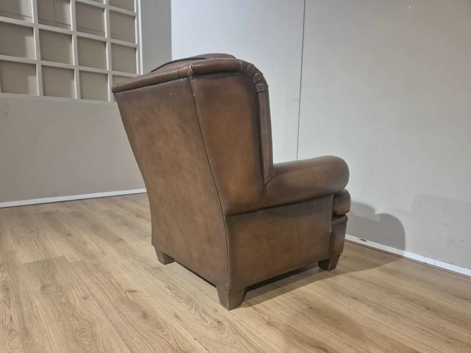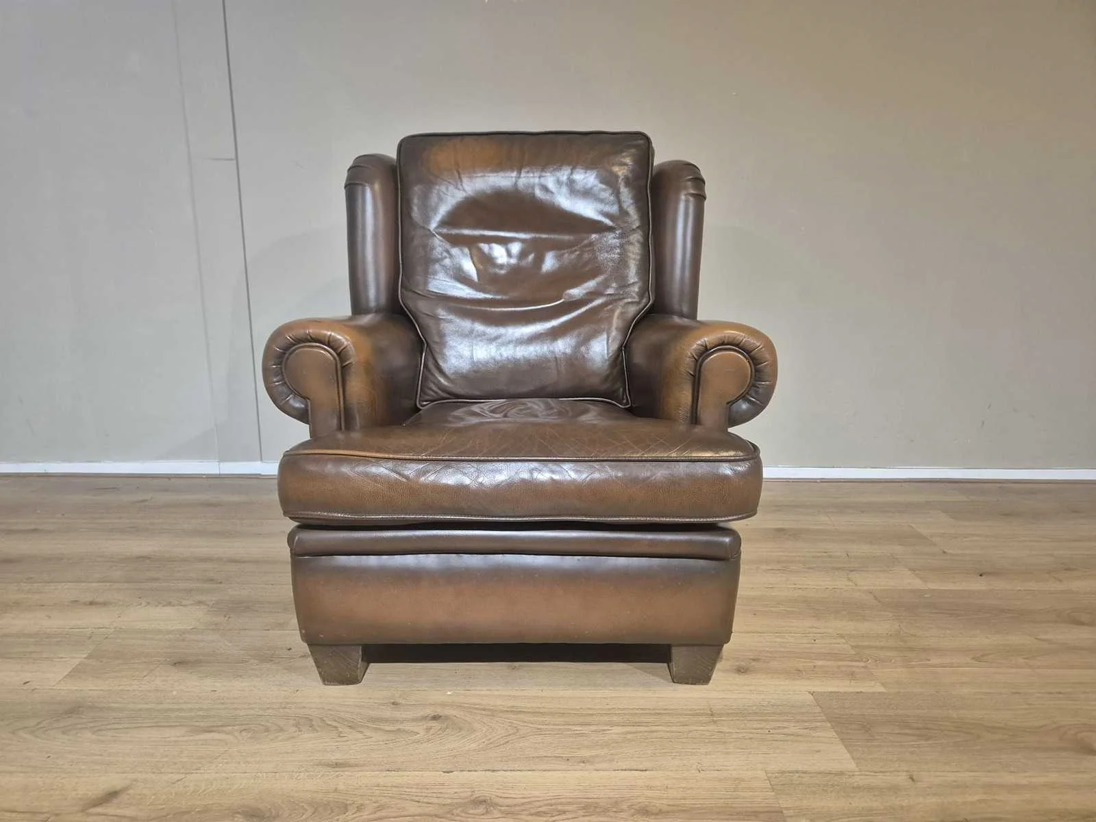 Uitstekende staat Merk: Schapenleer Model: Club Product type: Fauteuil Kleur: Bruin Gewicht: 40kg Lengte: 90cm Breedte: 95cm Hoogte: 95cm Zithoogte: 44cm Materiaal: Leer