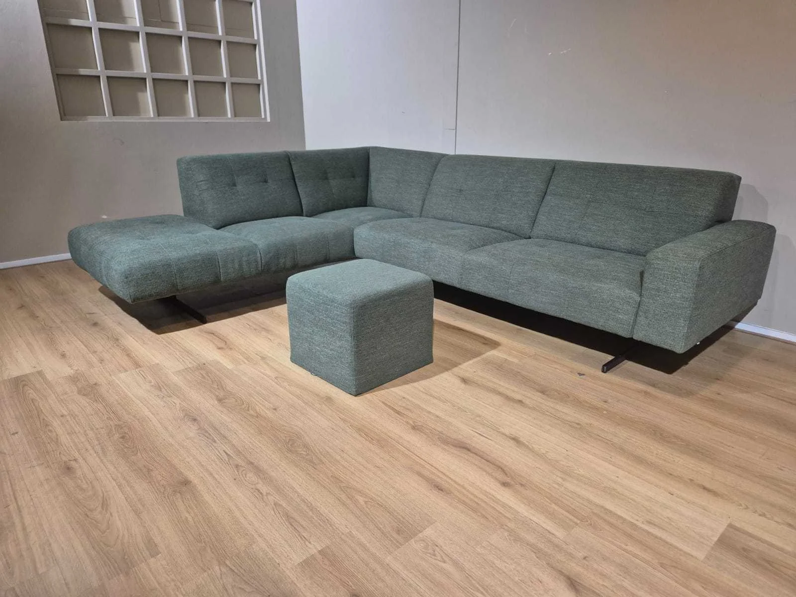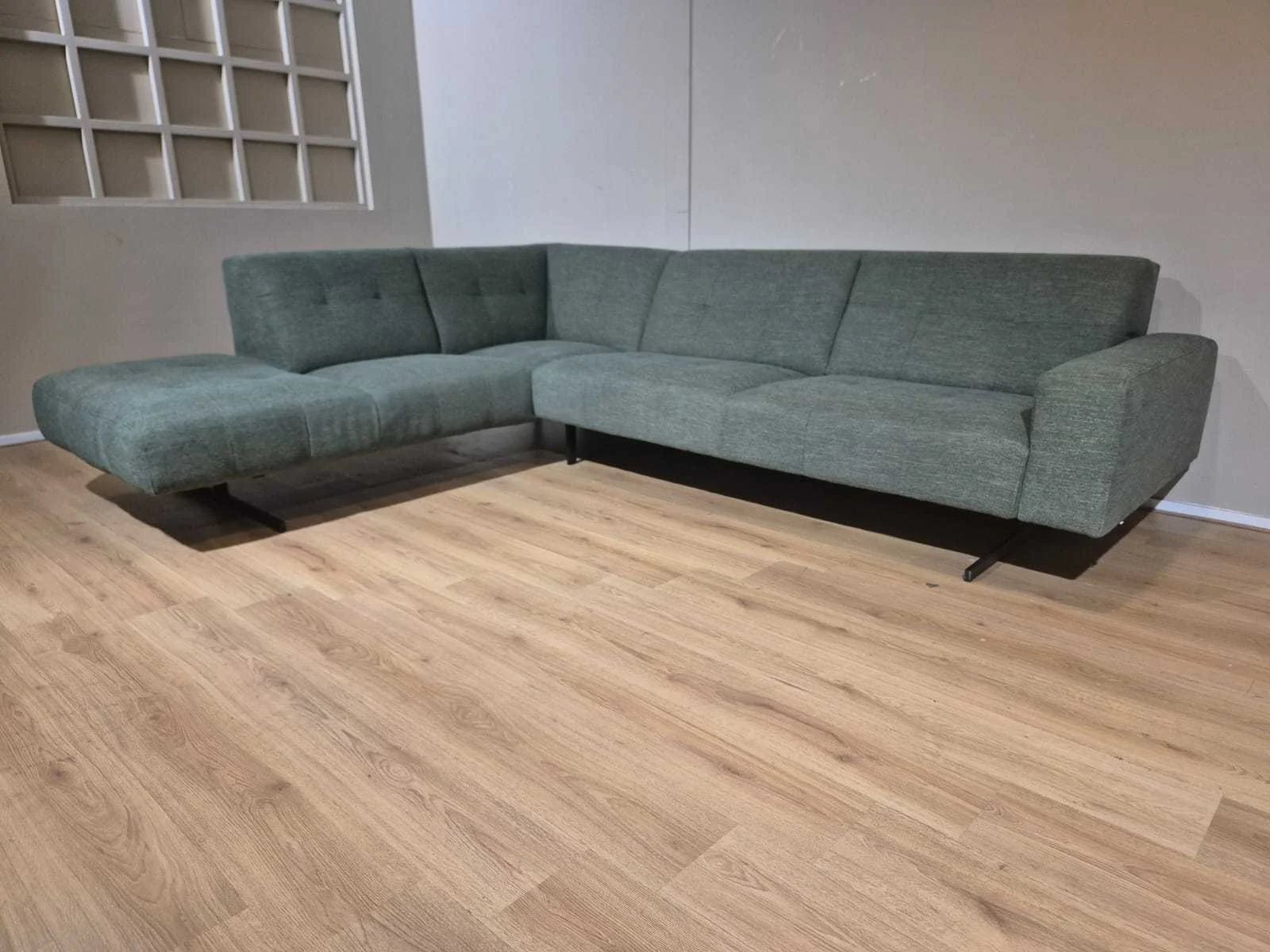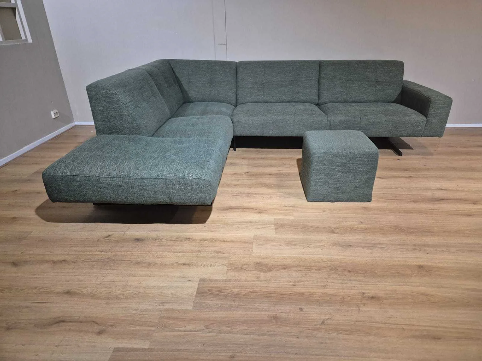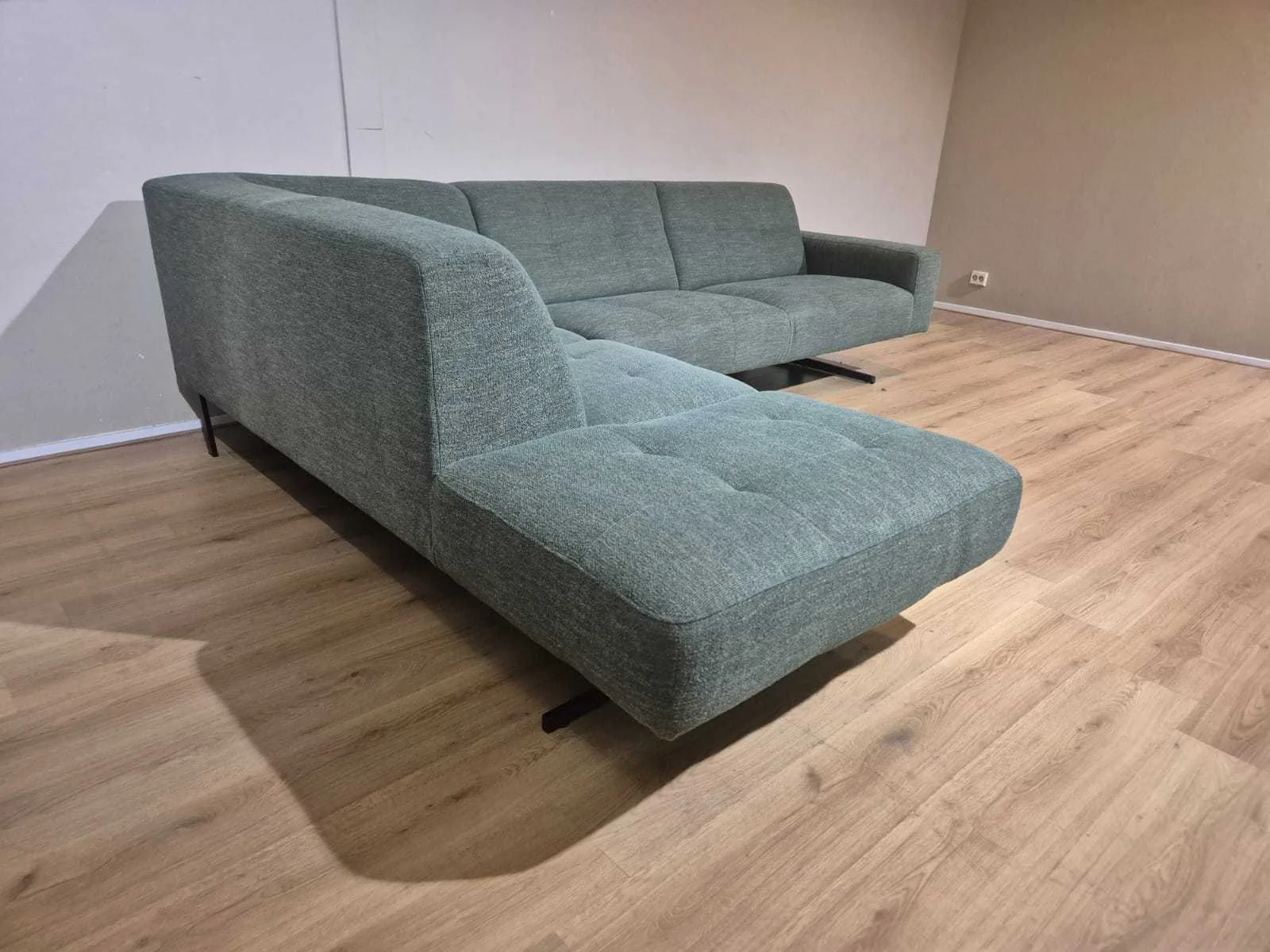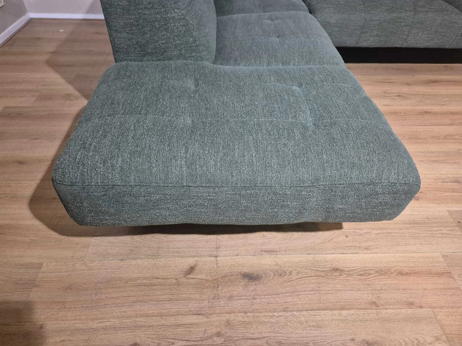 Uitstekende staat Merk: Montel Model: Traffic Product type: Hoekbank Kleur: Groen Gewicht: 40kg Lengte: 290cm Breedte: 230cm Hoogte: 80cm Zithoogte: 44cm Materiaal: Stof