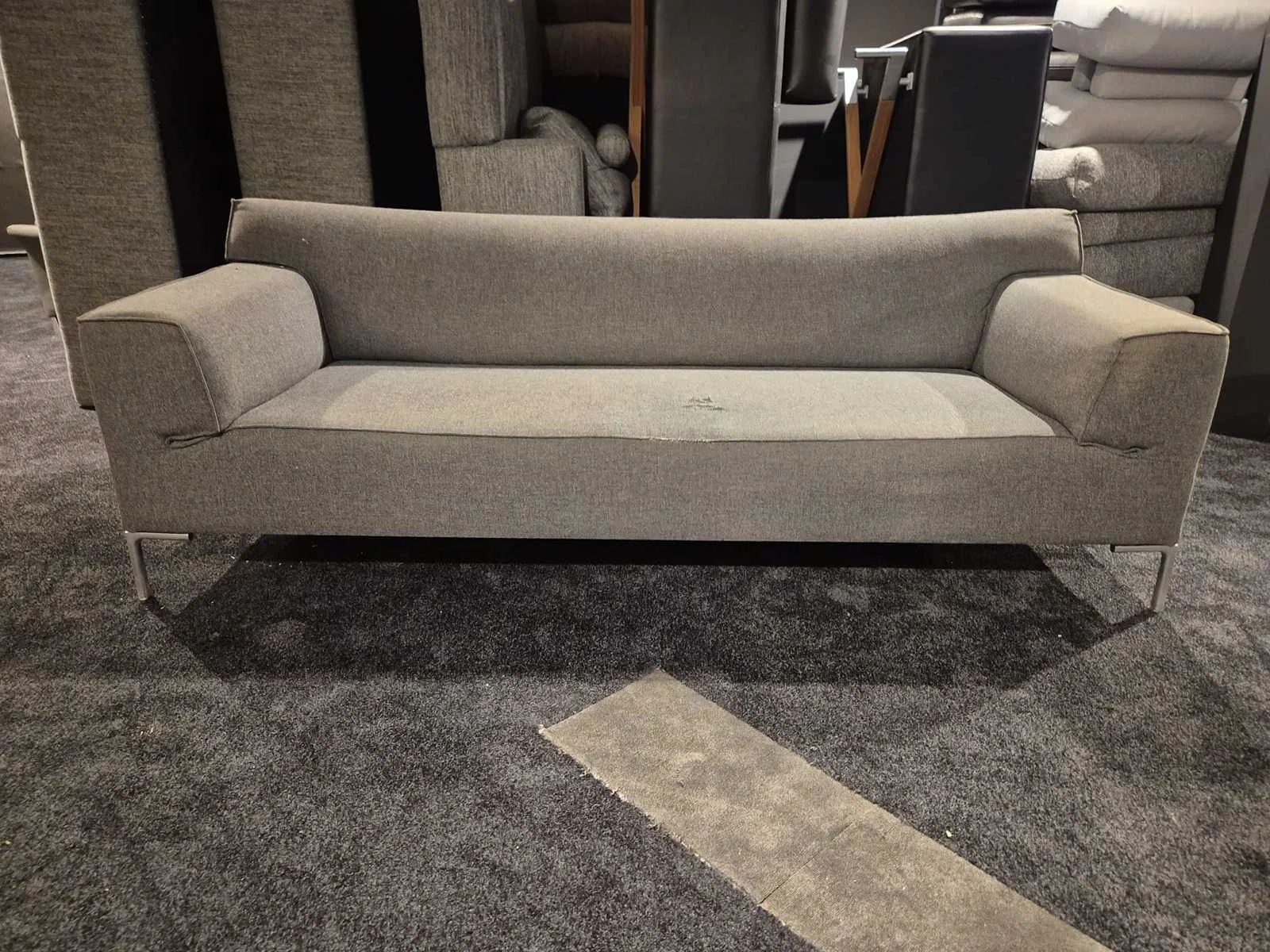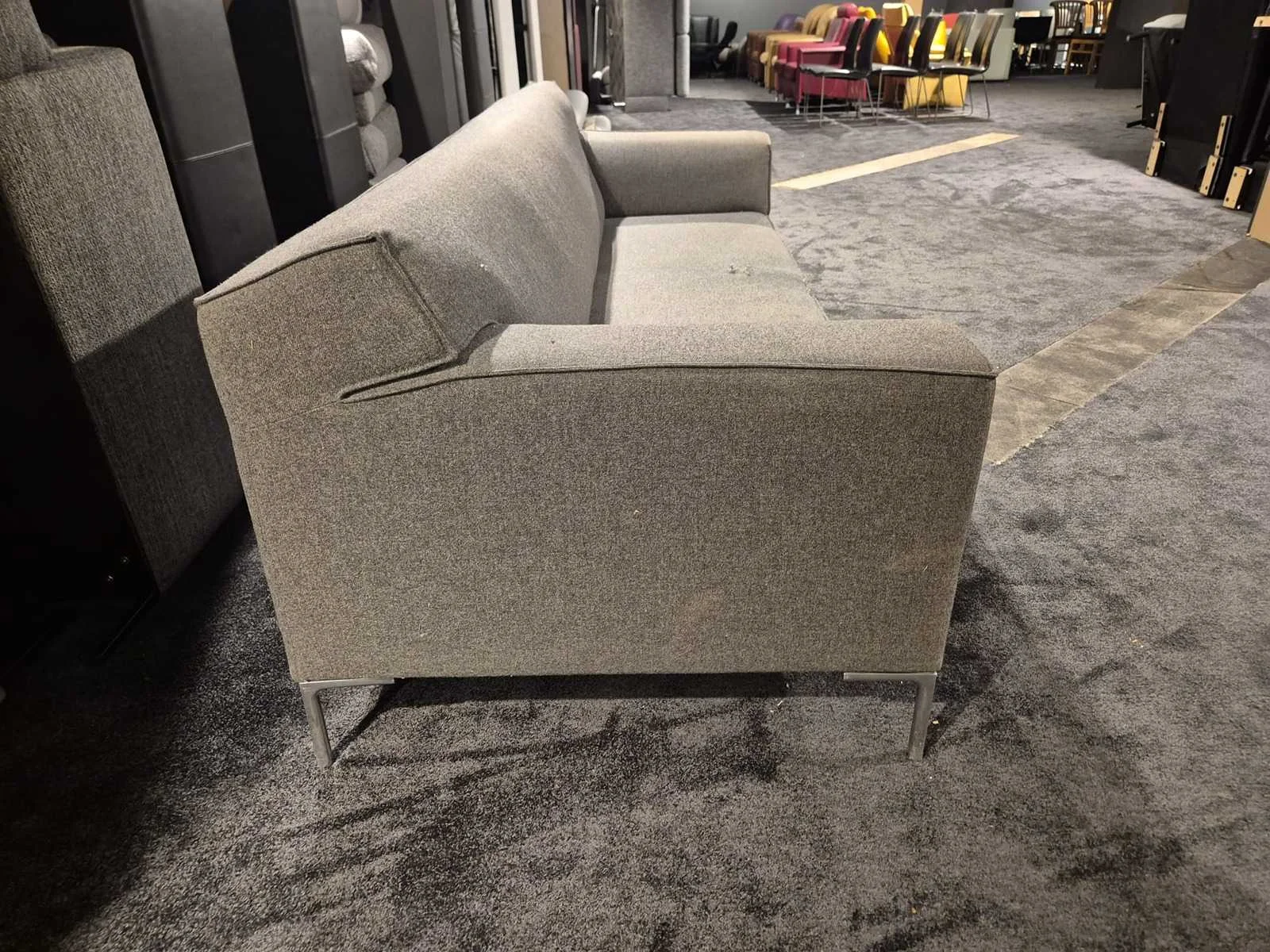 Bank voor herstofferen Merk: Design on Stock Model: Bloq Product type: 3 Zits Bank Kleur: Grijs Gewicht: 50kg Lengte: 232cm Breedte: 95cm Hoogte: 82cm Zithoogte: 41cm Diepte: 56cm Materiaal: Stof