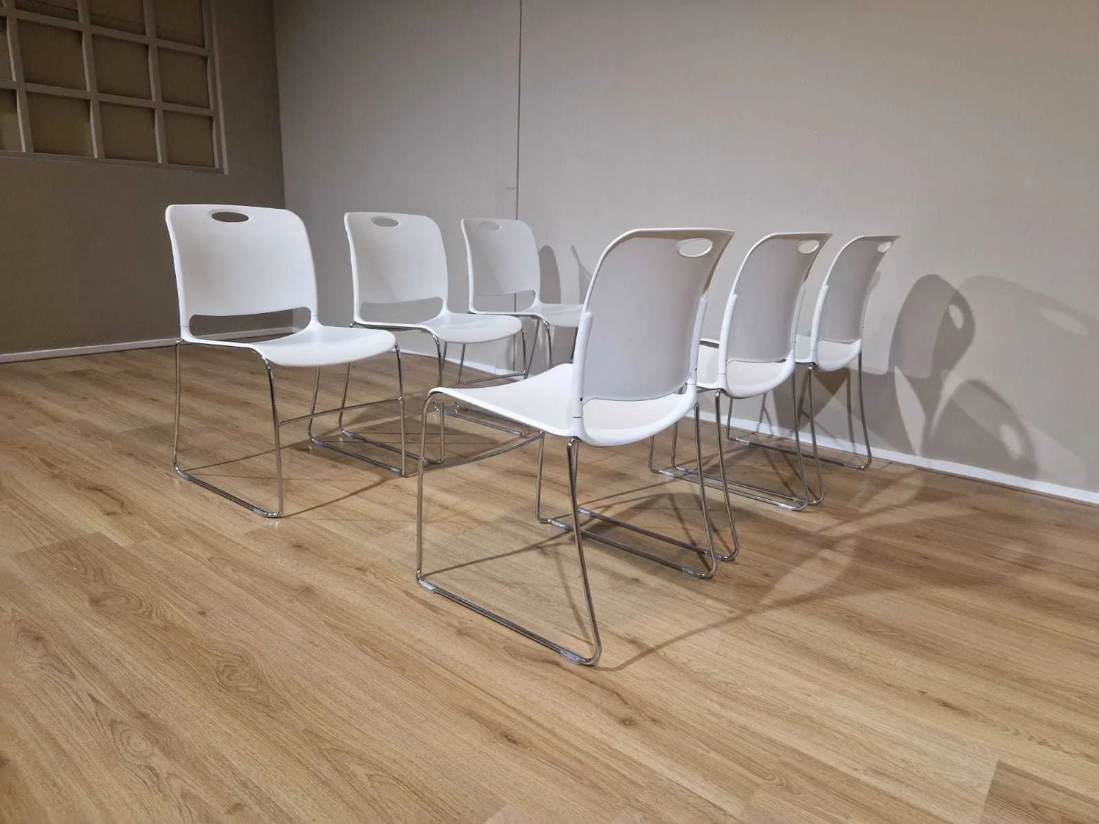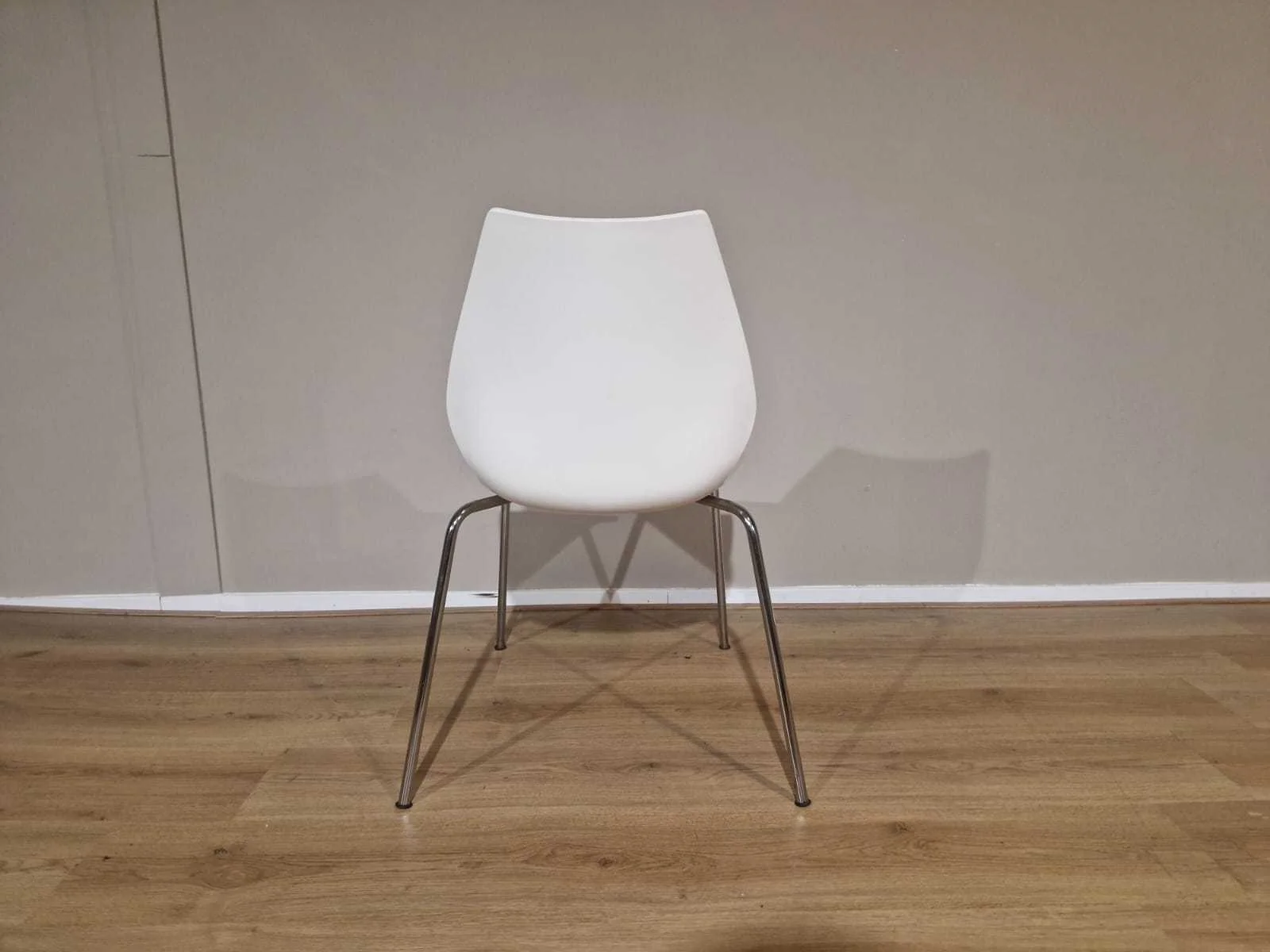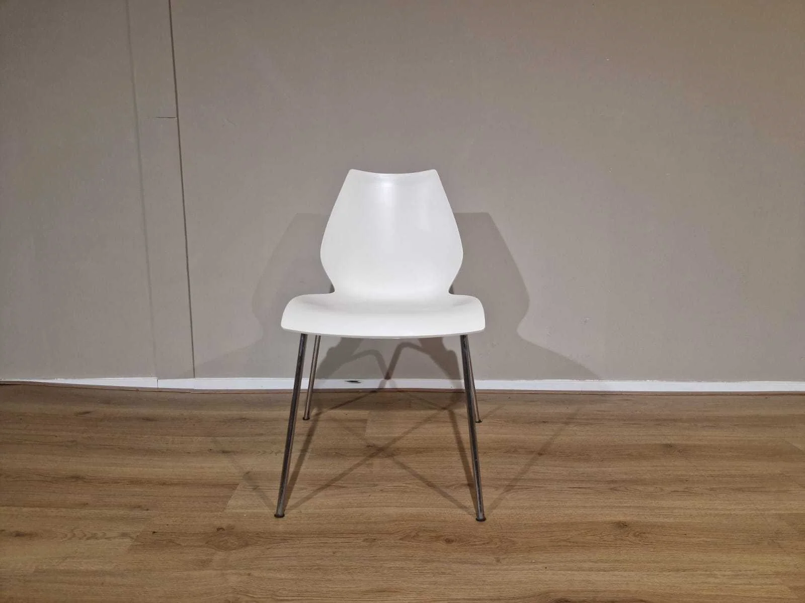 Vertonen gebruikersporen Merk: Kartell Model: Maui - Vico Magistretti Product type: Eetkamerstoelen Kleur: Wit Lengte: 51cm Breedte: 55cm Hoogte: 77cm Zithoogte: 44cm Materiaal: Hout Diepte: 41cm