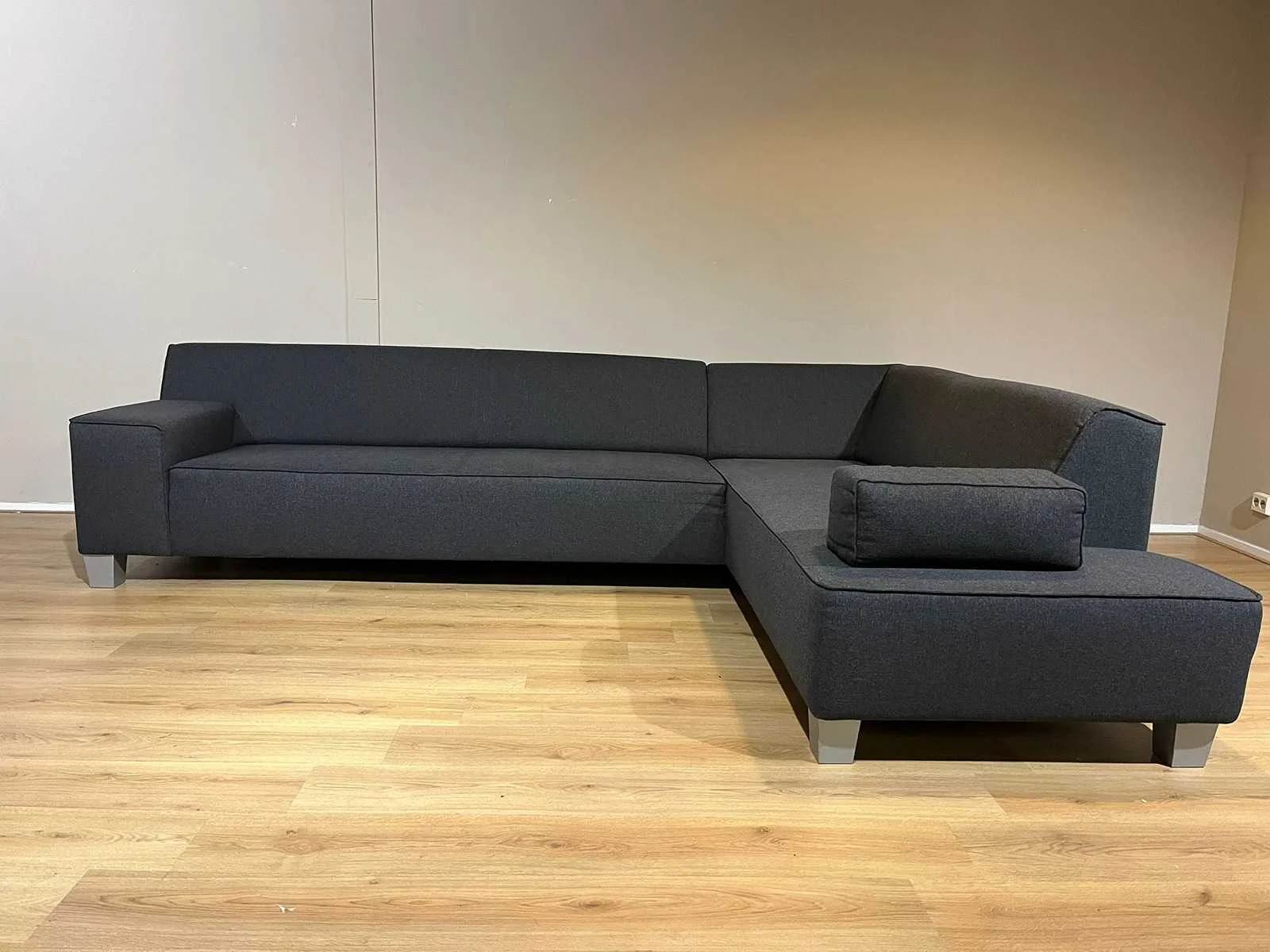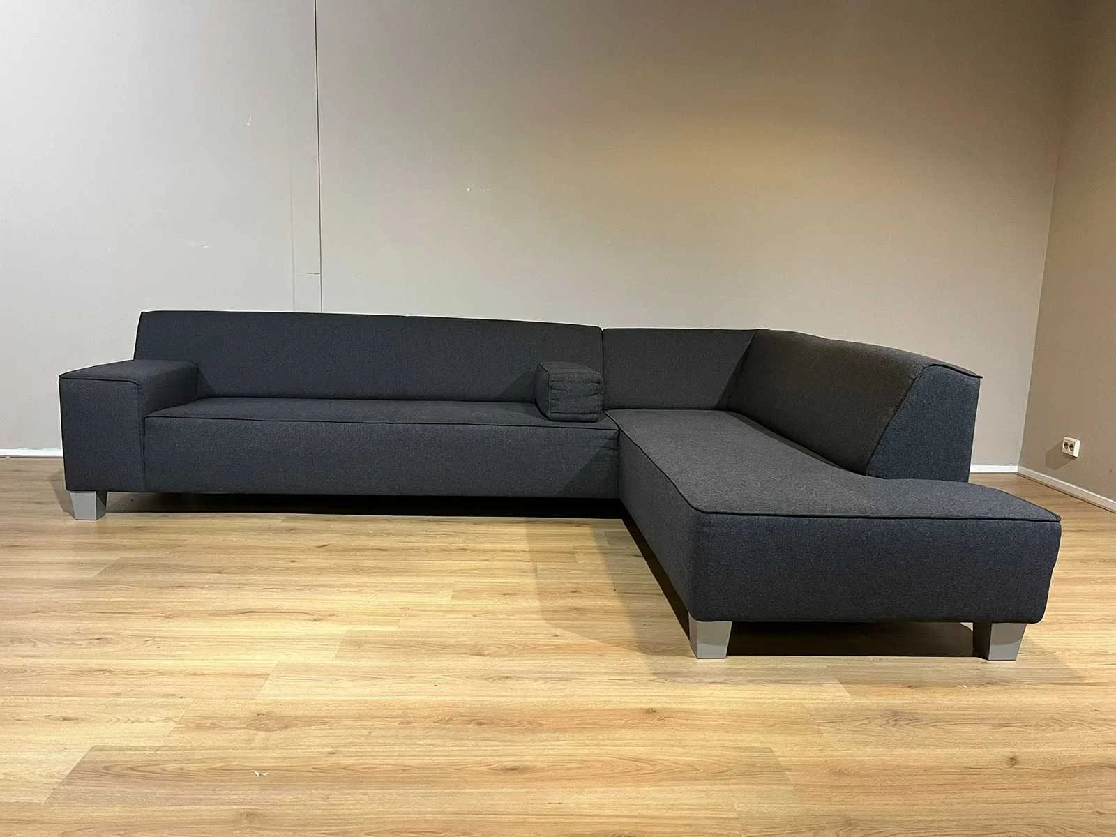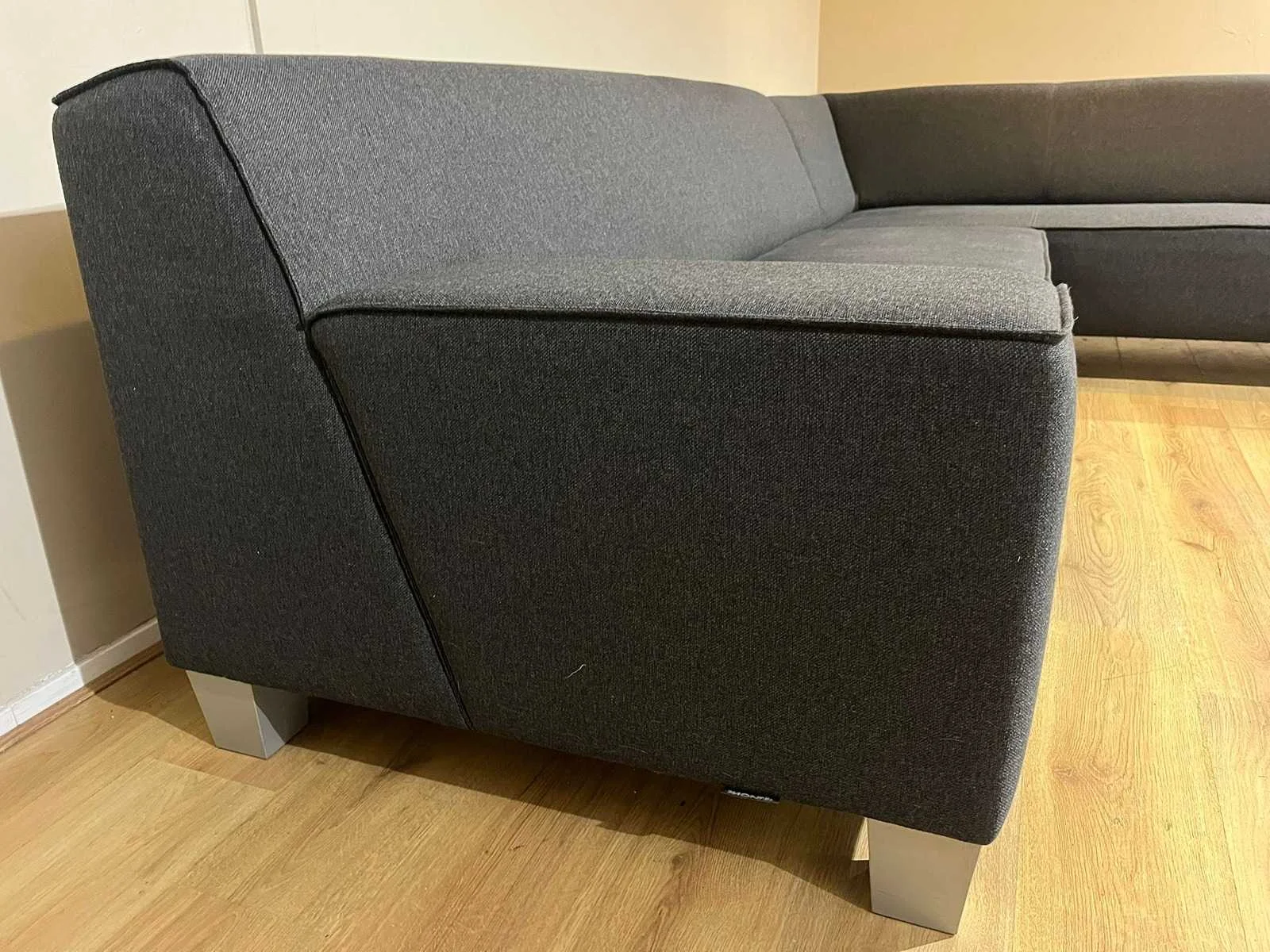 Uitstekende staat Merk: Montel Model: Strike Product type: Hoekbank Kleur: Antraciet Gewicht: 40kg Lengte: 300cm Breedte: 215cm Hoogte: 73cm Zithoogte: 42cm Diepte: 59cm