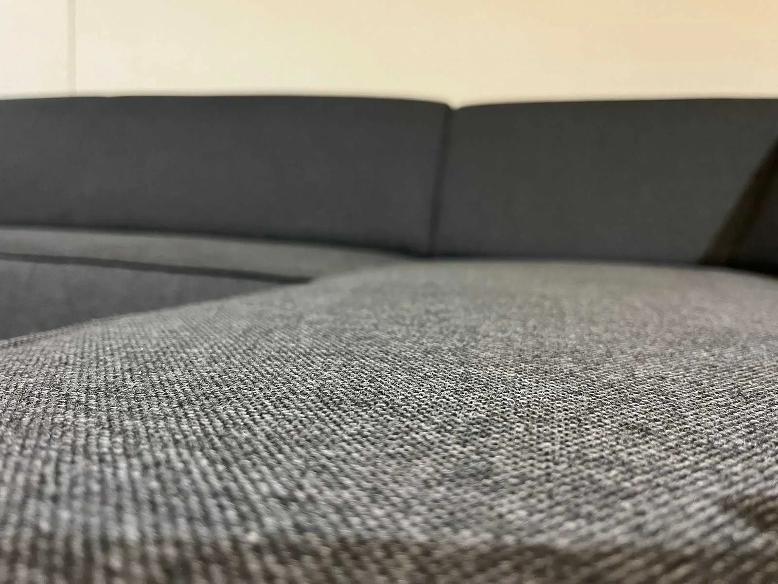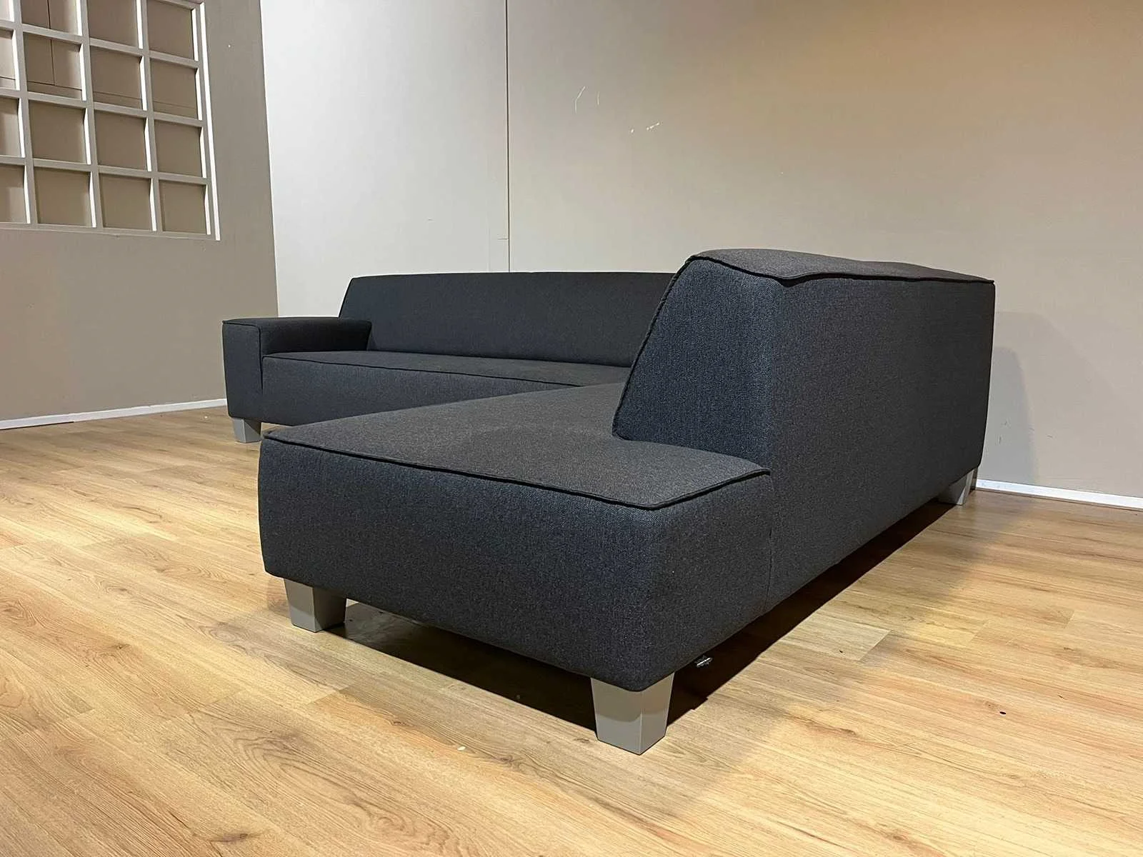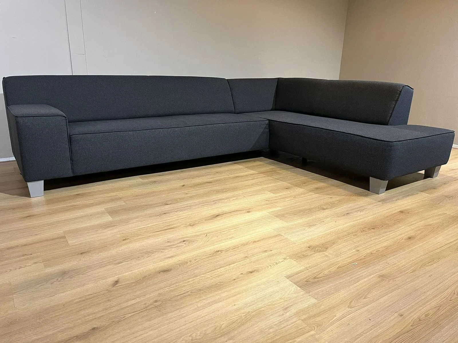 Uitstekende staat Merk: Montel Model: Strike Product type: Hoekbank Kleur: Antraciet Gewicht: 40kg Lengte: 300cm Breedte: 215cm Hoogte: 73cm Zithoogte: 42cm Diepte: 59cm