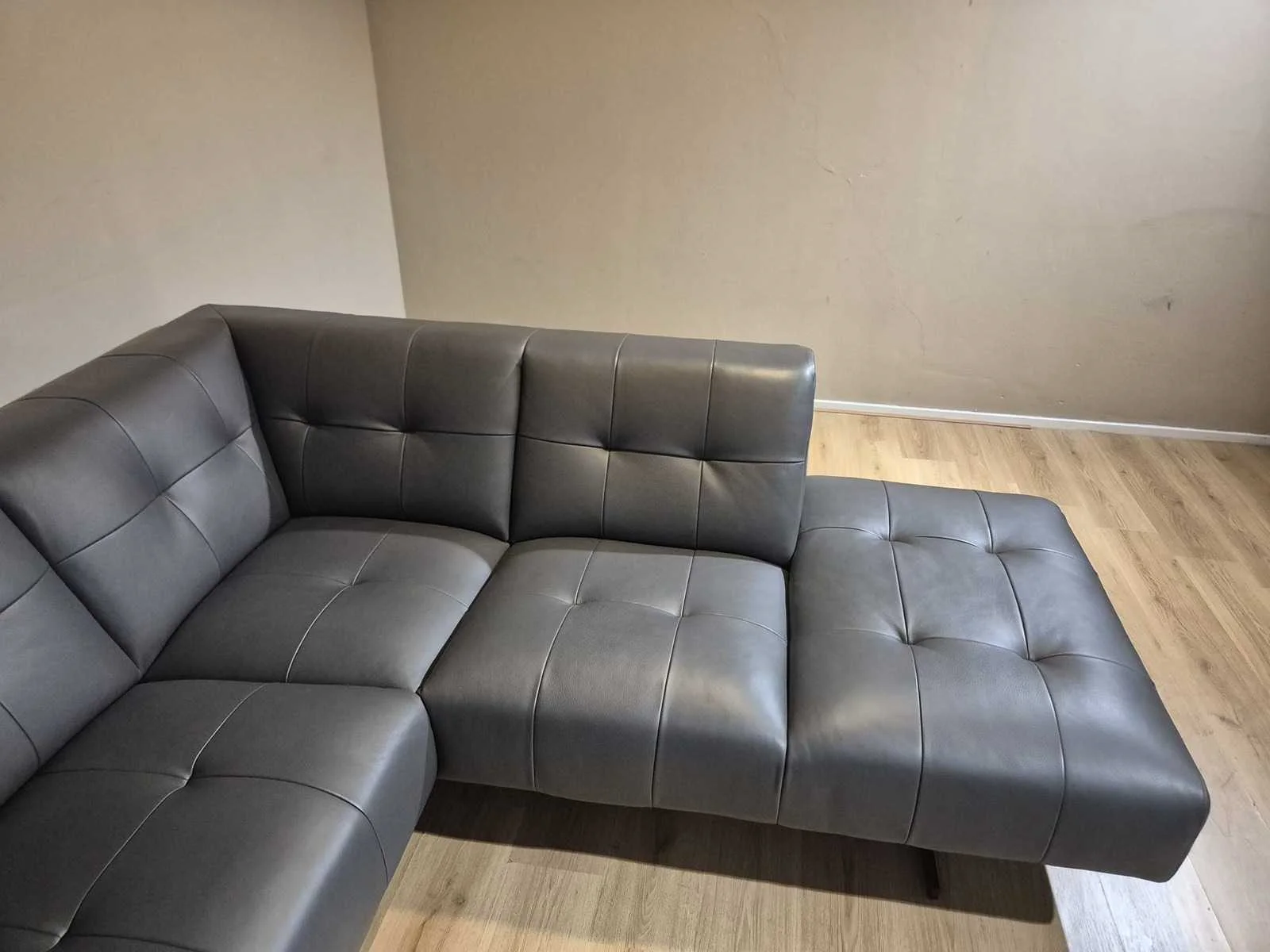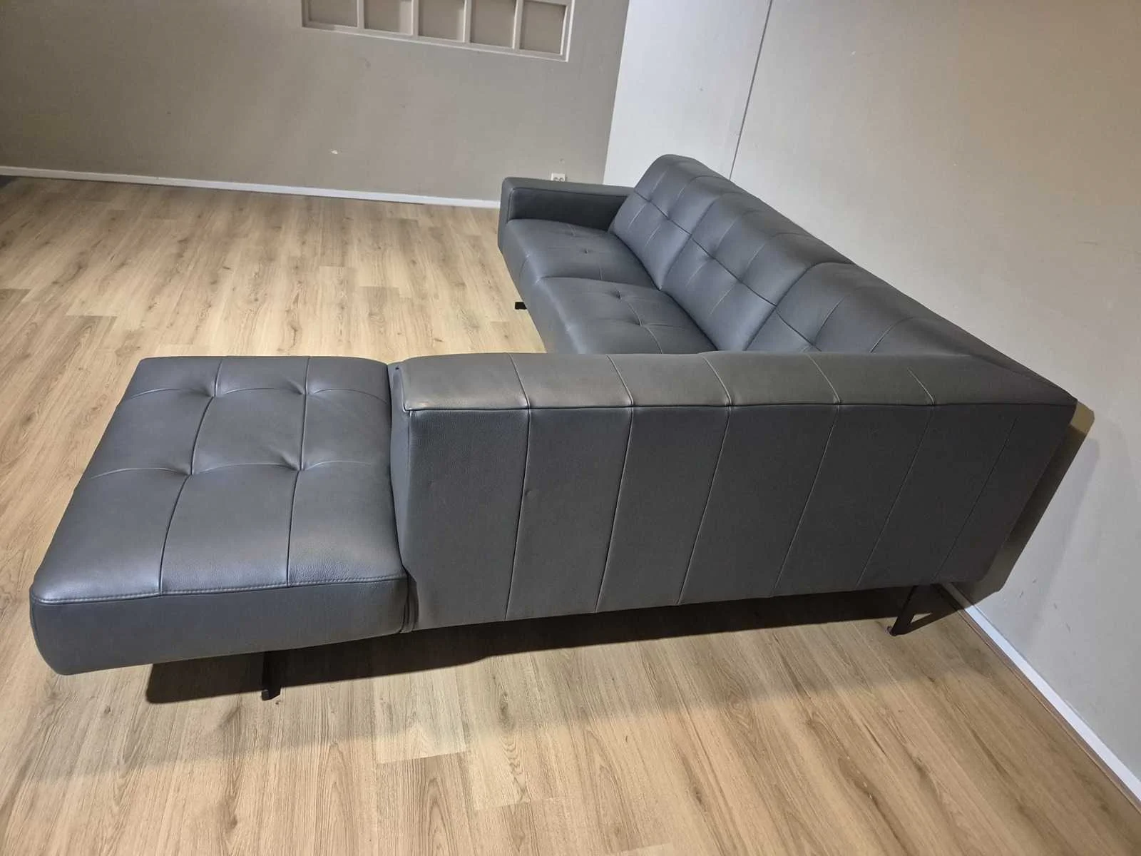 Showroommodel Nieuwprijs: €4549,- Merk: Montel Model: Traffic Product type: Hoekbank Kleur: Antraciet Gewicht: 40kg Lengte: 270cm Breedte: 230cm Hoogte: 80cm Zithoogte: 46cm Diepte: 56cm Materiaal: Leer