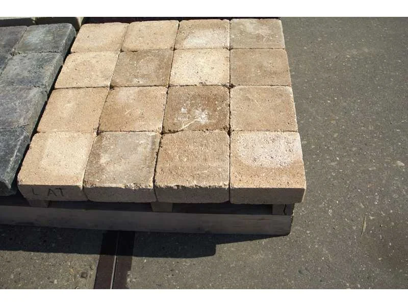 Afmetingen circa 15 cm x 15 cm x 6 cm. Aantal pallets: 6. Deze kavel kan op verzoek bezorgd worden. De kosten bedragen voor dit kavel €110,00 exclusief BTW. Wilt u meerdere kavels laten bezorgen? Vanaf het tweede tot en met de vijfde kavel betaalt u €75,00 euro ex BTW per kavel. Voor 6 kavels of meer betaalt u een vast bedrag van €450,00 ex BTW. Levering vindt alleen plaats in Nederland. Kosten bezorging op de Waddeneilanden en België op aanvraag. Voor het laten bezorgen van uw kavel(s) dient u zelf voor uiterlijk 26 oktober contact op te nemen via e-mail, bezorging@dbtrading.nl . Na deze datum worden kavels automatisch geleverd in Hulst waar u uw kavel(s) kan afhalen op de afhaaldag. Bezorginformatie: Het los-adres moet goed bereikbaar zijn voor een vrachtwagen met trailer waarop een kraan is bevestigd. Deze kraan kan de pallets maximaal 4 meter vanaf de wagen lossen. Hiermee dient u rekening te houden i.v.m. het vrijhouden van de losplaats. De chauffeur heeft geen palletwagen tot zijn beschikking. Afwerking: Getrommelde stenen Aantal m² per verpakking: 8.64m² Kleur: Latte Gewicht: 6738kg Lengte: 15cm Breedte: 15cm Hoogte: 6cm
