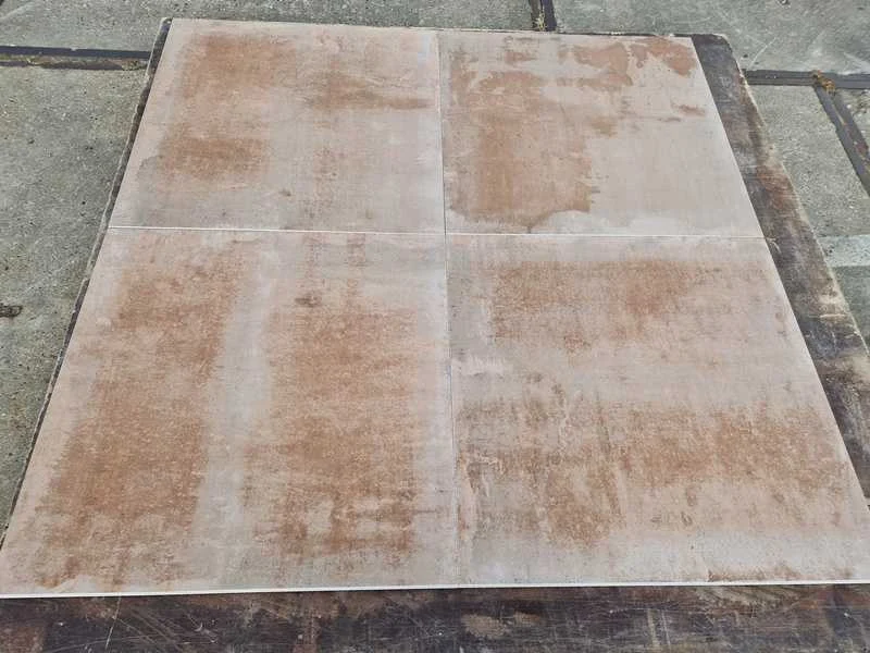 Afmetingen circa 80 cm x 80 cm x 30 mm. Aantal pallets: 8. Deze kavel kan op verzoek bezorgd worden. De kosten bedragen voor dit kavel €110,00 exclusief BTW. Wilt u meerdere kavels laten bezorgen? Vanaf het tweede tot en met de vijfde kavel betaalt u €75,00 euro ex BTW per kavel. Voor 6 kavels of meer betaalt u een vast bedrag van €450,00 ex BTW. Levering vindt alleen plaats in Nederland. Kosten bezorging op de Waddeneilanden en België op aanvraag. Voor het laten bezorgen van uw kavel(s) dient u zelf voor uiterlijk 26 oktober contact op te nemen via e-mail, bezorging@dbtrading.nl . Na deze datum worden kavels automatisch geleverd in Hulst waar u uw kavel(s) kan afhalen op de afhaaldag. Bezorginformatie: Het los-adres moet goed bereikbaar zijn voor een vrachtwagen met trailer waarop een kraan is bevestigd. Deze kraan kan de pallets maximaal 4 meter vanaf de wagen lossen. Hiermee dient u rekening te houden i.v.m. het vrijhouden van de losplaats. De chauffeur heeft geen palletwagen tot zijn beschikking. Kleur: Bruin nuance Lengte: 80cm Breedte: 80cm Dikte: 30mm Aantal pakken: 3
