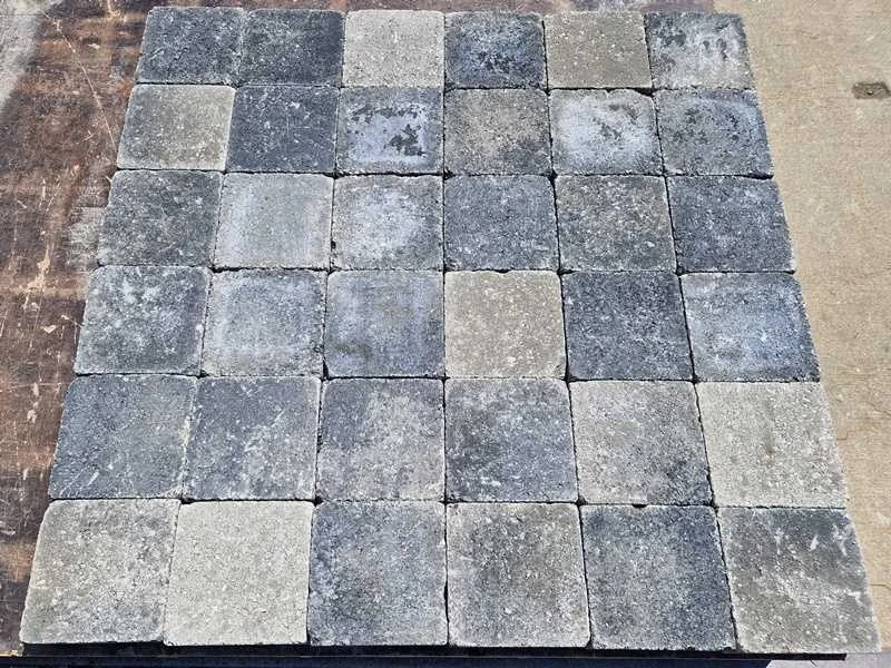 Afmetingen circa 15 cm x 15 cm x 6 cm. Aantal pallets: 3. Deze kavel kan op verzoek bezorgd worden. De kosten bedragen voor dit kavel €110,00 exclusief BTW. Wilt u meerdere kavels laten bezorgen? Vanaf het tweede tot en met de vijfde kavel betaalt u €75,00 euro ex BTW per kavel. Voor 6 kavels of meer betaalt u een vast bedrag van €450,00 ex BTW. Levering vindt alleen plaats in Nederland. Kosten bezorging op de Waddeneilanden en België op aanvraag. Voor het laten bezorgen van uw kavel(s) dient u zelf voor uiterlijk 26 oktober contact op te nemen via e-mail, bezorging@dbtrading.nl . Na deze datum worden kavels automatisch geleverd in Hulst waar u uw kavel(s) kan afhalen op de afhaaldag. Bezorginformatie: Het los-adres moet goed bereikbaar zijn voor een vrachtwagen met trailer waarop een kraan is bevestigd. Deze kraan kan de pallets maximaal 4 meter vanaf de wagen lossen. Hiermee dient u rekening te houden i.v.m. het vrijhouden van de losplaats. De chauffeur heeft geen palletwagen tot zijn beschikking. Afwerking: Getrommelde stenen Aantal m² per verpakking: 8.64m² Kleur: Grijs zwart genuanceerd Gewicht: 3370kg Lengte: 15cm Breedte: 15cm Hoogte: 6cm