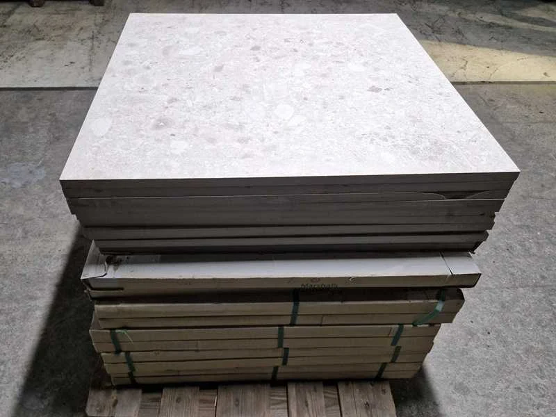Afmetingen circa: 80 cm x 80 cm x 20 mm. Benaming: Estate de luxe latte. Kwatiteit: B-keus. Aantal pallets: 1. Deze kavel kan op verzoek bezorgd worden. De kosten bedragen voor dit kavel €110.00 exclusief BTW. Wilt u meerdere kavels laten bezorgen? Vanaf het tweede tot en met de vijfde kavel betaalt u €75.00 euro ex BTW per kavel. Voor 6 kavels of meer betaalt u een vast bedrag van €450.00 ex BTW. Levering vindt alleen plaats in Nederland. Kosten bezorging op de Waddeneilanden en België op aanvraag. Voor het laten bezorgen van uw kavel(s) dient u zelf voor uiterlijk 26 oktober contact op te nemen via e-mail. bezorging@dbtrading.nl . Na deze datum worden kavels automatisch geleverd in Hulst waar u uw kavel(s) kan afhalen op de afhaaldag. Bezorginformatie: Het los-adres moet goed bereikbaar zijn voor een vrachtwagen met trailer waarop een kraan is bevestigd. Deze kraan kan de pallets maximaal 4 meter vanaf de wagen lossen. Hiermee dient u rekening te houden i.v.m. het vrijhouden van de losplaats. De chauffeur heeft geen palletwagen tot zijn beschikking. Kleur: Latte Lengte: 80cm Breedte: 80cm Dikte: 20mm Aantal pakken: 2
