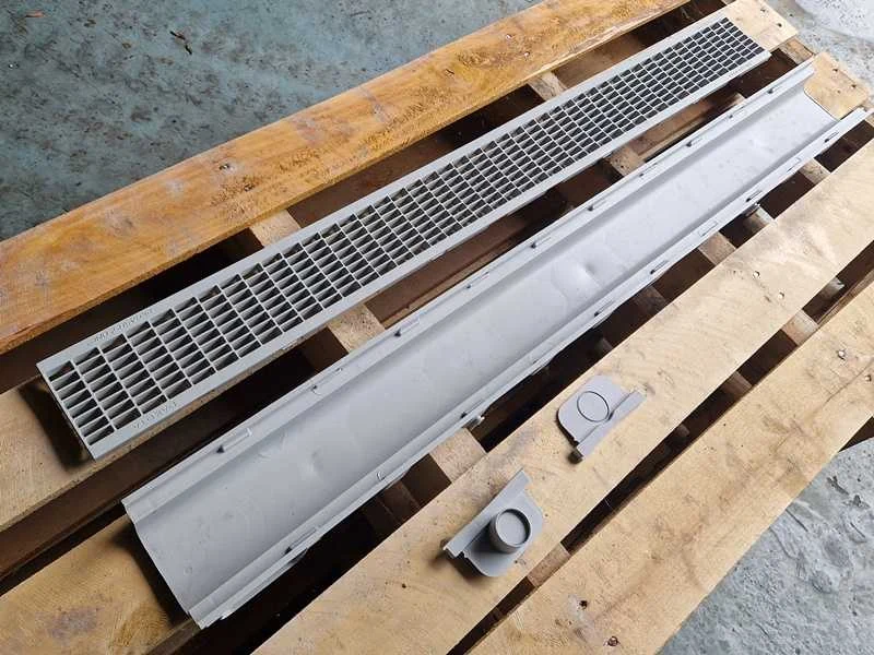Afmetingen van de buiten maat (breed x hoog x lang) circa 10,5 cm x 5 cm x 100 cm. Type omschrijving: Goten van kunststof met een afneembaar kunststof deksel. inclusief 23sets eindstukken. Aantal pallets: 1. Deze kavel kan op verzoek bezorgd worden. De kosten bedragen voor dit kavel €110,00 exclusief BTW. Wilt u meerdere kavels laten bezorgen? Vanaf het tweede tot en met de vijfde kavel betaalt u €75,00 euro ex BTW per kavel. Voor 6 kavels of meer betaalt u een vast bedrag van €450,00 ex BTW. Levering vindt alleen plaats in Nederland. Kosten bezorging op de Waddeneilanden en België op aanvraag. Voor het laten bezorgen van uw kavel(s) dient u zelf voor uiterlijk 26 oktober contact op te nemen via e-mail, bezorging@dbtrading.nl . Na deze datum worden kavels automatisch geleverd in Hulst waar u uw kavel(s) kan afhalen op de afhaaldag. Bezorginformatie: Het los-adres moet goed bereikbaar zijn voor een vrachtwagen met trailer waarop een kraan is bevestigd. Deze kraan kan de pallets maximaal 4 meter vanaf de wagen lossen. Hiermee dient u rekening te houden i.v.m. het vrijhouden van de losplaats. De chauffeur heeft geen palletwagen tot zijn beschikking. Kleur: Grijs Lengte: 10.5cm Breedte: 5cm Hoogte: 100cm