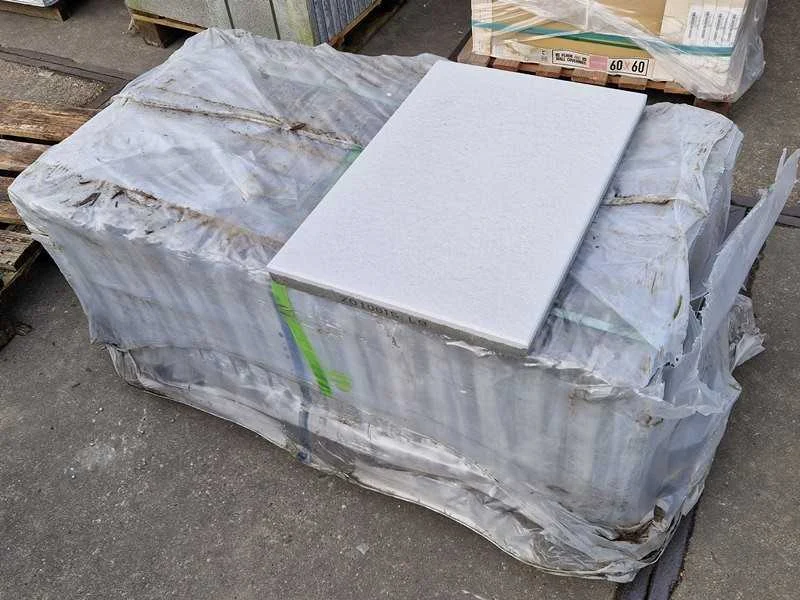 Afmetingen circa 40 cm x 60 cm x 40 mm. Bewerking: Gecoat. Kwaliteit: B-keus. Aantal pallets: 1. Deze kavel kan op verzoek bezorgd worden. De kosten bedragen voor dit kavel €110,00 exclusief BTW. Wilt u meerdere kavels laten bezorgen? Vanaf het tweede tot en met de vijfde kavel betaalt u €75,00 euro ex BTW per kavel. Voor 6 kavels of meer betaalt u een vast bedrag van €450,00 ex BTW. Levering vindt alleen plaats in Nederland. Kosten bezorging op de Waddeneilanden en België op aanvraag. Voor het laten bezorgen van uw kavel(s) dient u zelf voor uiterlijk 26 oktober contact op te nemen via e-mail, bezorging@dbtrading.nl . Na deze datum worden kavels automatisch geleverd in Hulst waar u uw kavel(s) kan afhalen op de afhaaldag. Bezorginformatie: Het los-adres moet goed bereikbaar zijn voor een vrachtwagen met trailer waarop een kraan is bevestigd. Deze kraan kan de pallets maximaal 4 meter vanaf de wagen lossen. Hiermee dient u rekening te houden i.v.m. het vrijhouden van de losplaats. De chauffeur heeft geen palletwagen tot zijn beschikking. Kleur: Grijs Lengte: 40cm Breedte: 60cm Dikte: 40mm Aantal pakken: 1