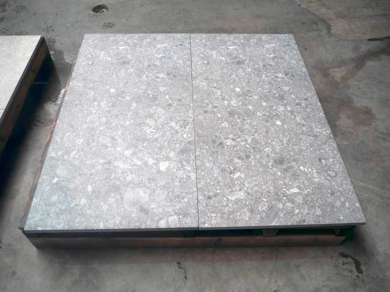 Afmetingen circa: 60x60x2cm. Aantal pallets: 3. Deze kavel kan op verzoek bezorgd worden. De kosten bedragen voor dit kavel €110,00 exclusief BTW. Wilt u meerdere kavels laten bezorgen? Vanaf het tweede tot en met de vijfde kavel betaalt u €75,00 euro ex BTW per kavel. Voor 6 kavels of meer betaalt u een vast bedrag van €450,00 ex BTW. Levering vindt alleen plaats in Nederland. Kosten bezorging op de Waddeneilanden en België op aanvraag. Voor het laten bezorgen van uw kavel(s) dient u zelf voor uiterlijk 26 oktober contact op te nemen via e-mail, bezorging@dbtrading.nl . Na deze datum worden kavels automatisch geleverd in Hulst waar u uw kavel(s) kan afhalen op de afhaaldag. Bezorginformatie: Het los-adres moet goed bereikbaar zijn voor een vrachtwagen met trailer waarop een kraan is bevestigd. Deze kraan kan de pallets maximaal 4 meter vanaf de wagen lossen. Hiermee dient u rekening te houden i.v.m. het vrijhouden van de losplaats. De chauffeur heeft geen palletwagen tot zijn beschikking. Kleur: Estate de luxe Grigio Lengte: 60cm Breedte: 60cm Dikte: 20mm