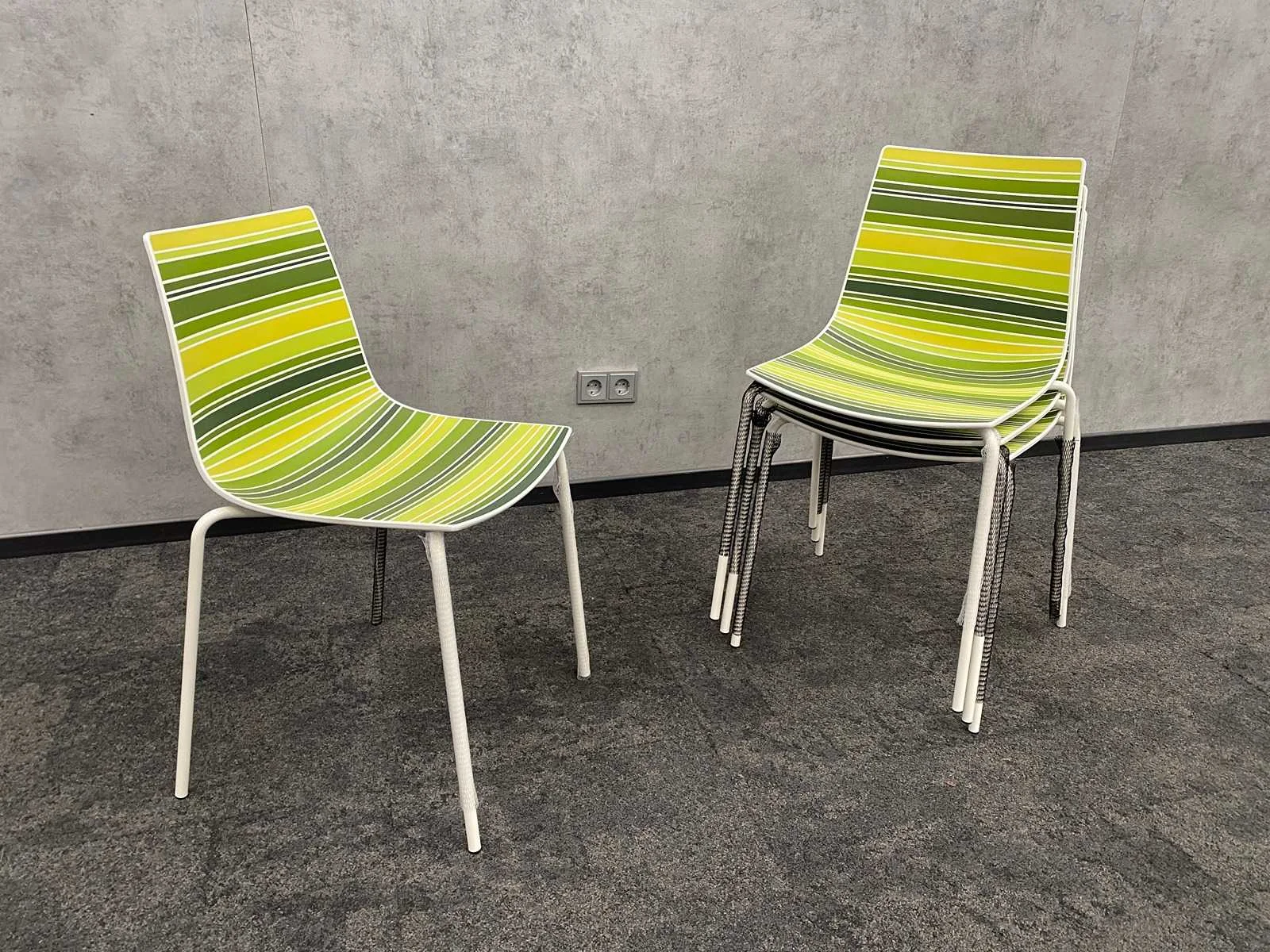 Zithoogte ca. 46 cm. -- Design van Stefano Sandona Merk: 4x Gaber Colorfive Stapelbaar: true Kleur: wit, groen