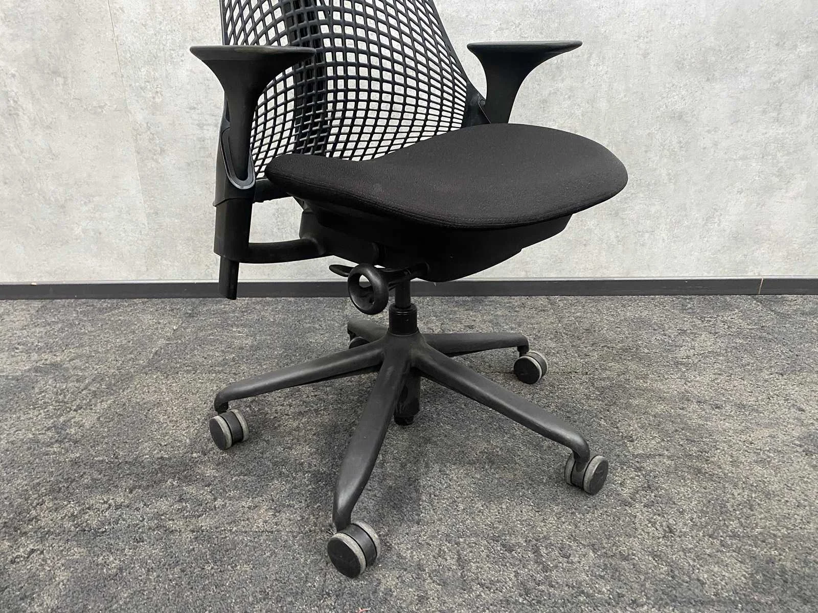Met in hoogte verstelbare armleggers, zithoogte en zitdiepte instelbaar, gewichtsregeling, kantelmechanisme rugleuning Merk: Herman Miller Sayl