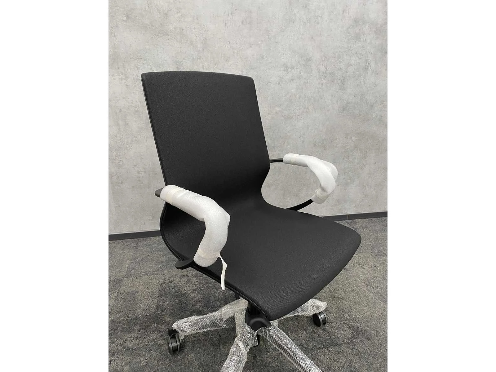 Verrijdbaar, zitvlak in hoogte instelbaar, zwarte stoffering, met armleggers, zwart 5-teens voetenkruis Merk: Relativ Kleur: zwart