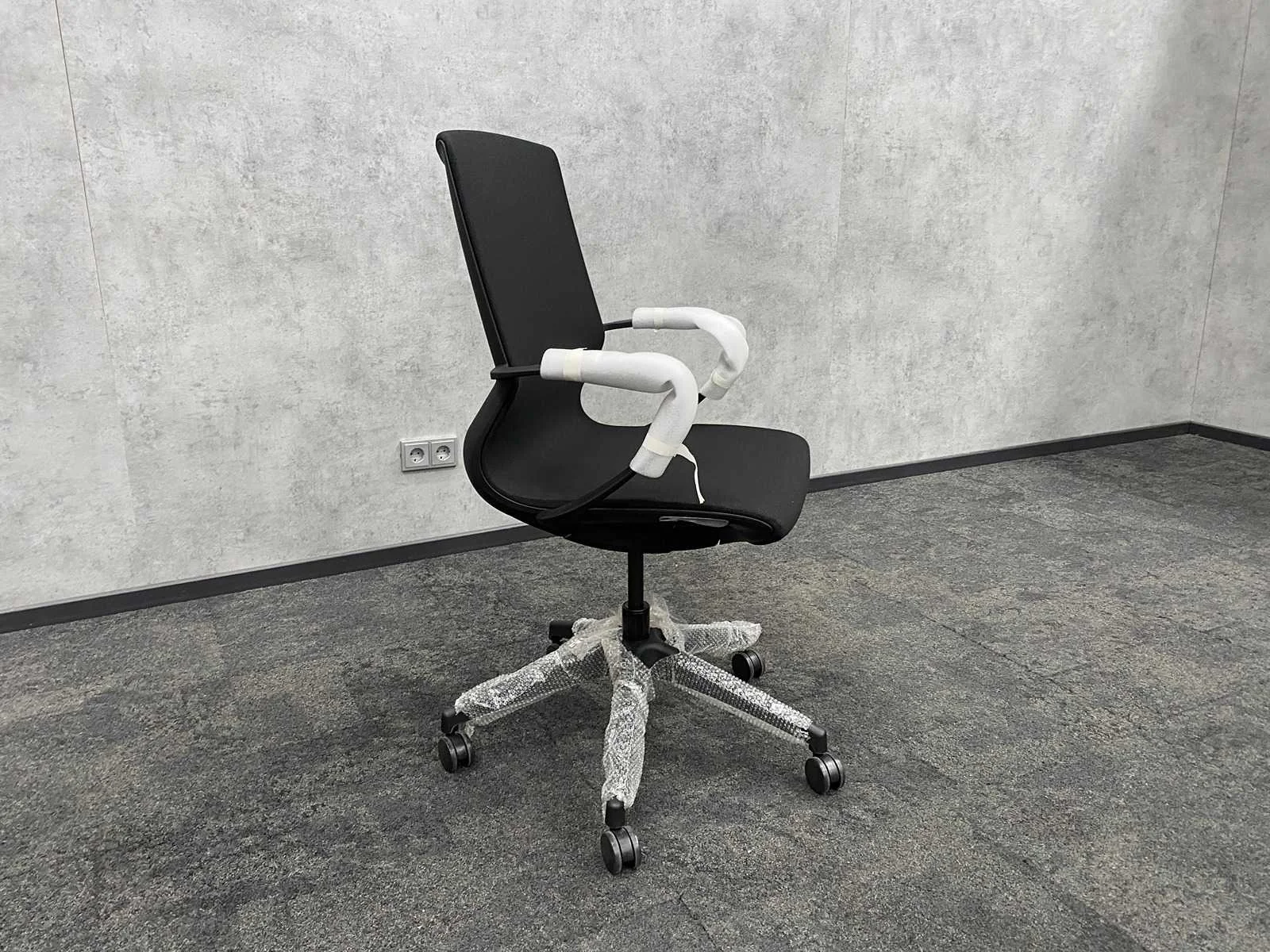 Verrijdbaar, zitvlak in hoogte instelbaar, zwarte stoffering, met armleggers, zwart 5-teens voetenkruis Merk: Relativ Kleur: zwart
