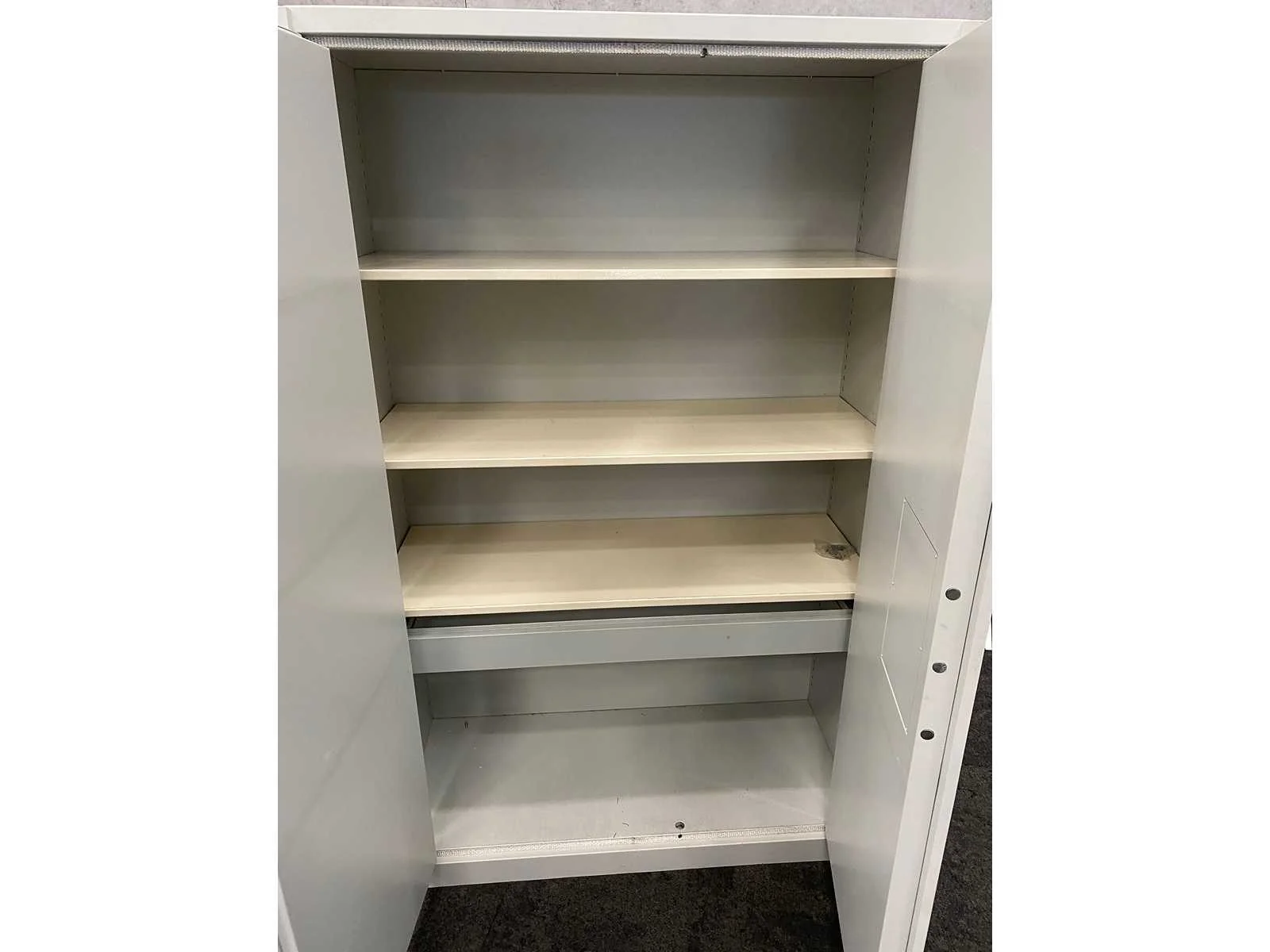 Met sleutel, met 3 verstelbare legborden en 1 hangmappenframe Breedte: 125cm Hoogte: 195cm Diepte: 55cm