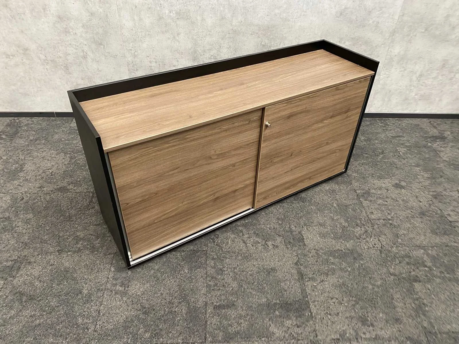 Met 2 verstelbare legborden, zonder sleutel Kleur: zwart, noten Breedte: 160cm Hoogte: 83cm Diepte: 45cm Materiaal: melamine